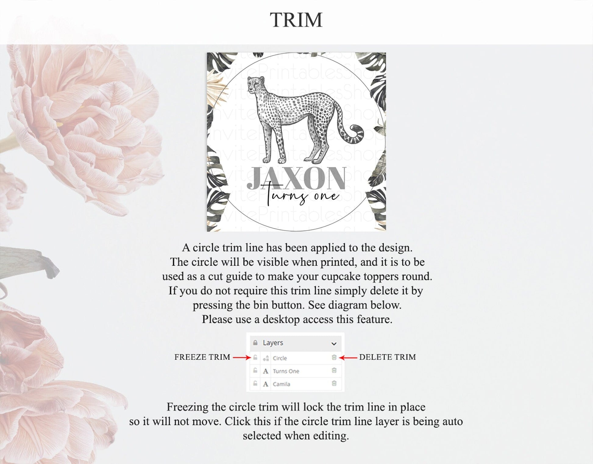 Cheetah Cupcake Toppers Cheetah Cupcake Cheetah Safari Cupcake Adventure Cheetah Cupcake Topper Palm Leaf Zoo First Birthday Decor D10823
