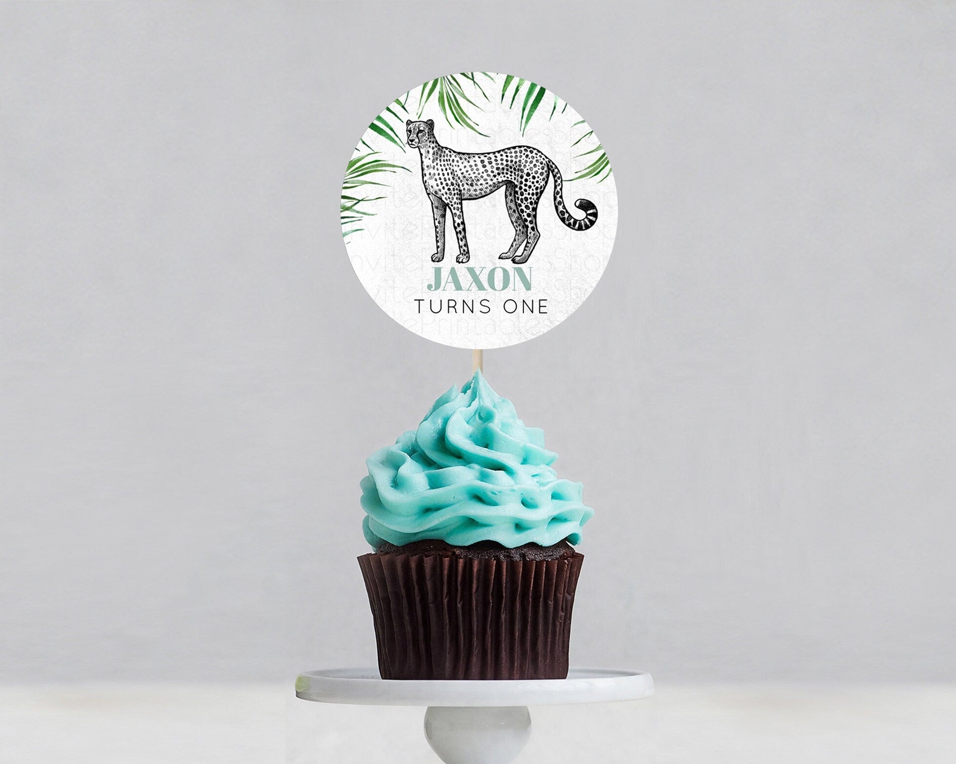 Cheetah Cupcake Toppers Cheetah Cupcake Cheetah Safari Cupcake Adventure Cheetah Cupcake Topper Palm Leaf Zoo First Birthday Decor D10849