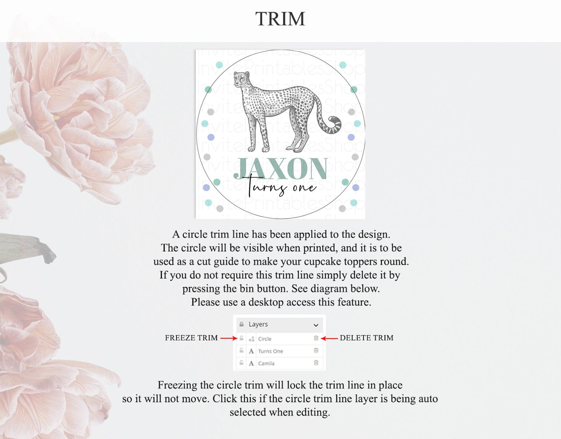 Cheetah Cupcake Toppers Cheetah Cupcake Cheetah Safari Cupcake Adventure Cheetah Cupcake Topper Palm Leaf Zoo First Birthday Decor D10857
