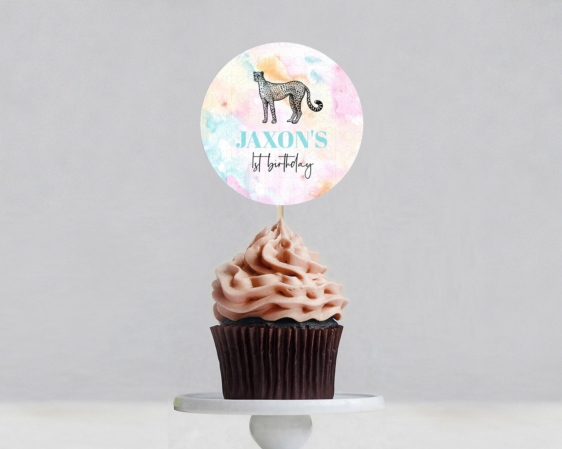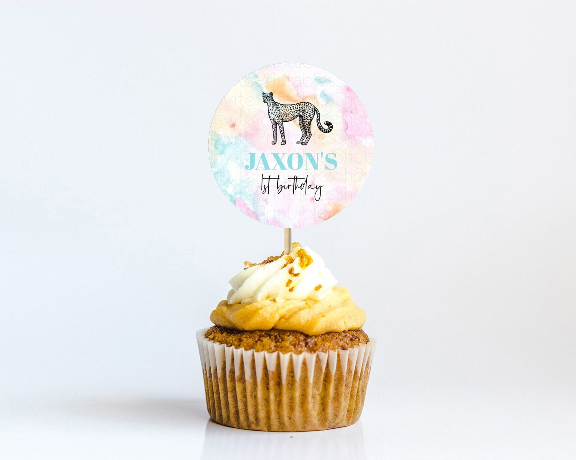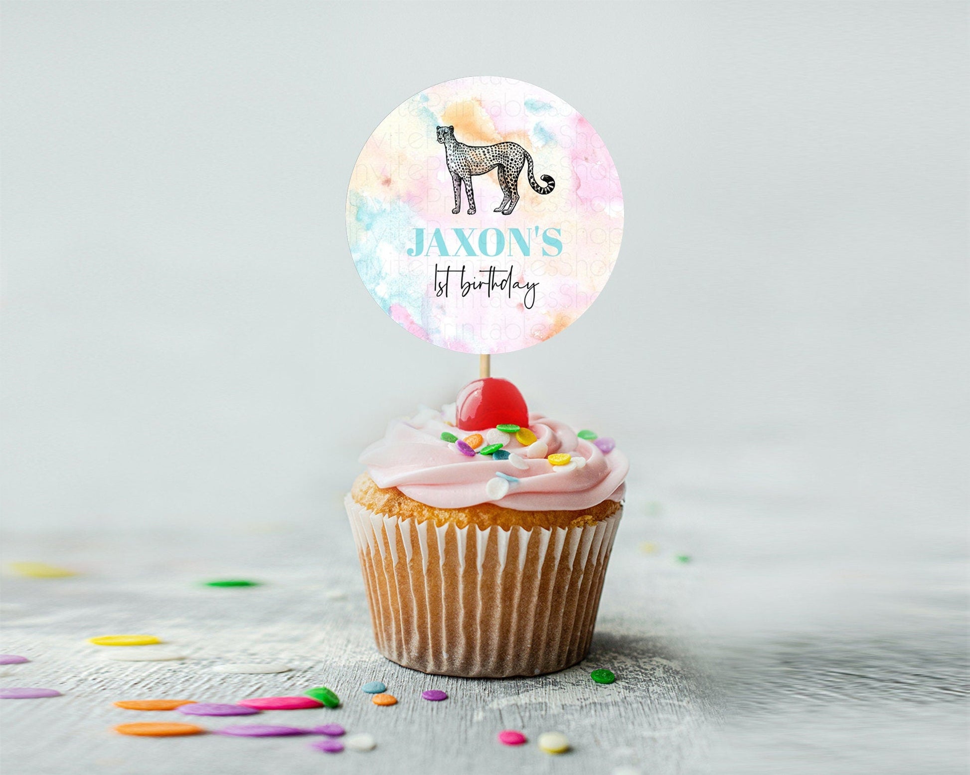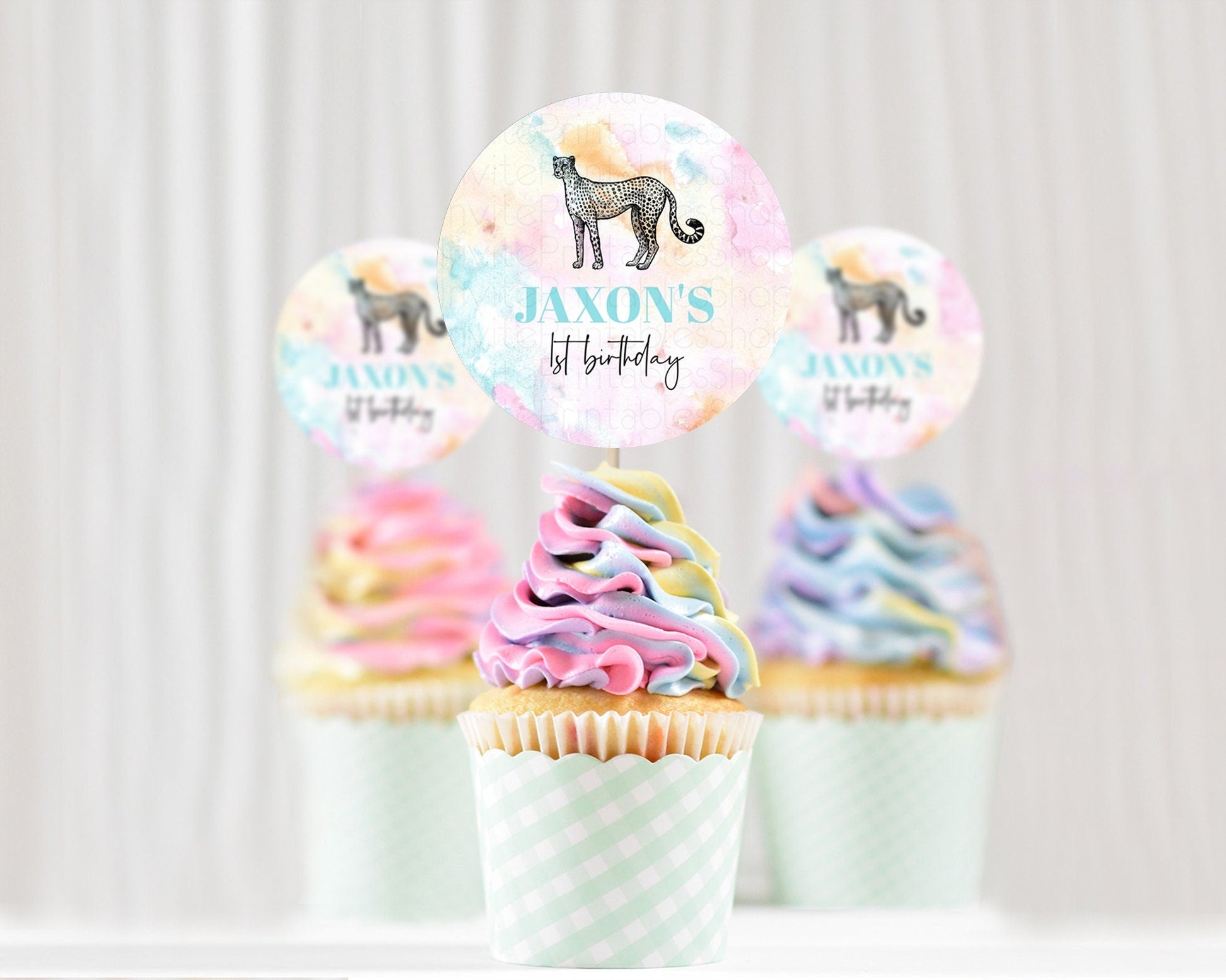 Cheetah Cupcake Toppers Pastel Cheetah Cupcake Toppers Cheetah Pastel Watercolor Cupcake Rainbow Cheetah Cupcake First Birthday D10289