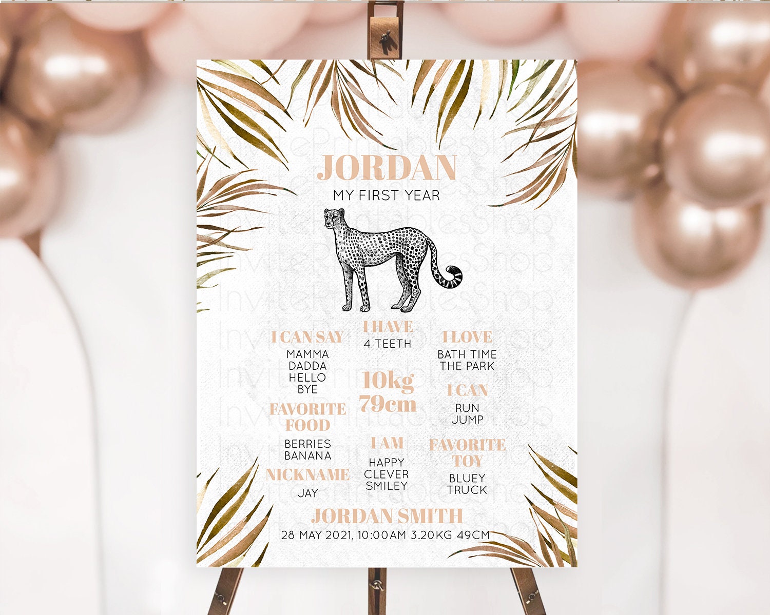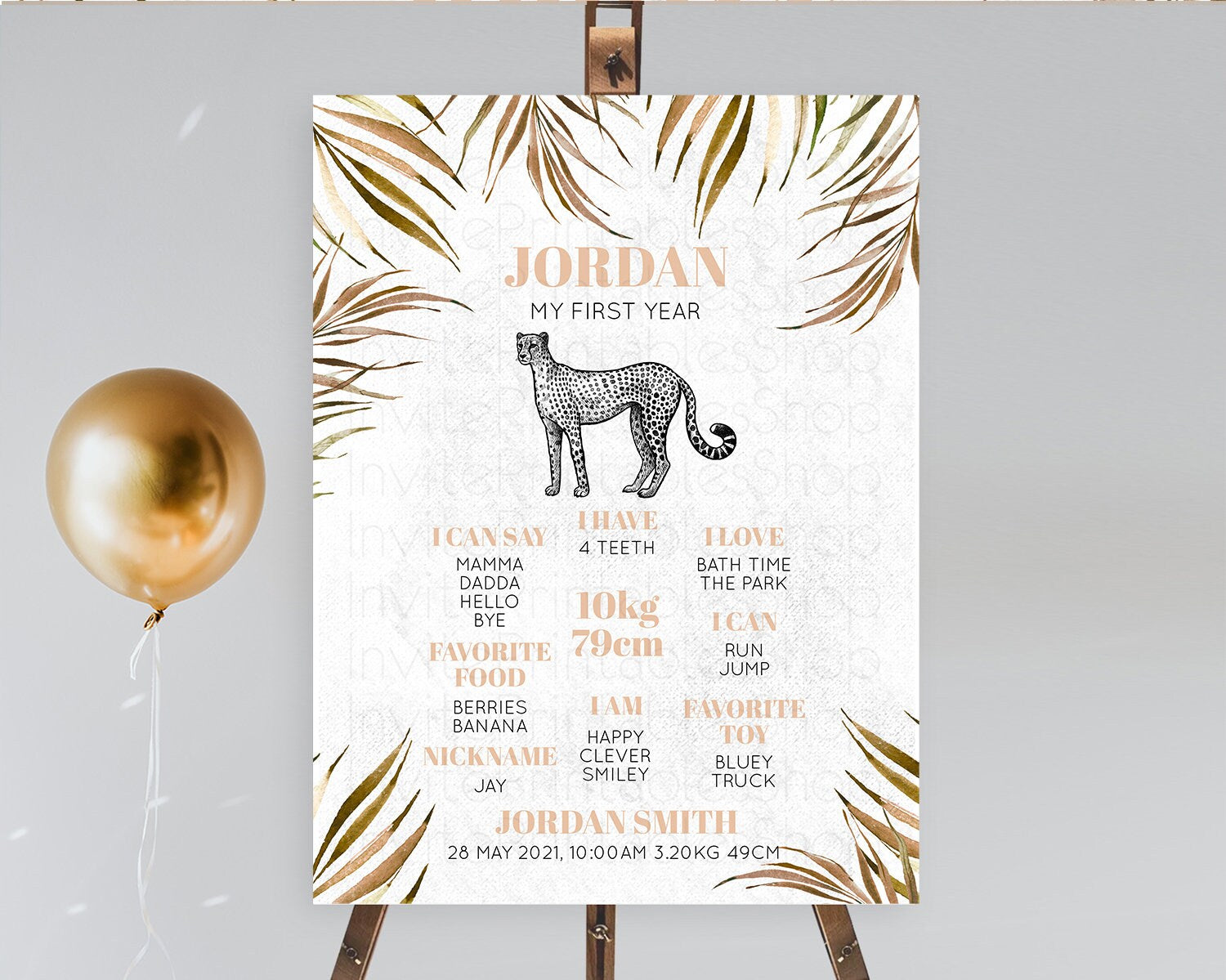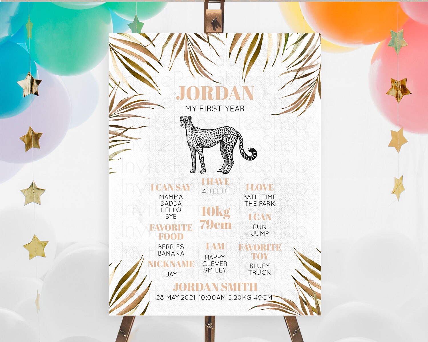 Cheetah First Birthday Milestone Board Cheetah Milestone Poster Cheetah Decor Safari Adventure Cheetah First Birthday Welcome Sign D10291