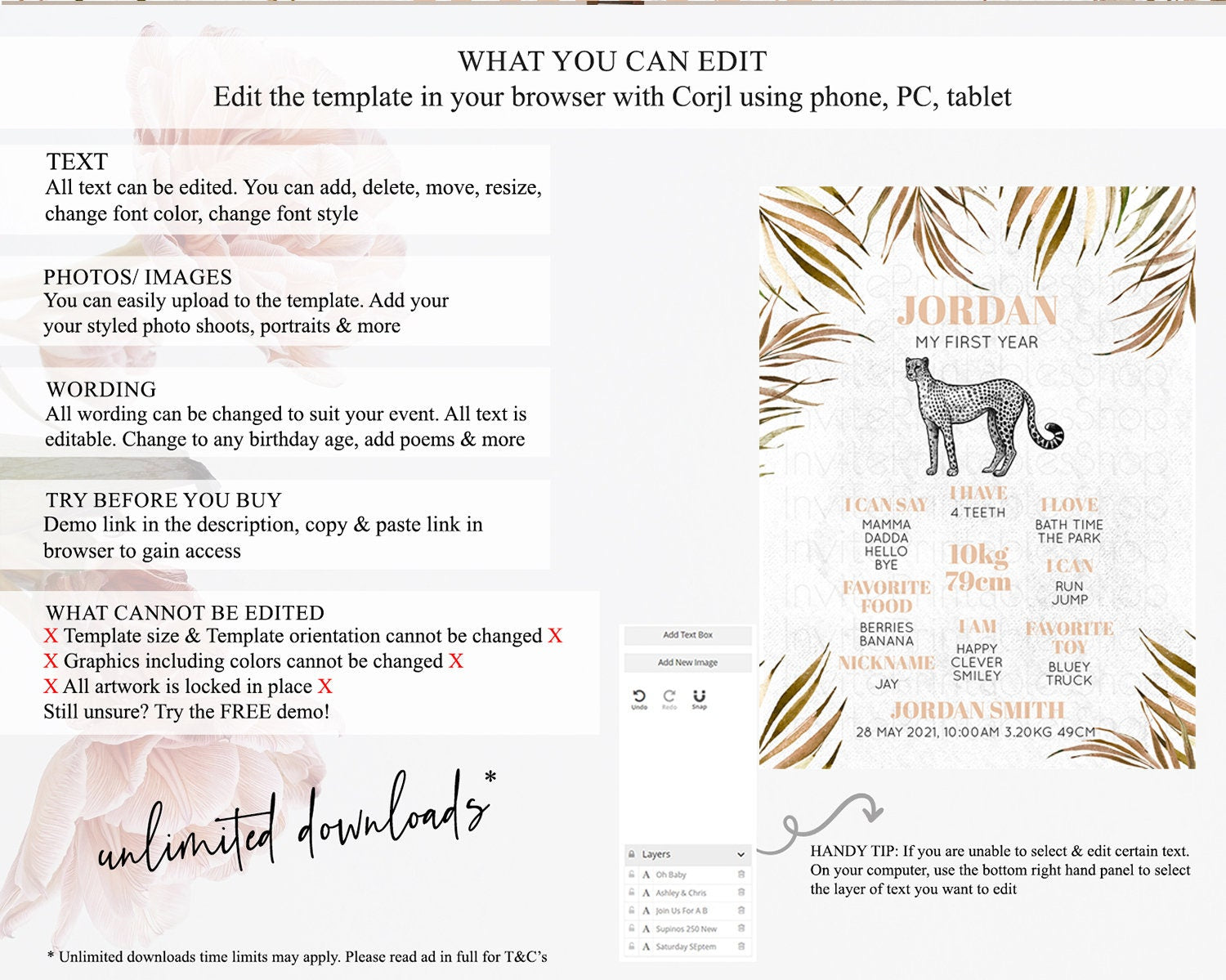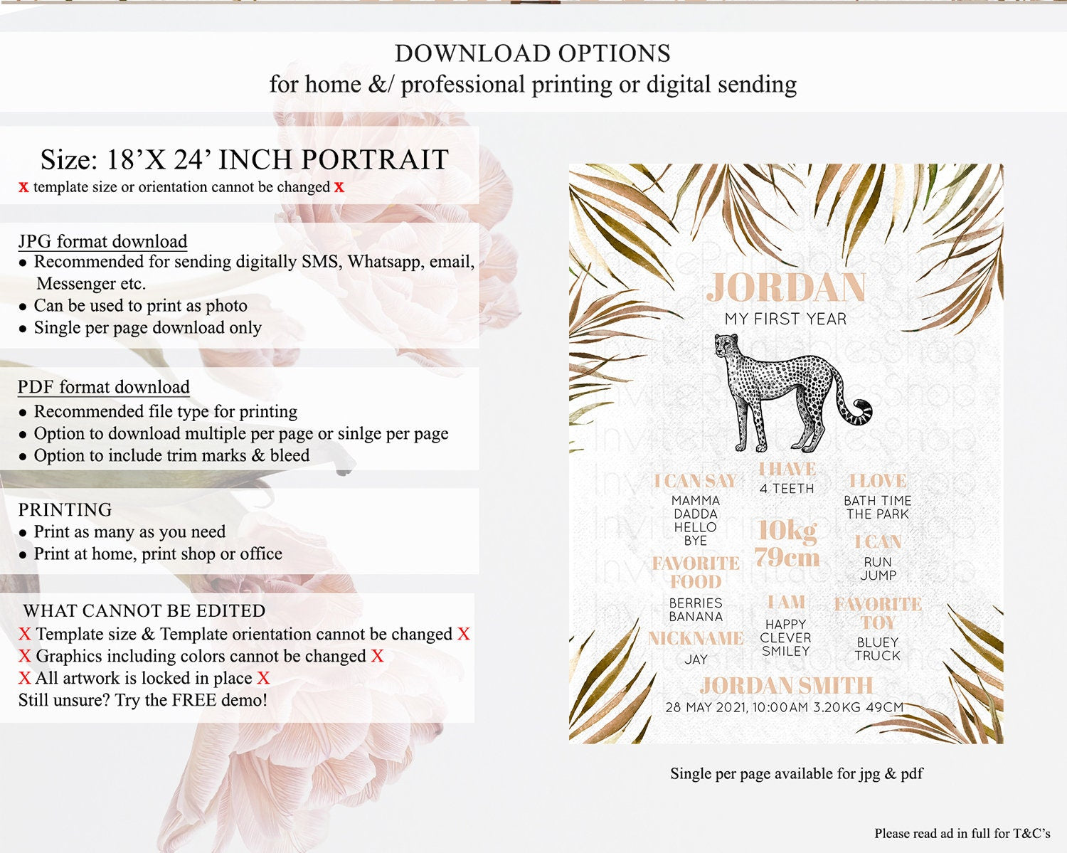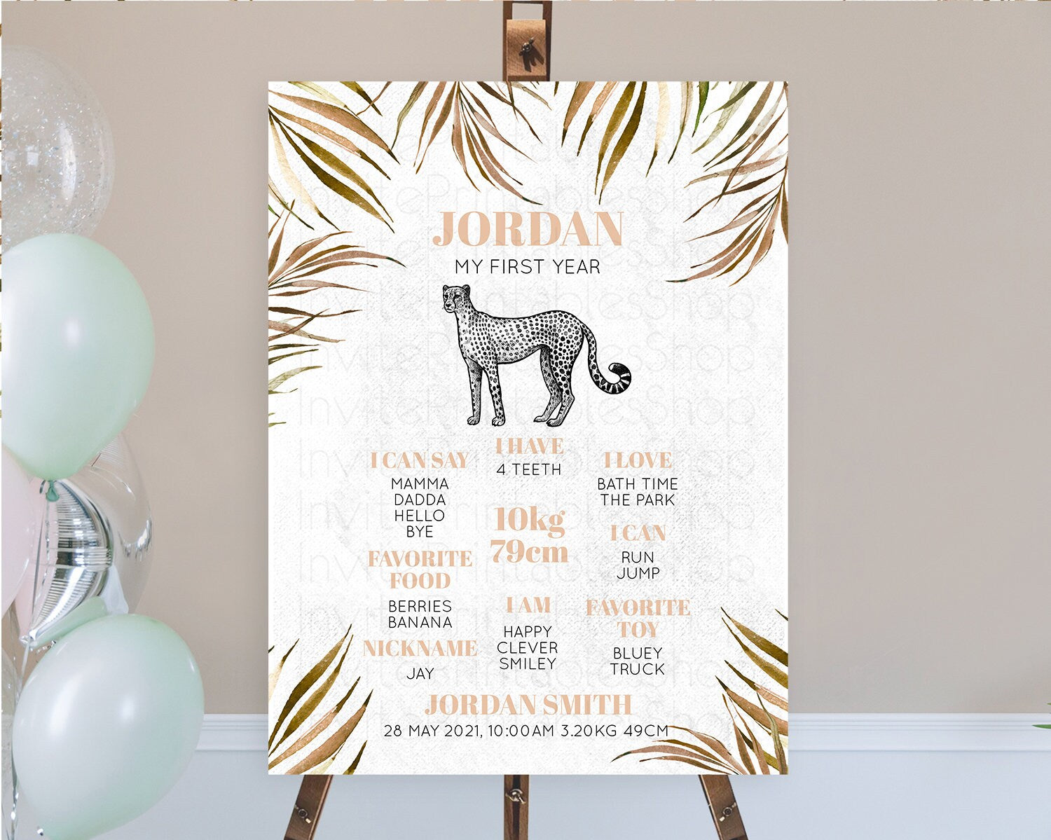 Cheetah First Birthday Milestone Board Cheetah Milestone Poster Cheetah Decor Safari Adventure Cheetah First Birthday Welcome Sign D10291