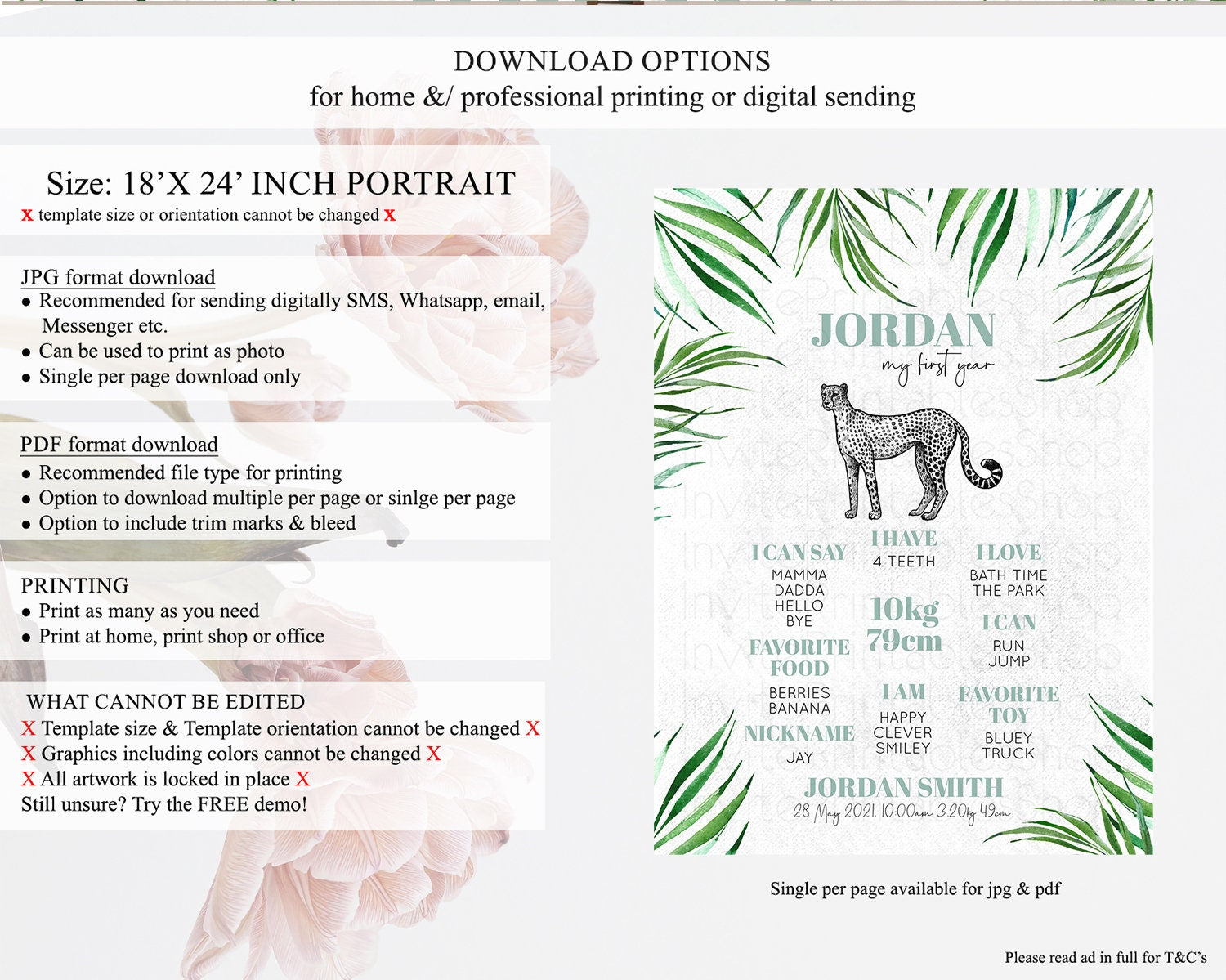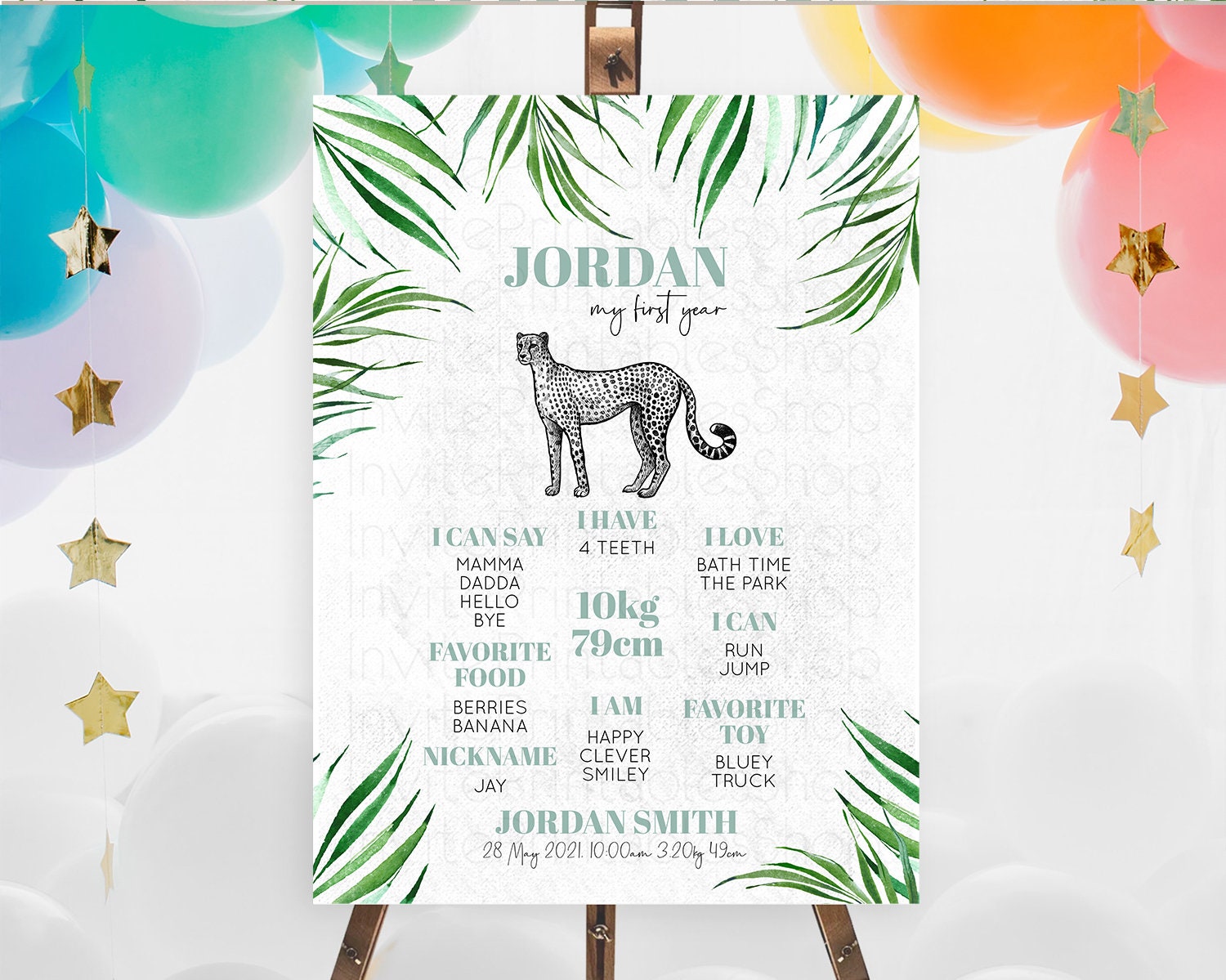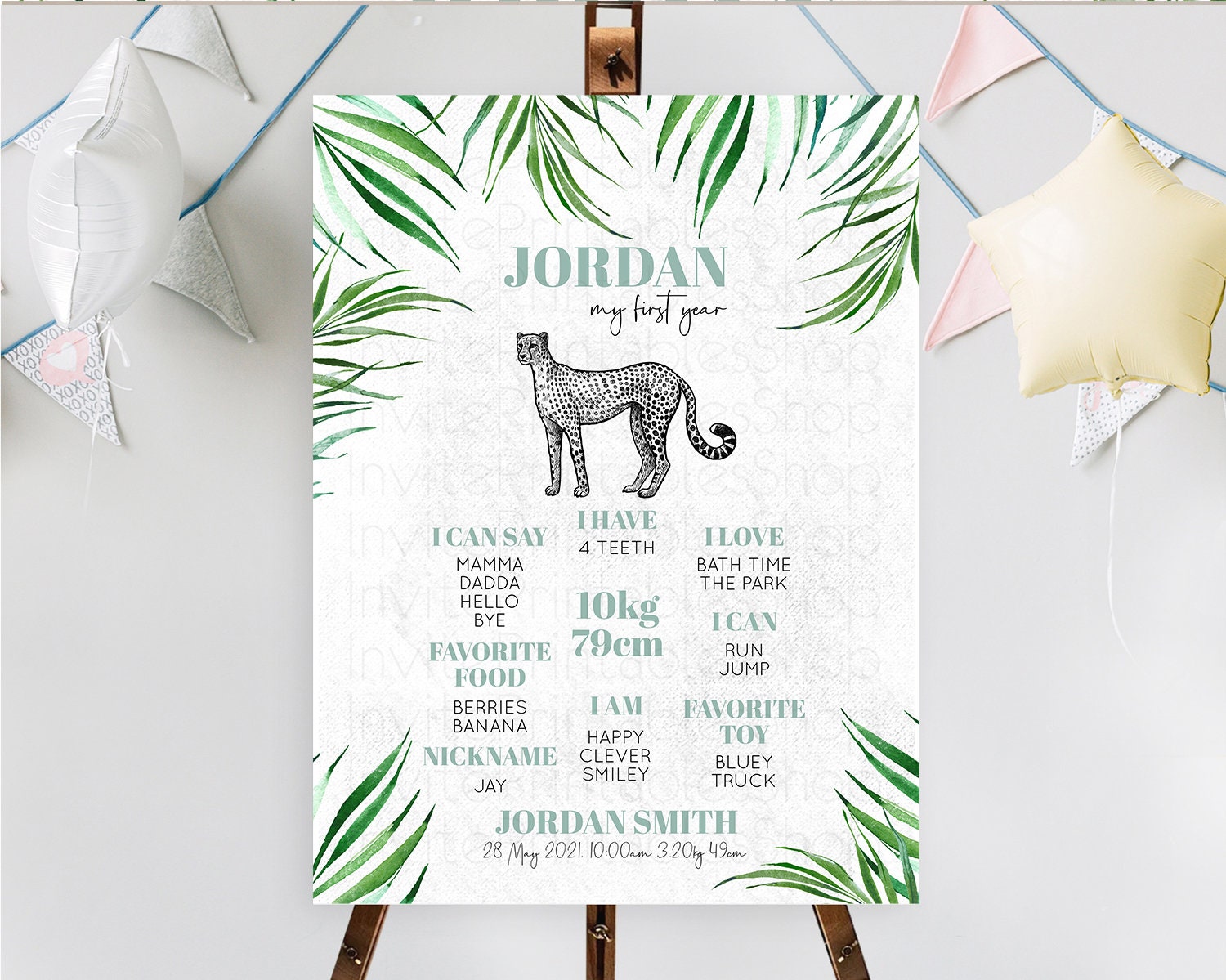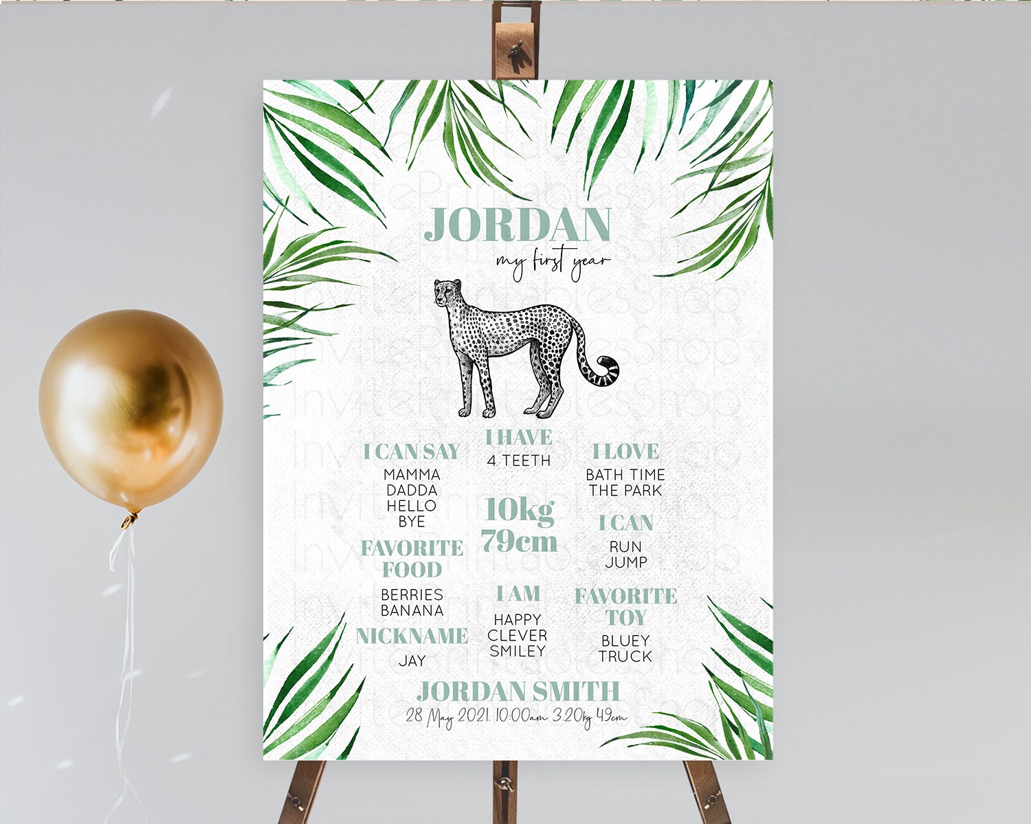Cheetah First Birthday Milestone Board Cheetah Milestone Poster Cheetah Decor Safari Adventure Cheetah First Birthday Welcome Sign D10849