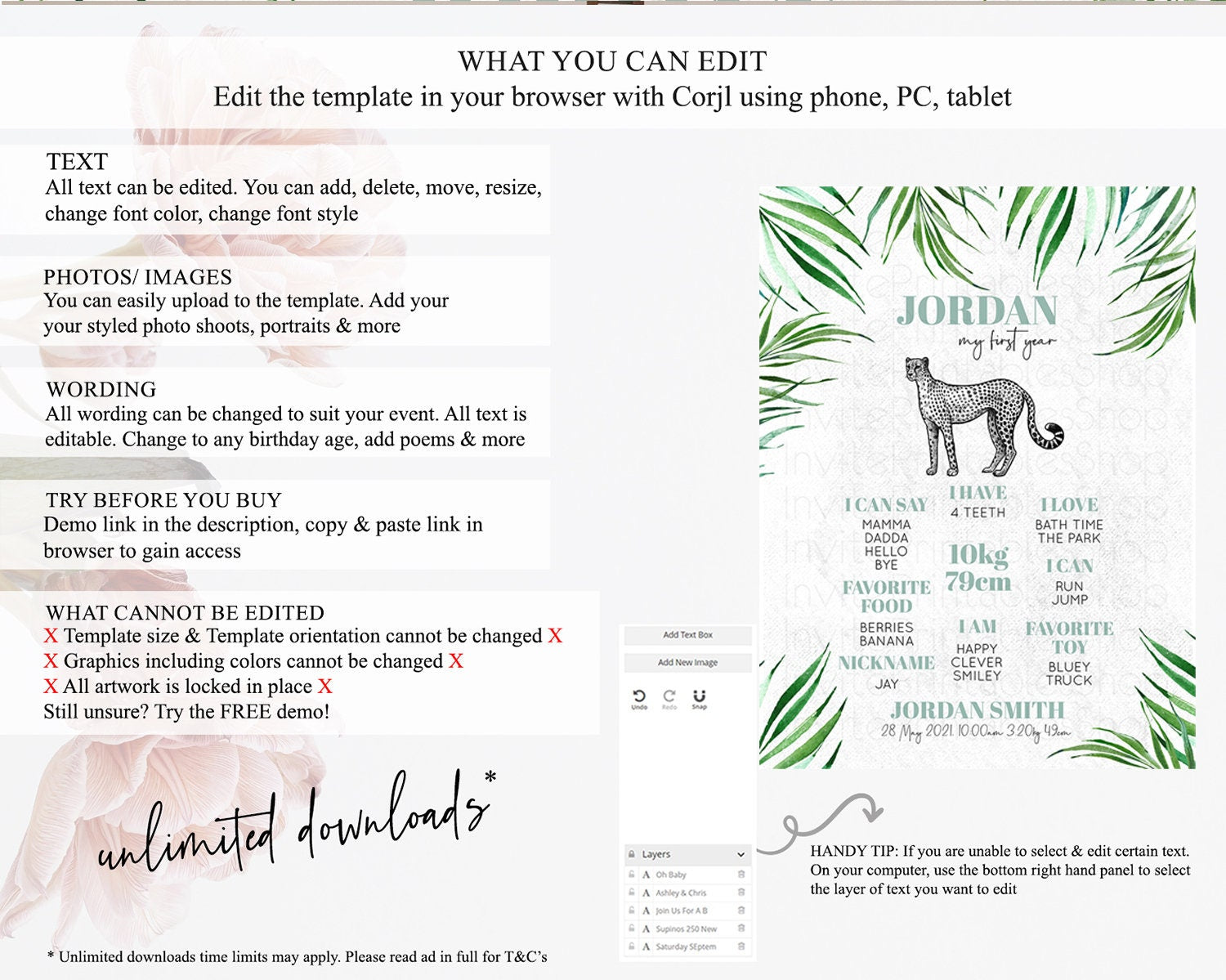 • After purchase, Corjl emails your editing link. Allow up to 15 minutes for delivery.