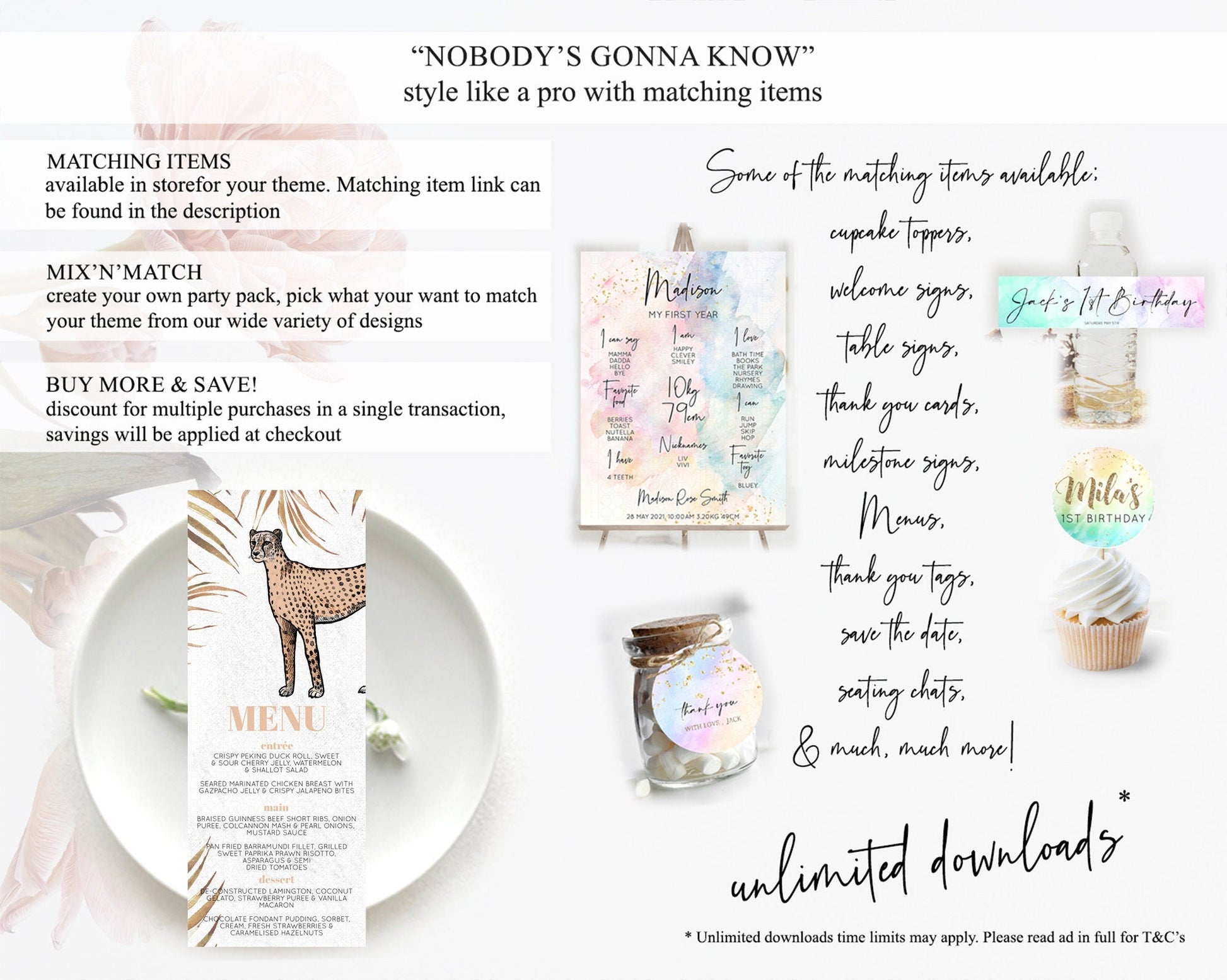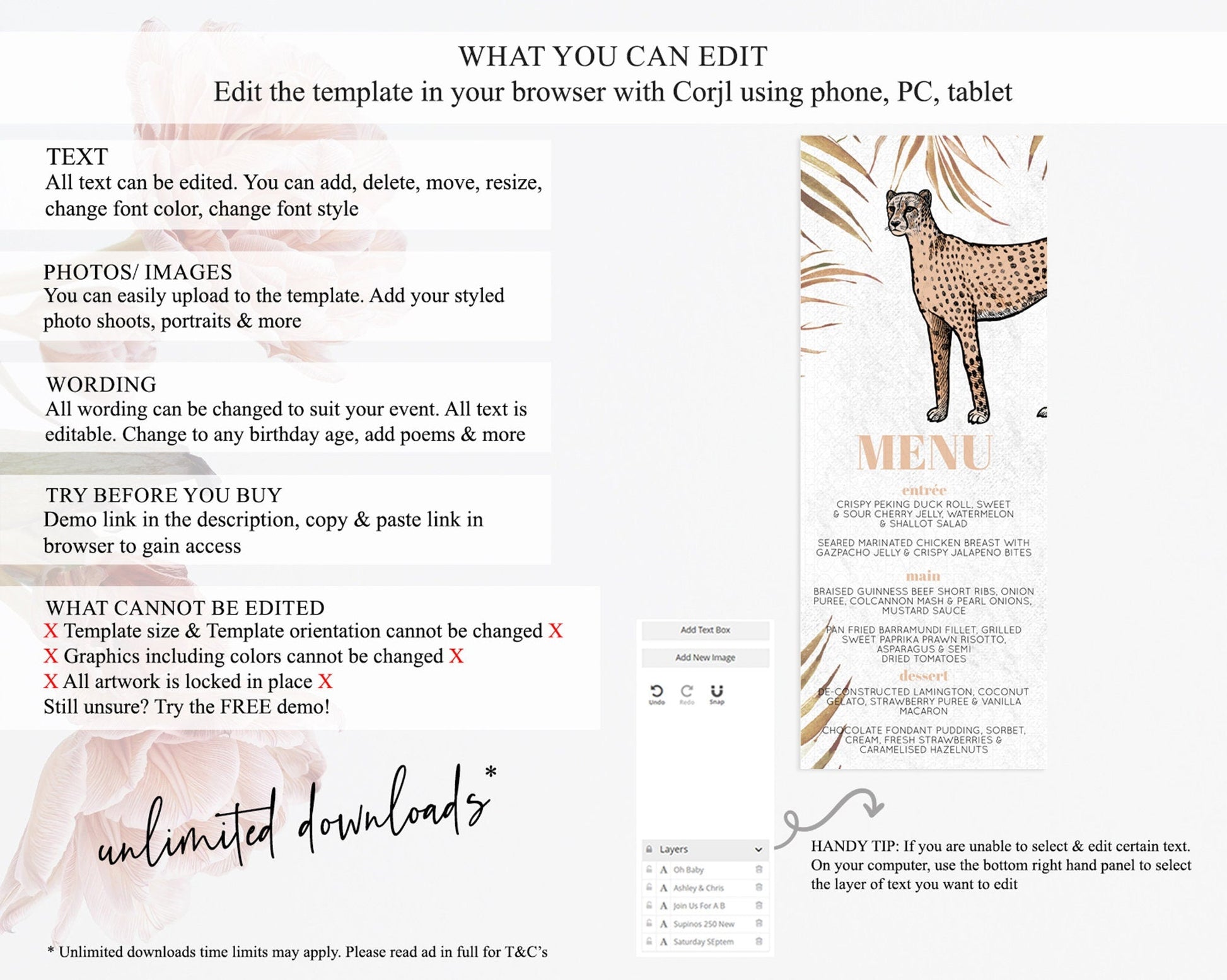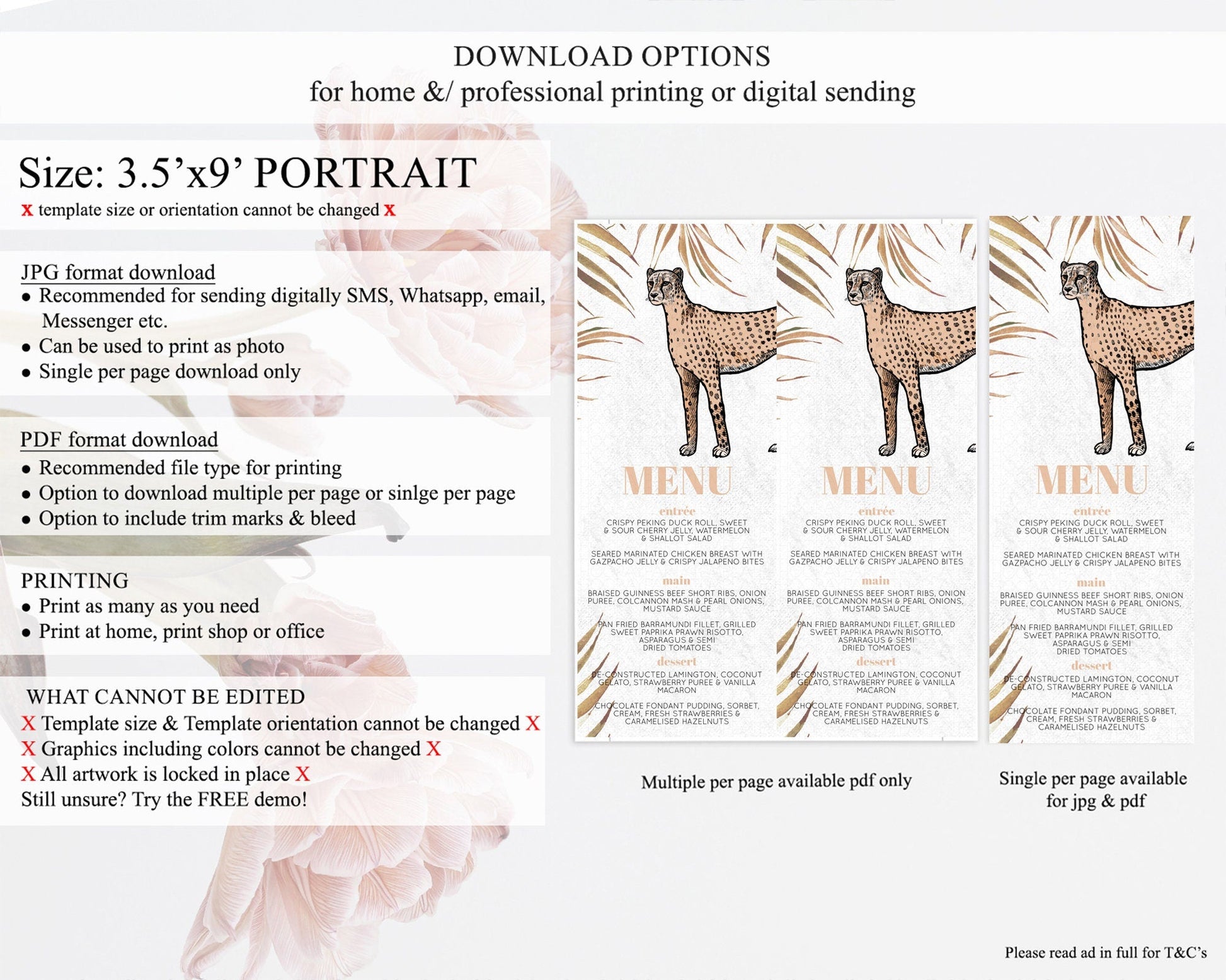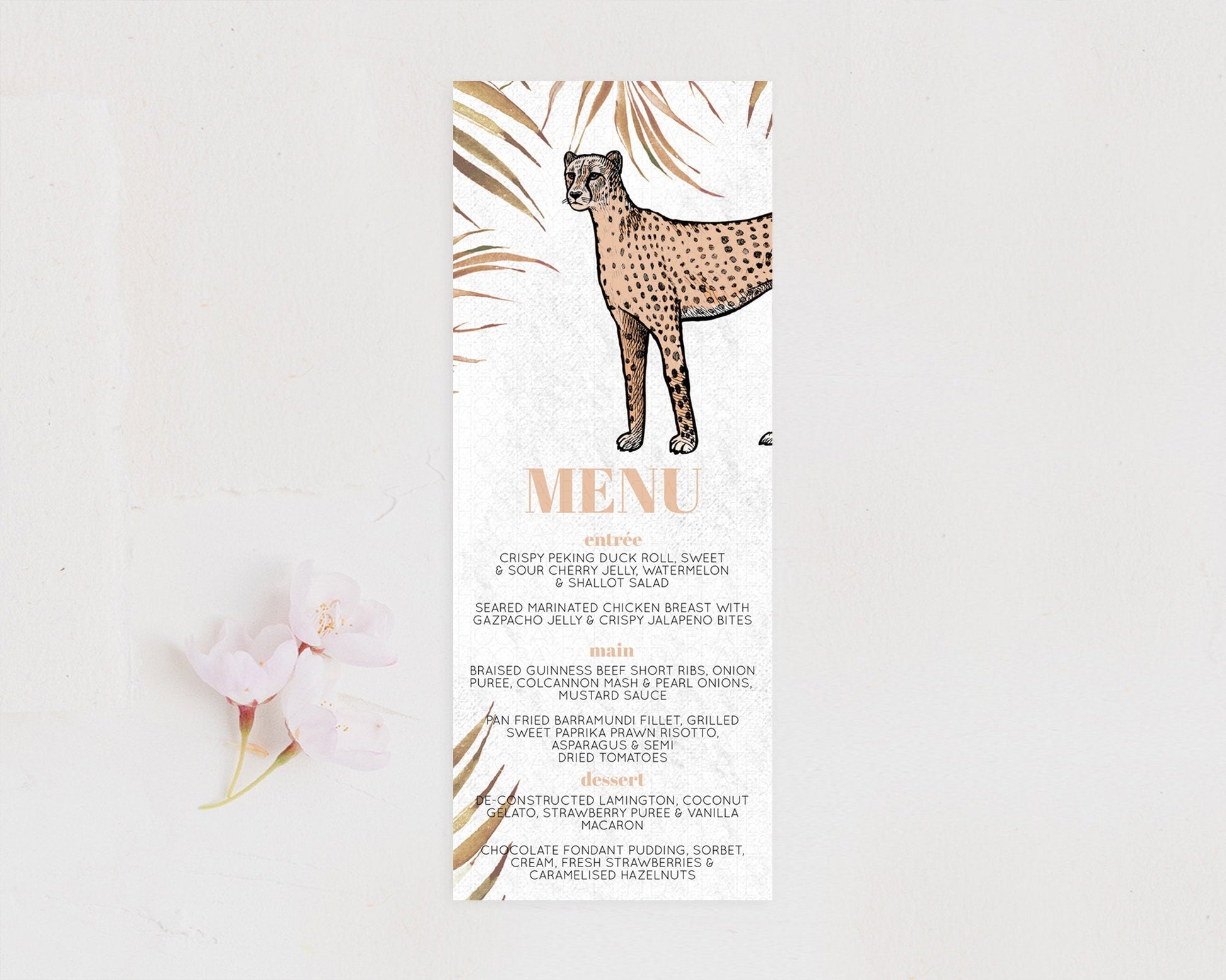 Cheetah Menu Cheetah Menu Template Cheetah Party Table Decor Safari Adventure Decor Cheetah Dinner Dessert Menu Party Food Menu D10291