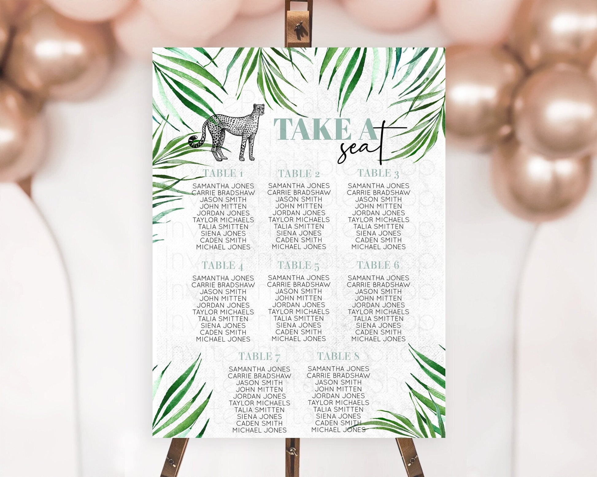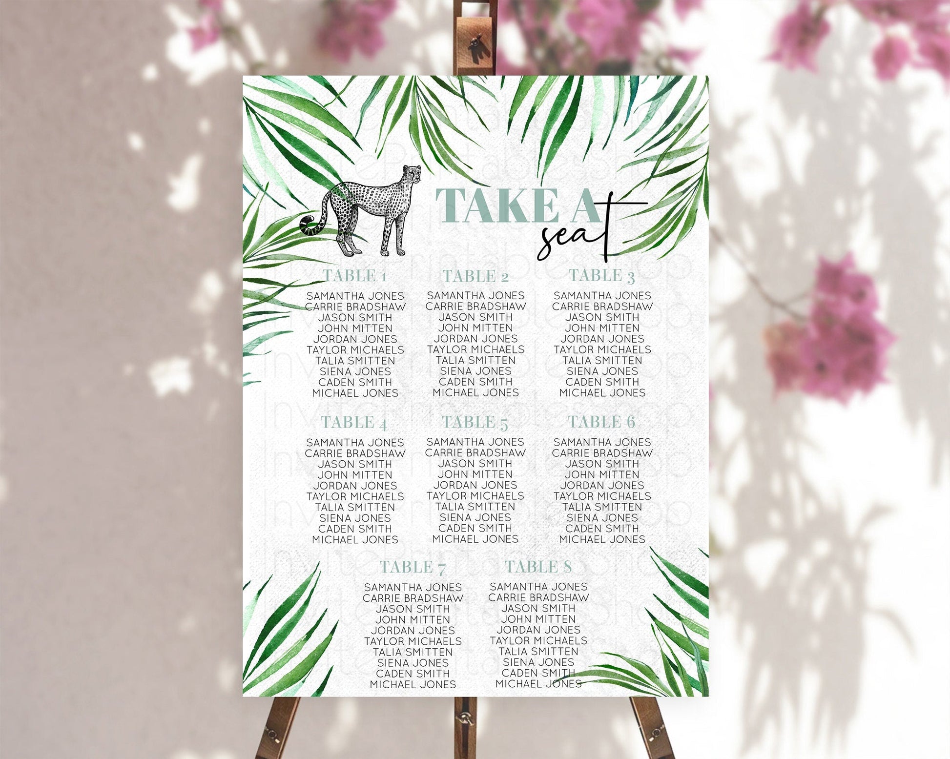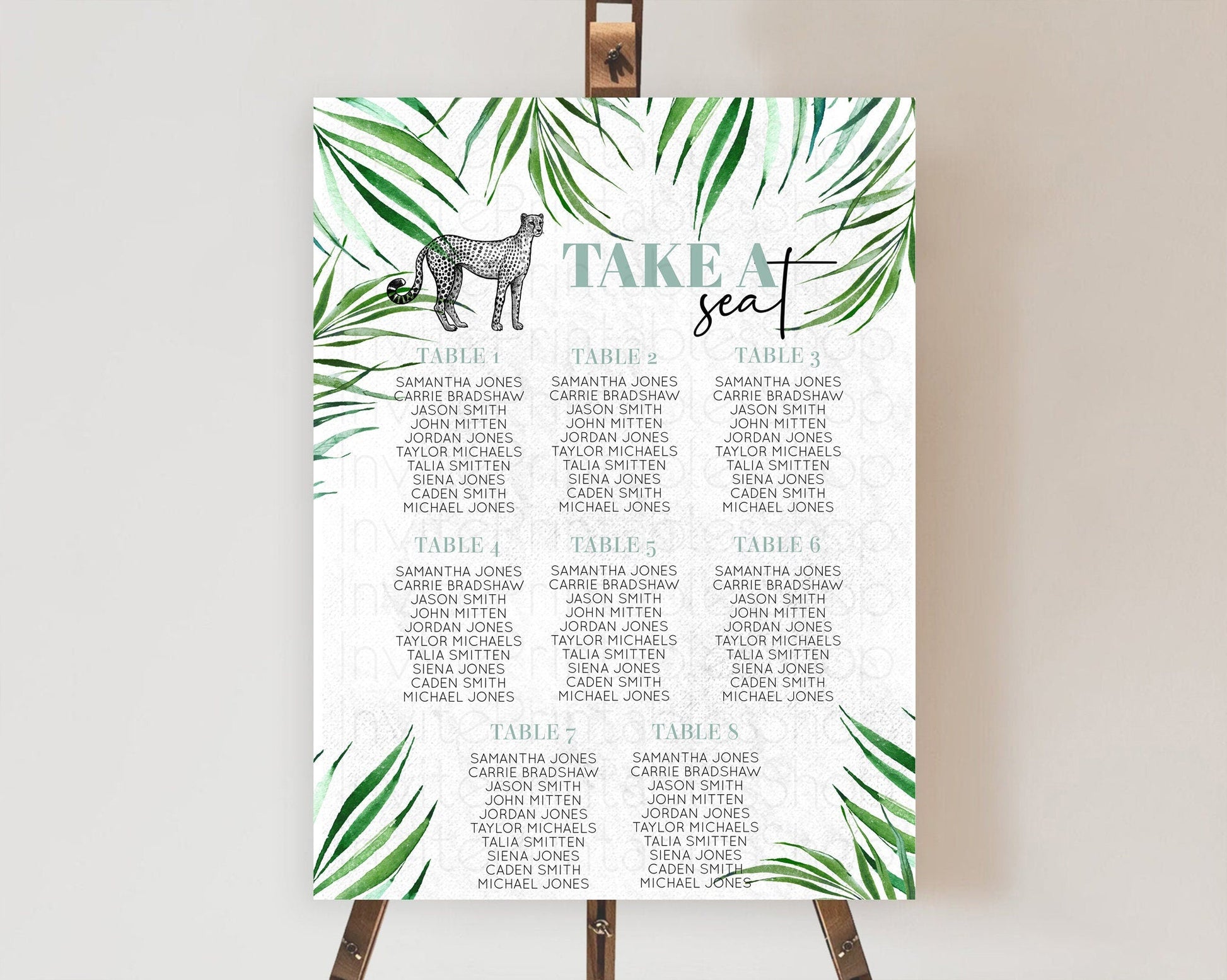 Cheetah Seating Chart Cheetah Seating Sign Cheetah Safari Seating Sign Adventure Cheetah Seating Board Palm Leaf Zoo Take a Seat D10849