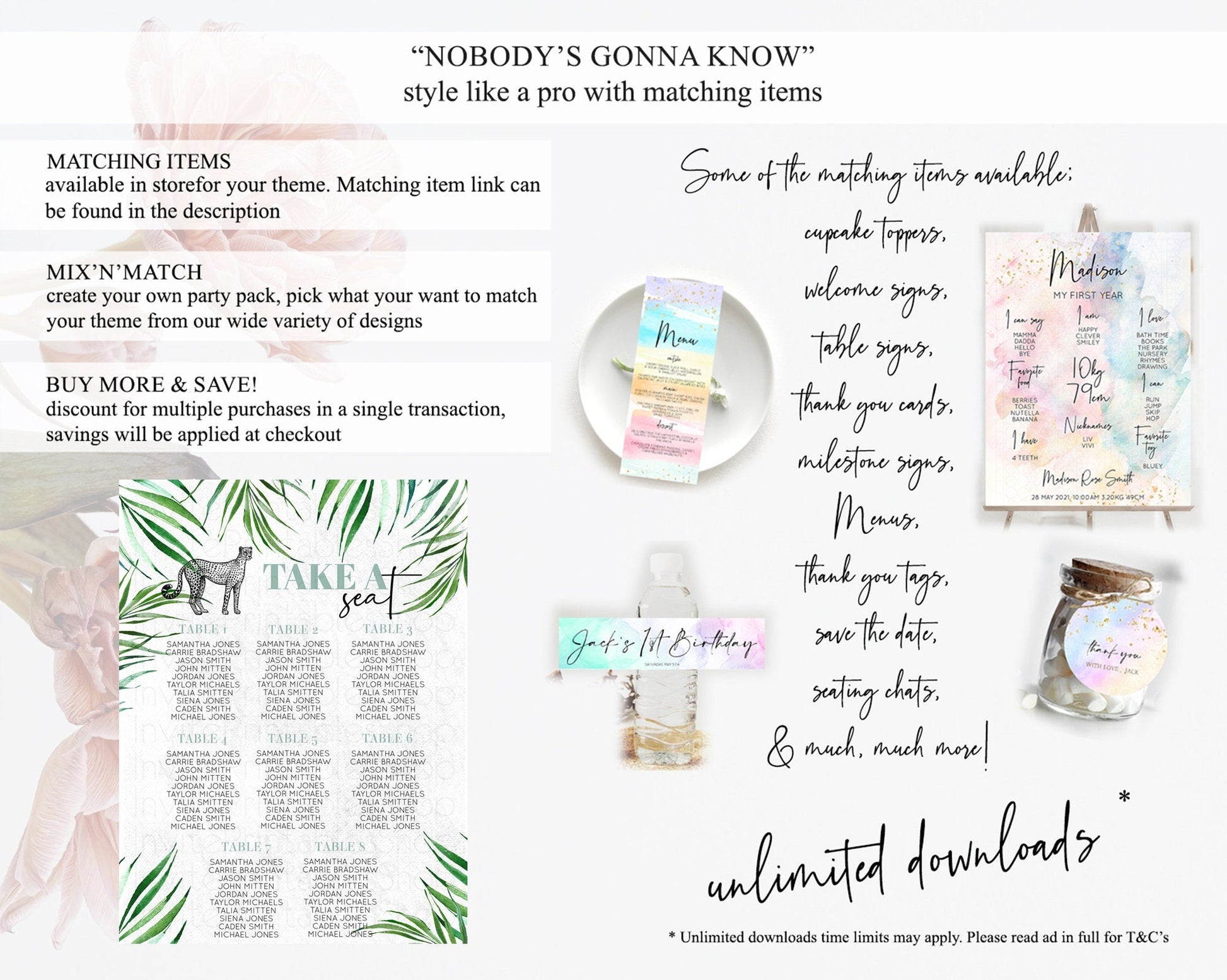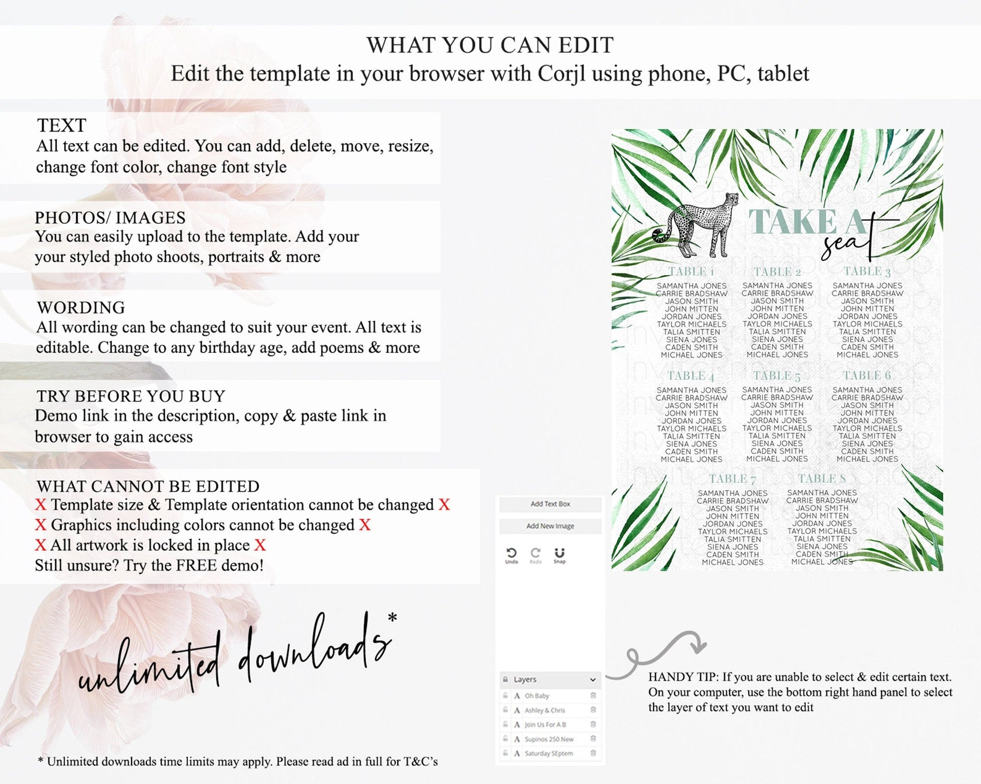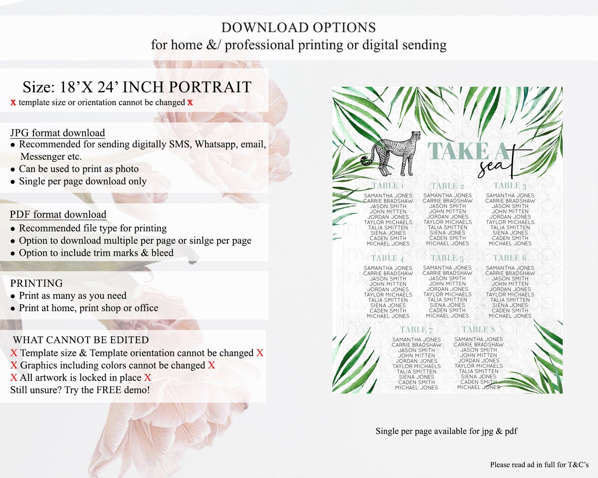 Cheetah Seating Chart Cheetah Seating Sign Cheetah Safari Seating Sign Adventure Cheetah Seating Board Palm Leaf Zoo Take a Seat D10849