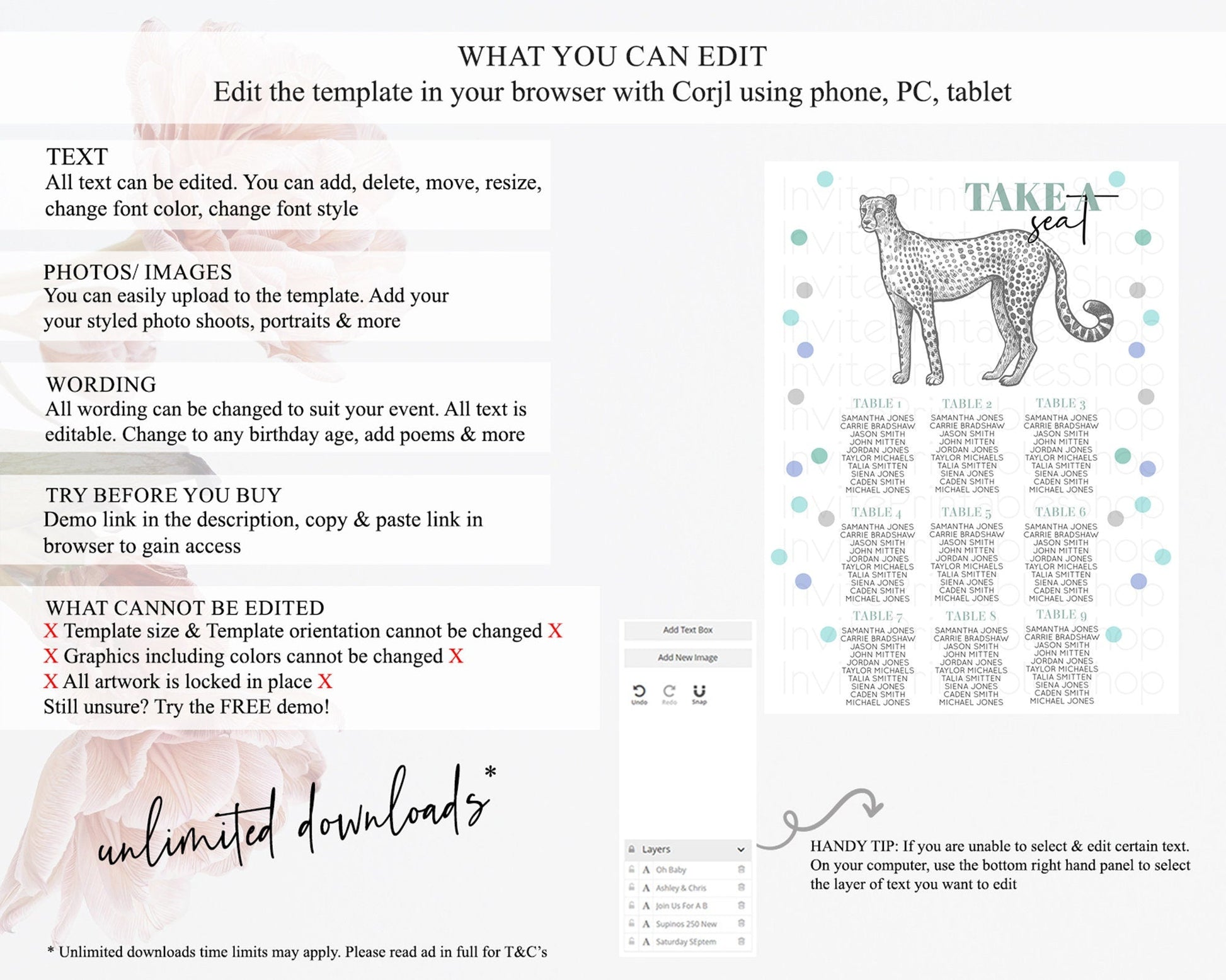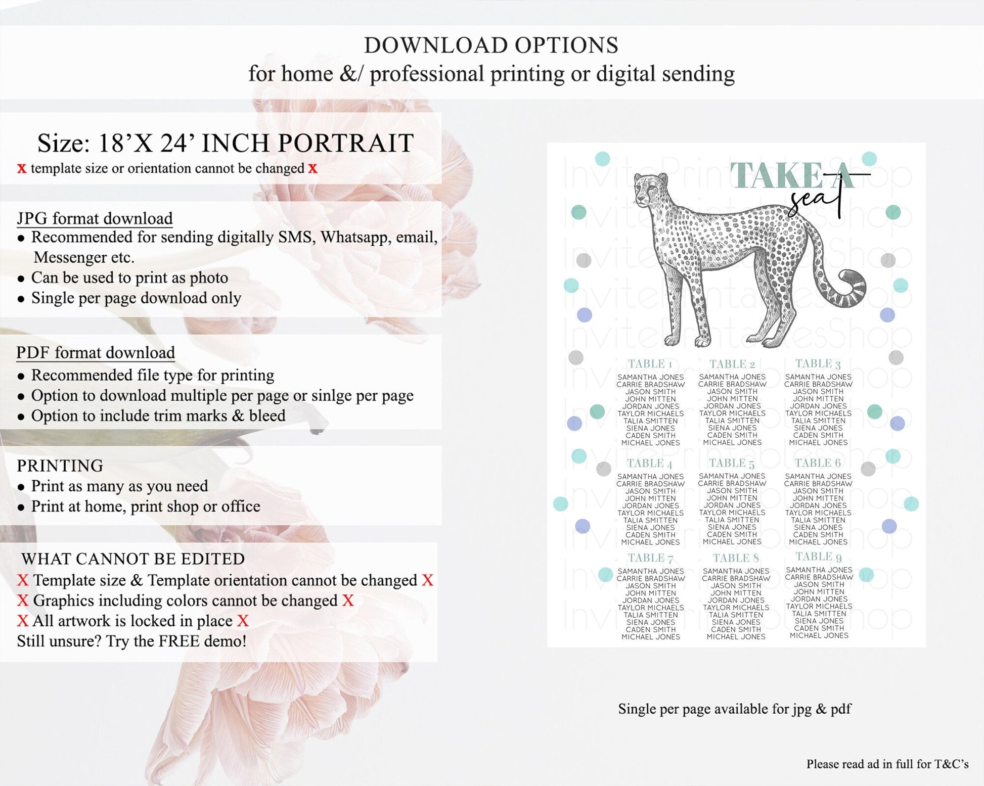 Cheetah Seating Chart Cheetah Seating Sign Cheetah Safari Seating Sign Adventure Cheetah Seating Board Palm Leaf Zoo Take a Seat D10857
