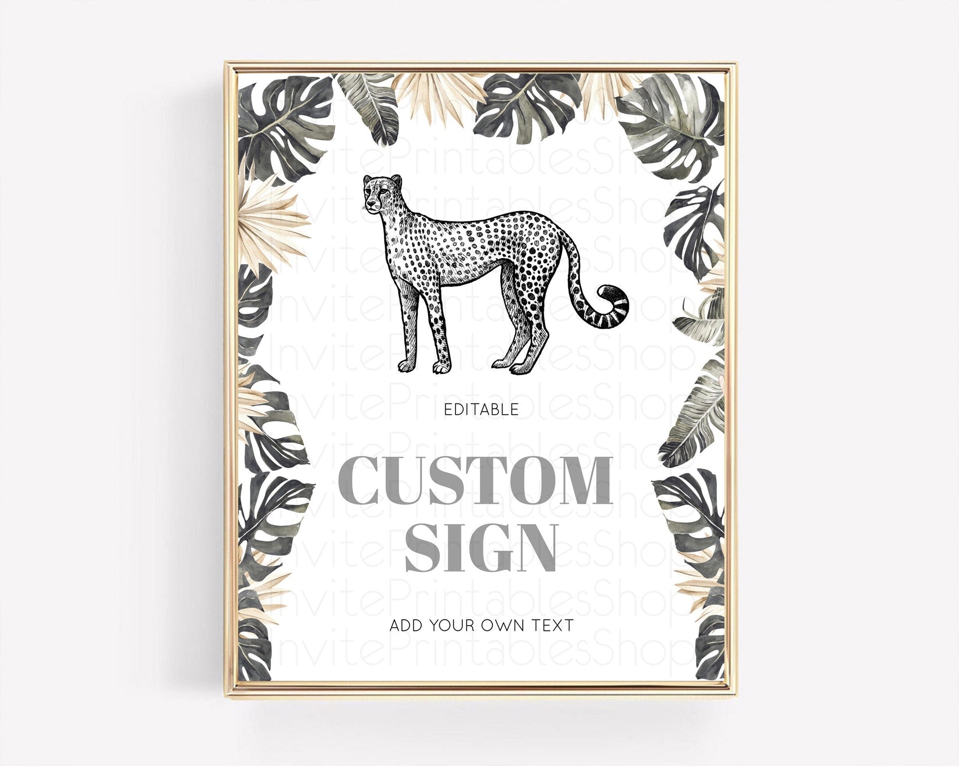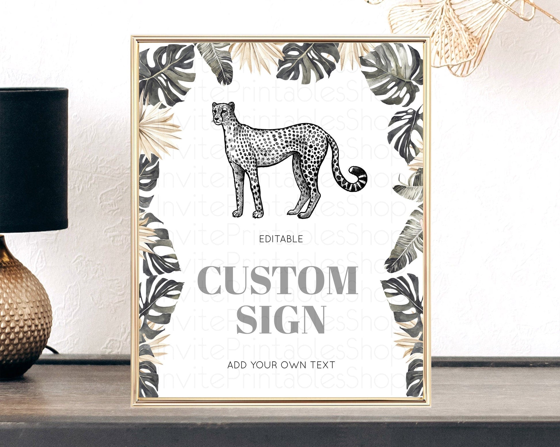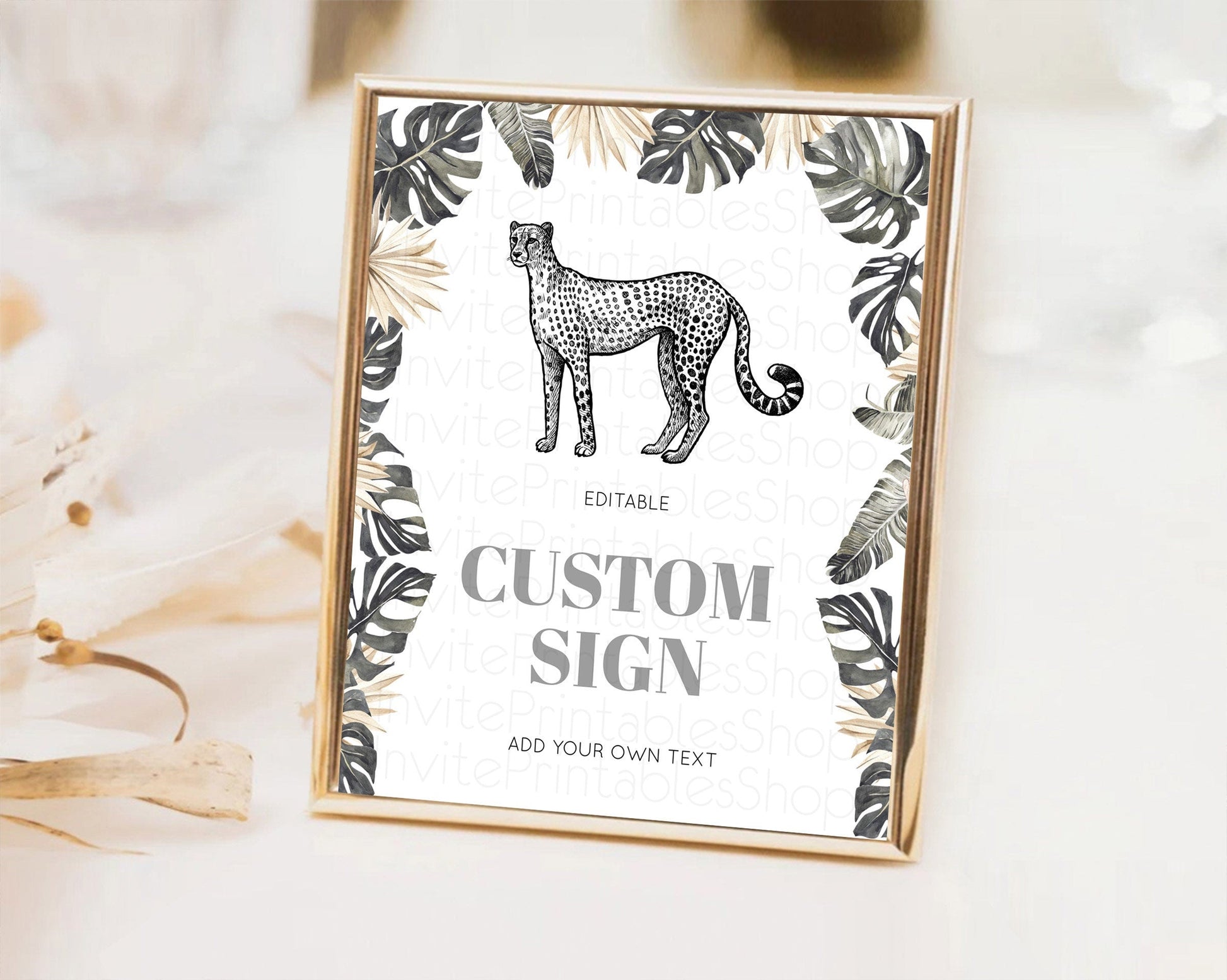 Cheetah Sign Cheetah Party Sign Template Safari Adventure Table Sign Decor Cheetah Minimal Theme 1st Birthday Baptism Baby Shower D10823