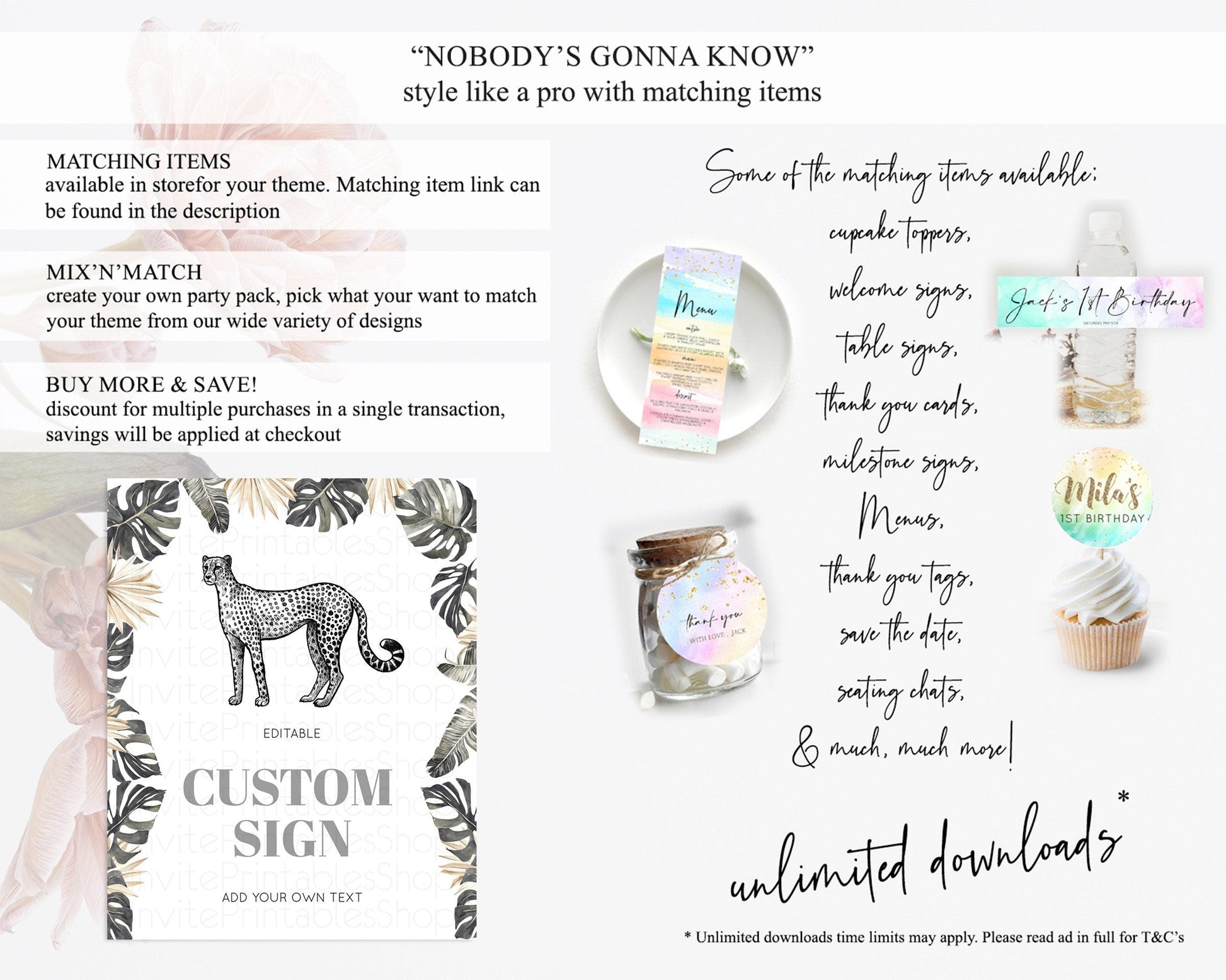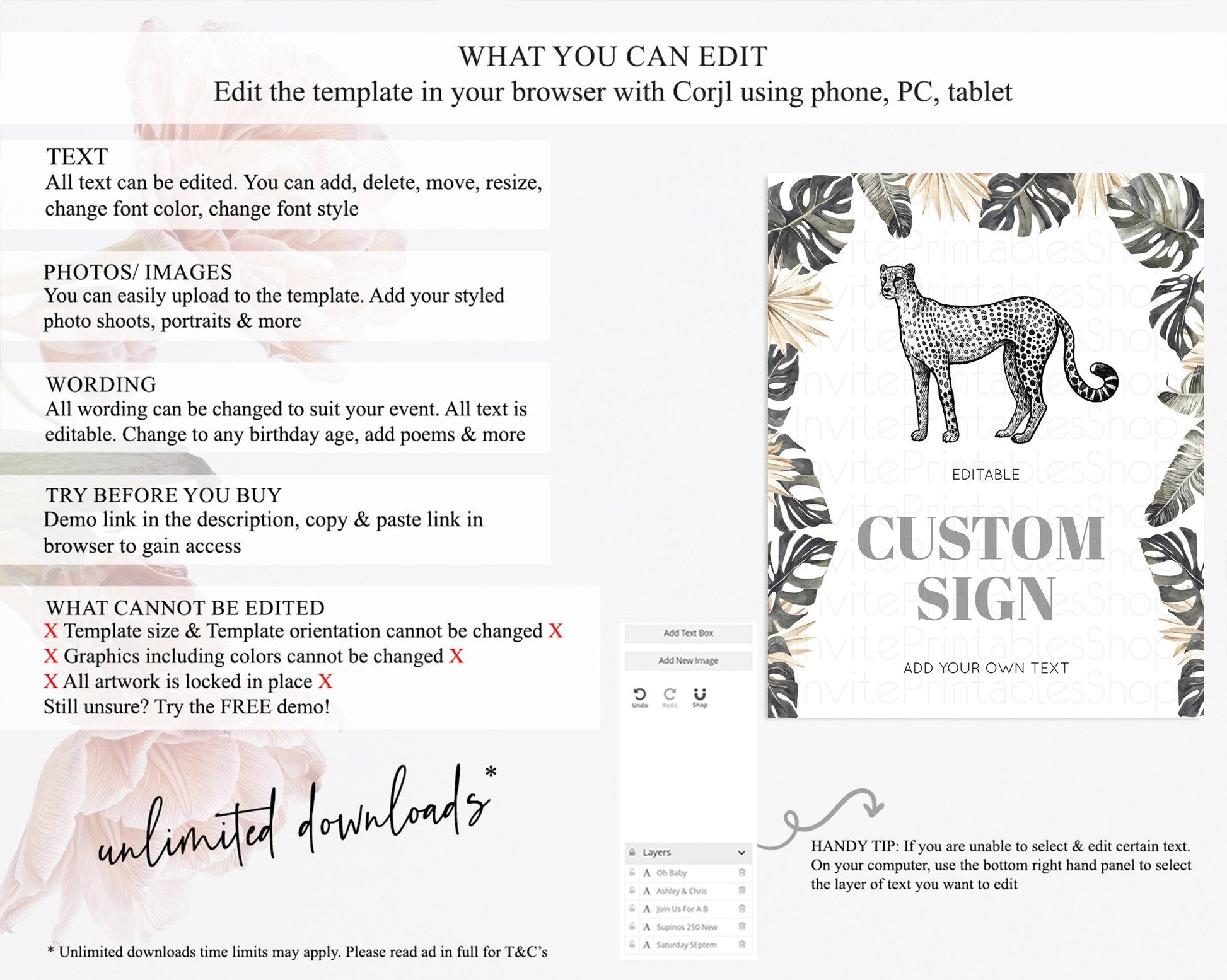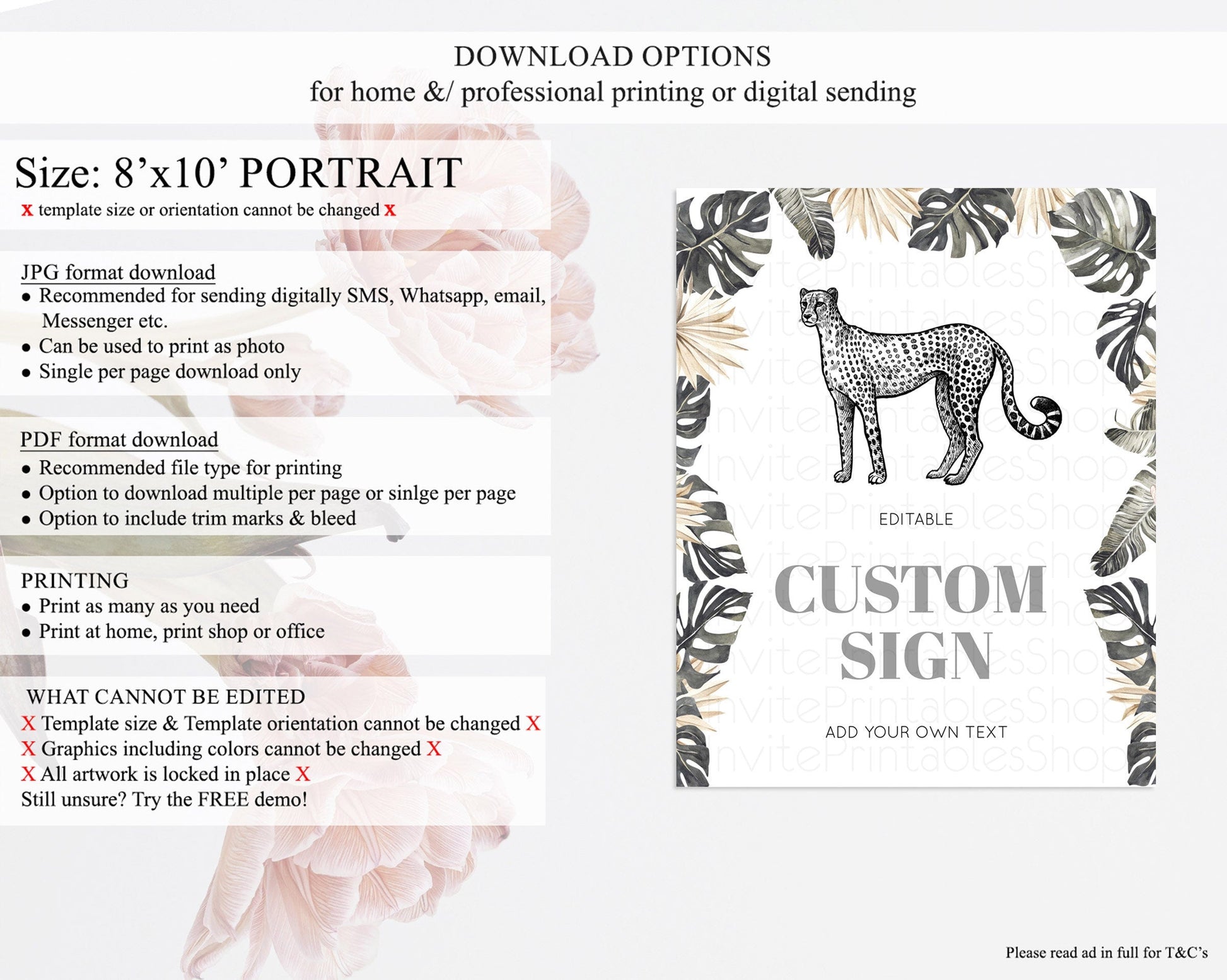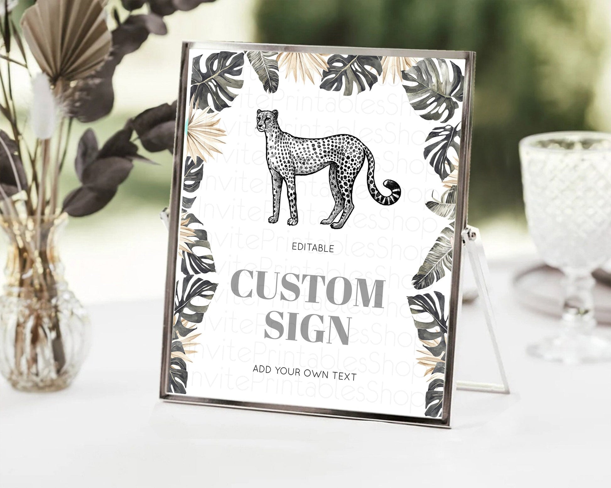 Cheetah Sign Cheetah Party Sign Template Safari Adventure Table Sign Decor Cheetah Minimal Theme 1st Birthday Baptism Baby Shower D10823