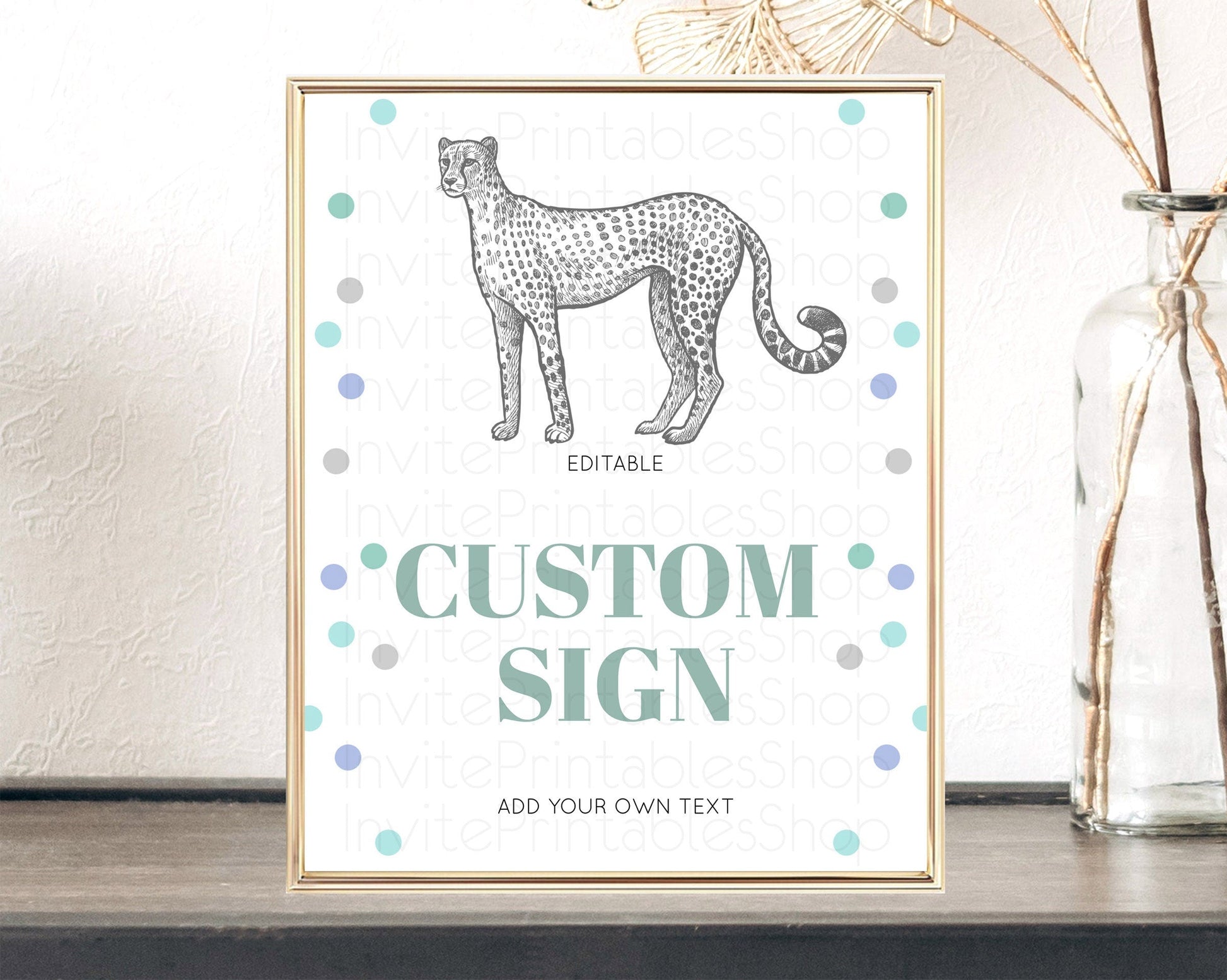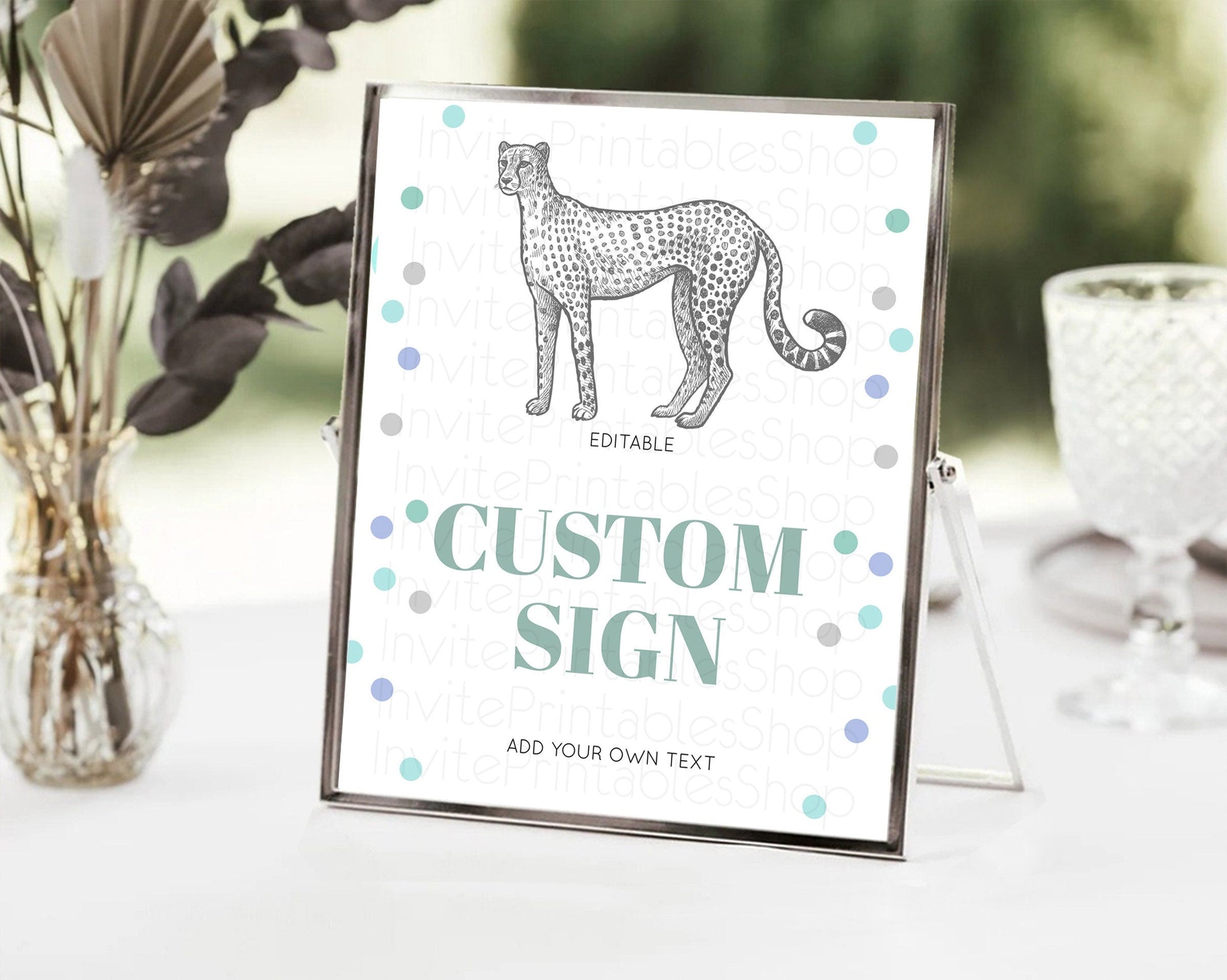 Cheetah Sign Cheetah Party Sign Template Safari Adventure Table Sign Decor Cheetah Minimal Theme 1st Birthday Baptism Baby Shower D10857