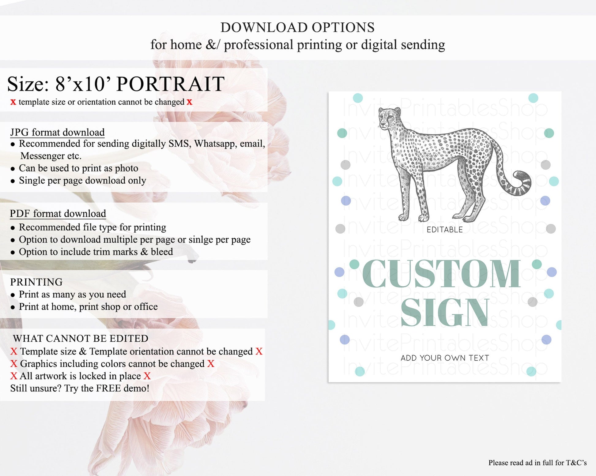 • Template size & orientation cannot be changed. Please use the demo link to confirm this product suits your needs.