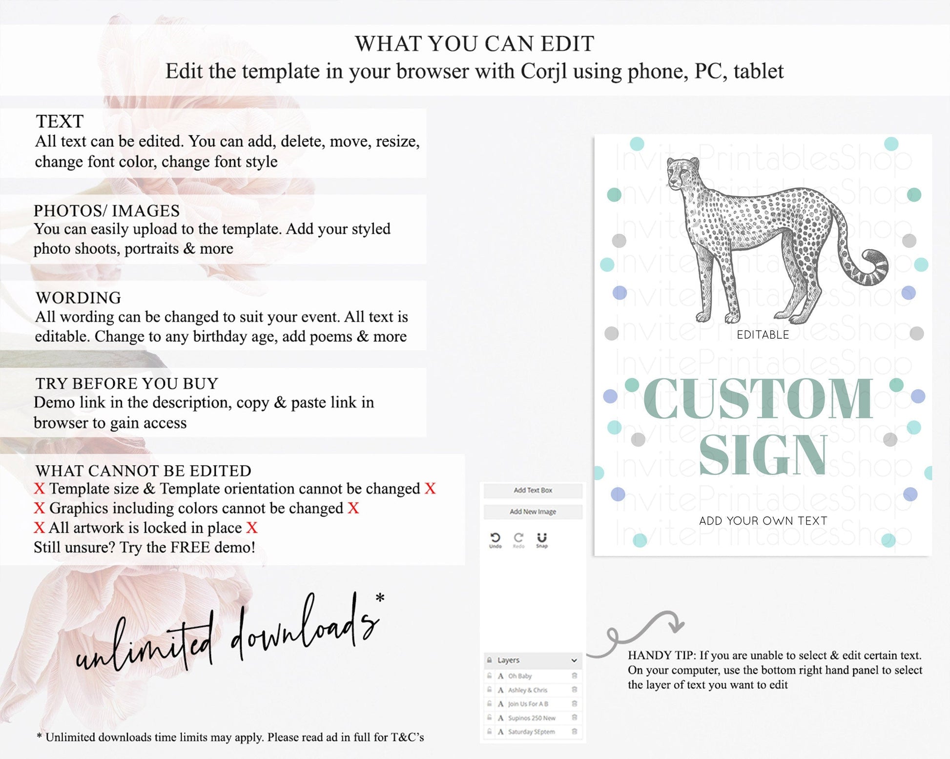 • After purchase, Corjl emails your editing link. Allow up to 15 minutes for delivery.