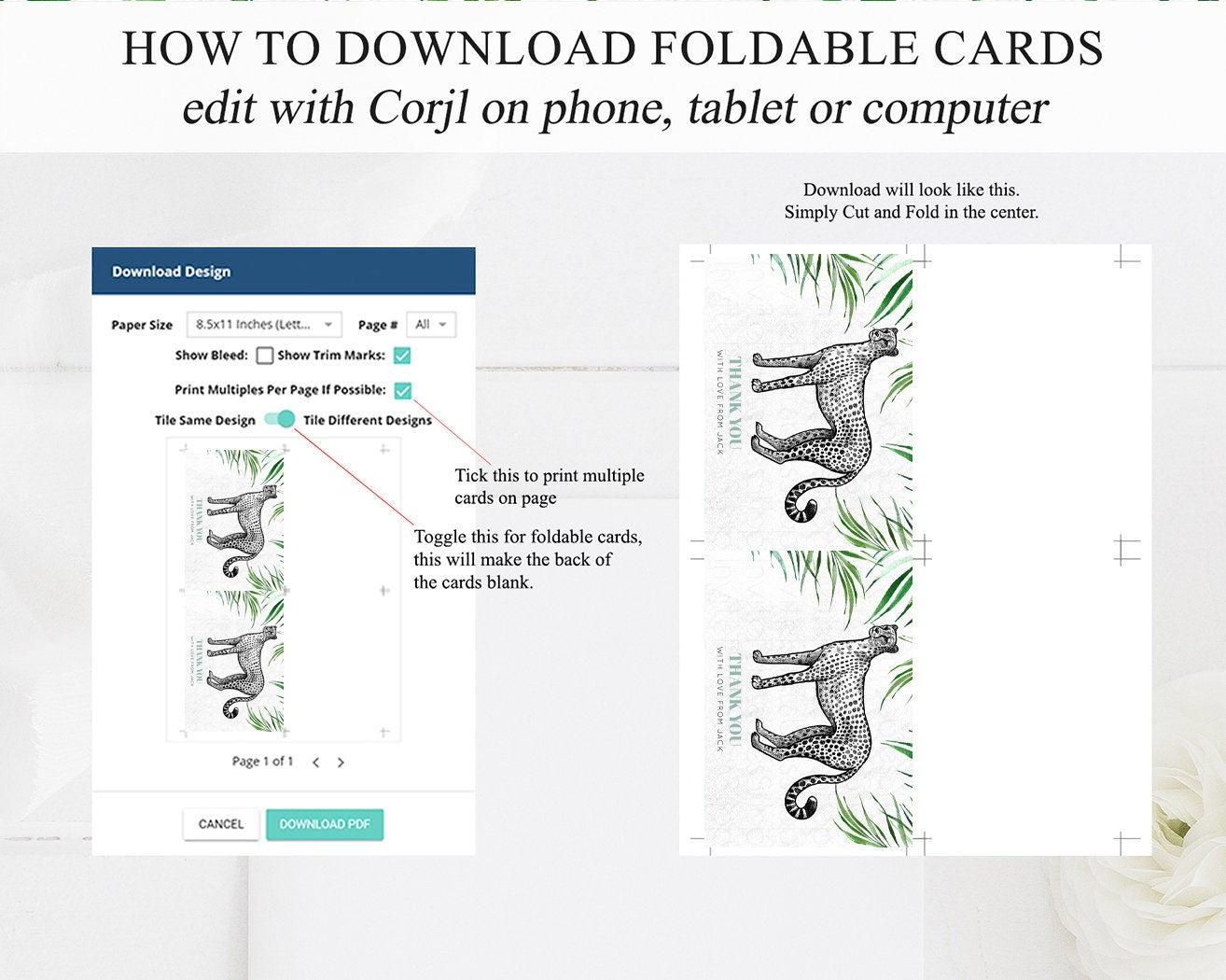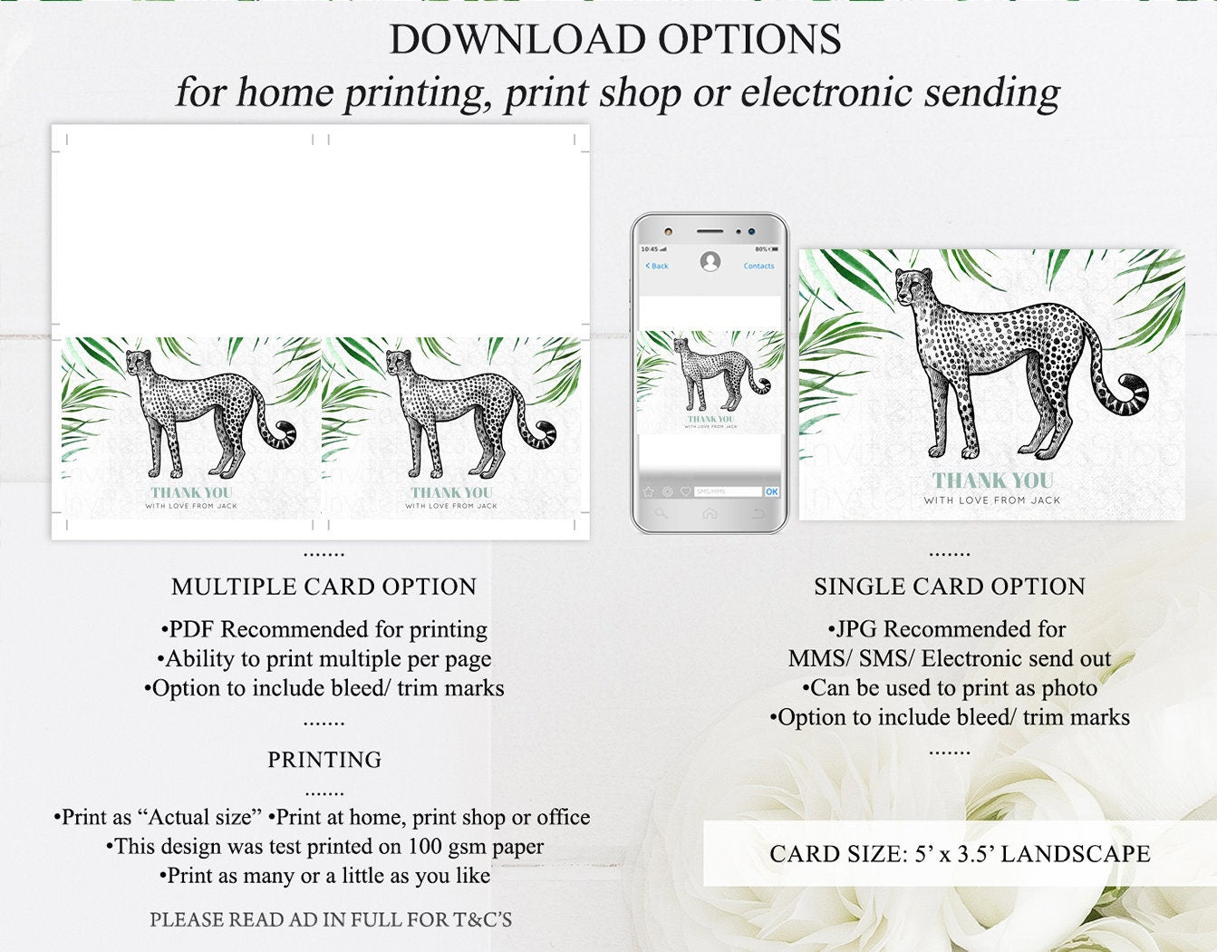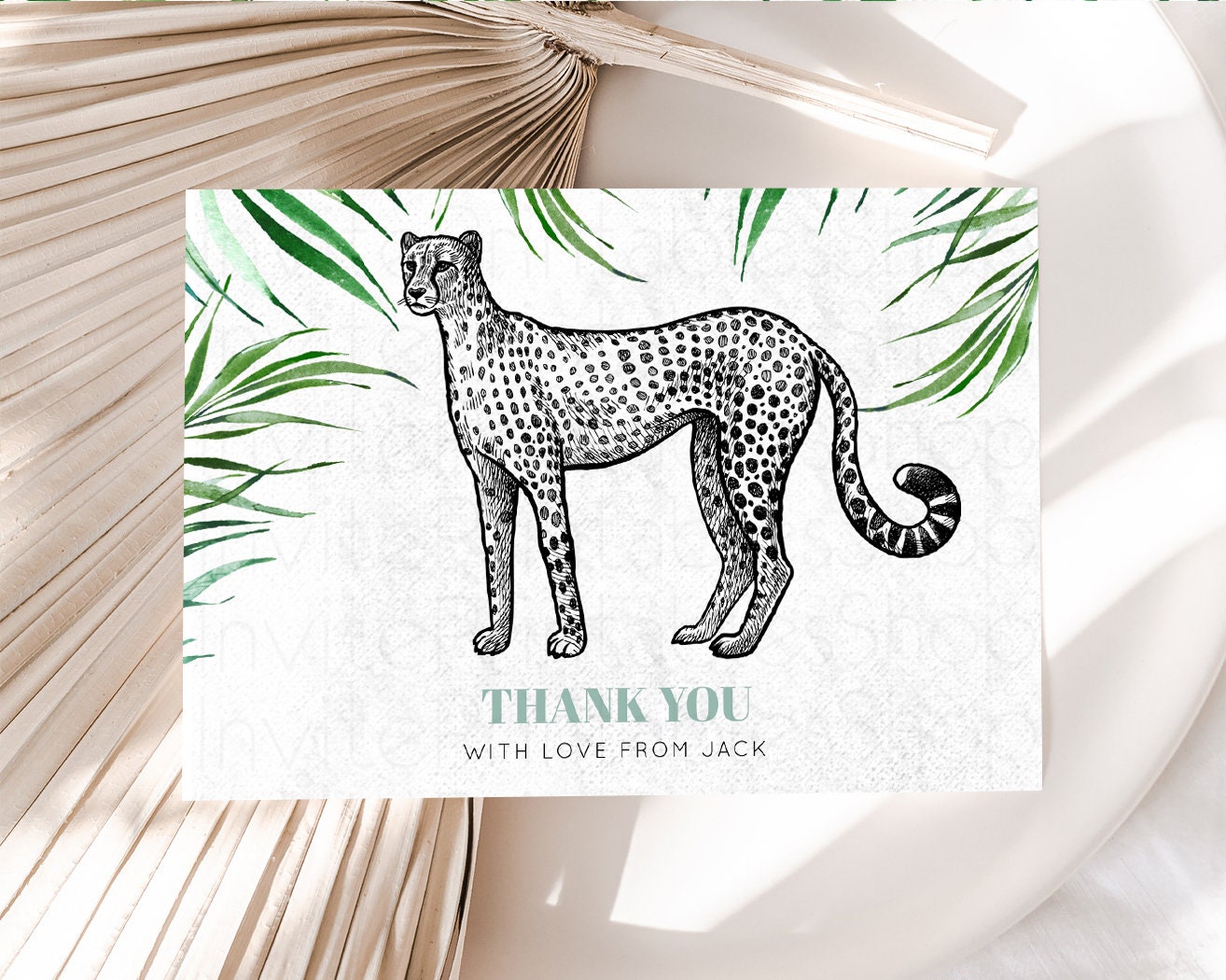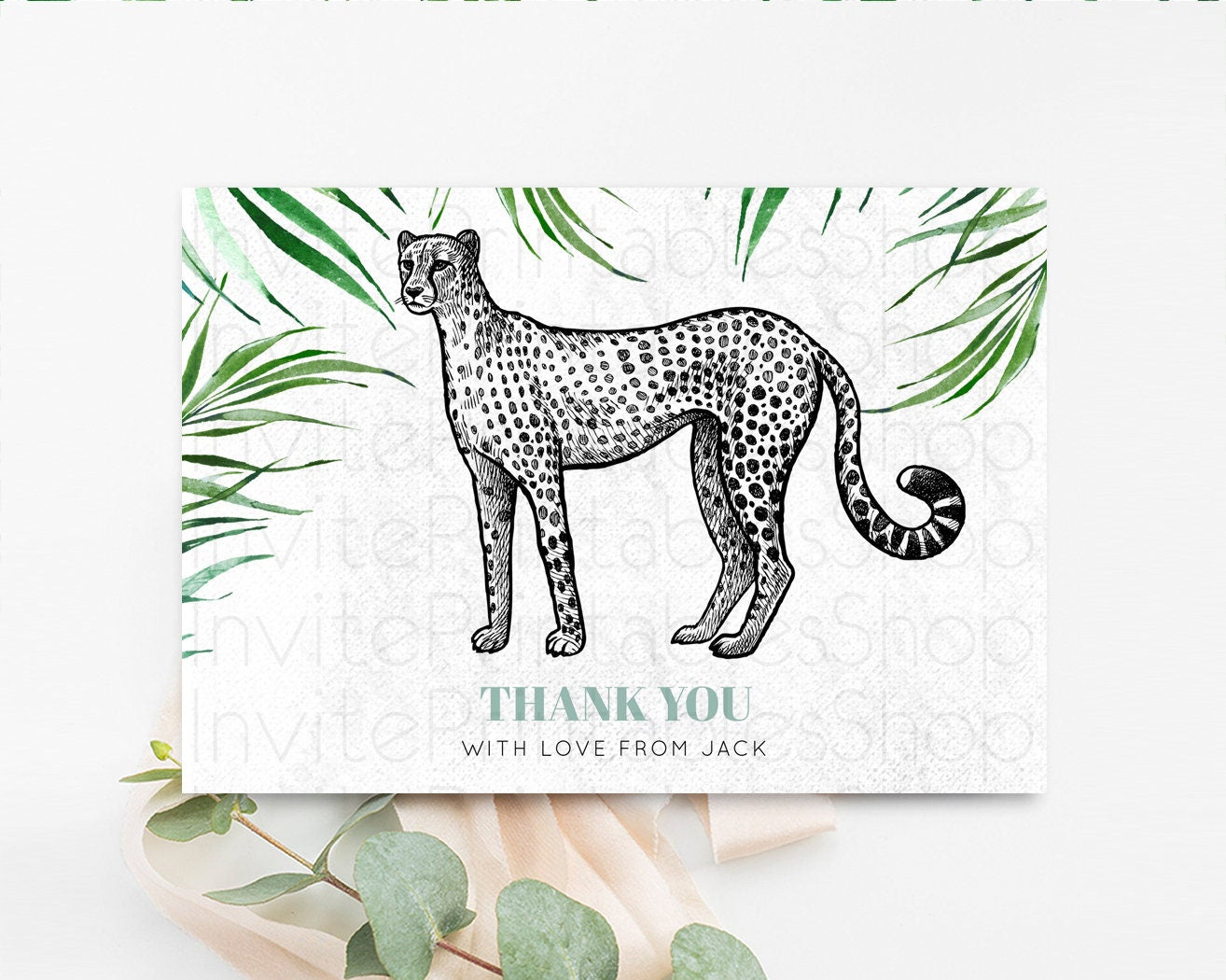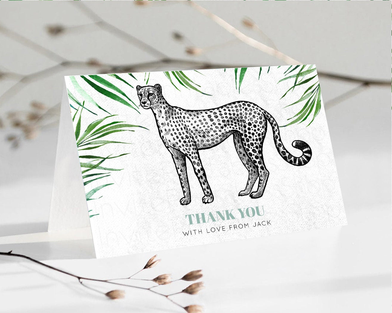 Cheetah Thank You Card Tropical Palm Fern Wild One Safari Jungle Zoo Party Foldable Card Tent Flat Postcard Detail Insert Card Birthday 287