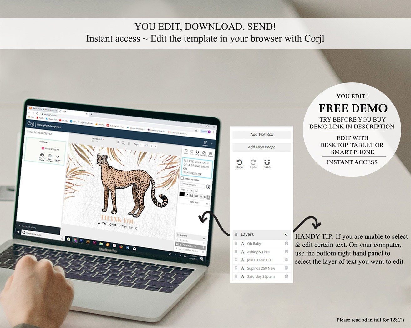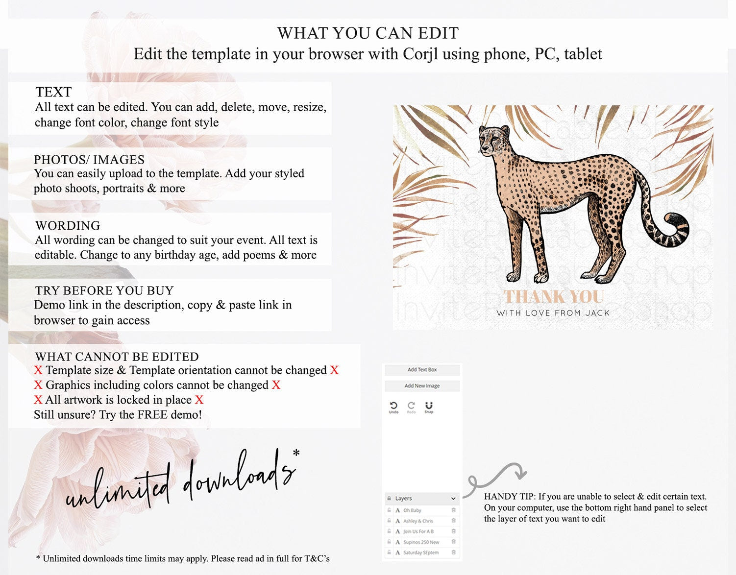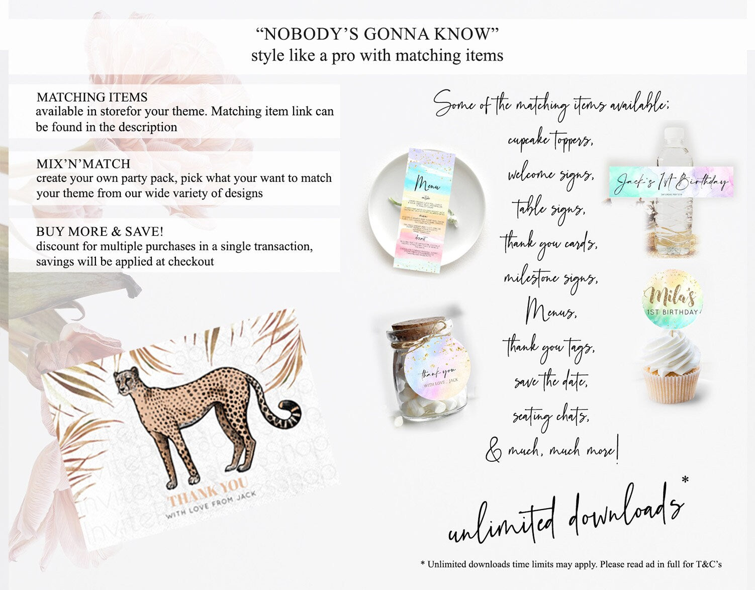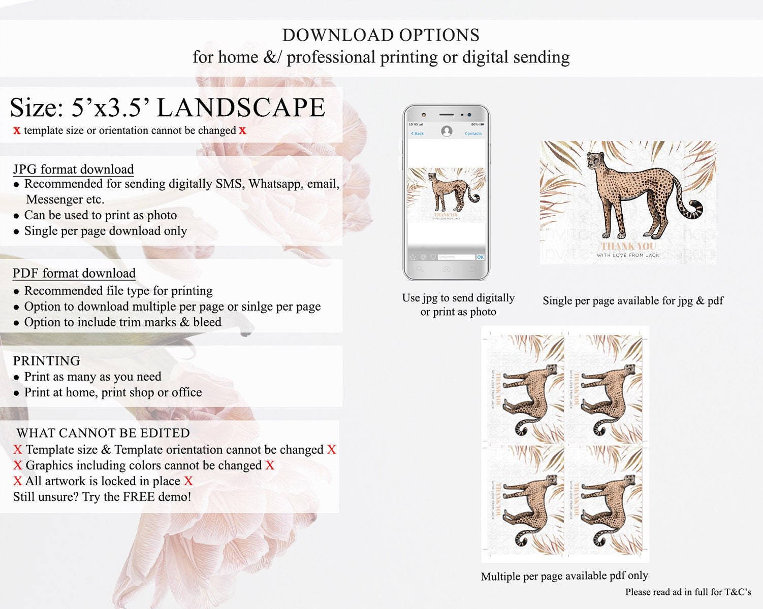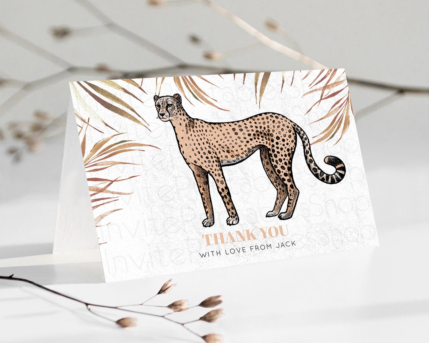 Cheetah Thank You Cheetah Thank You Card Cheetah Party Birthday Thank You Card Safari Card Template Cheetah Teacher Thank You Cards D10291