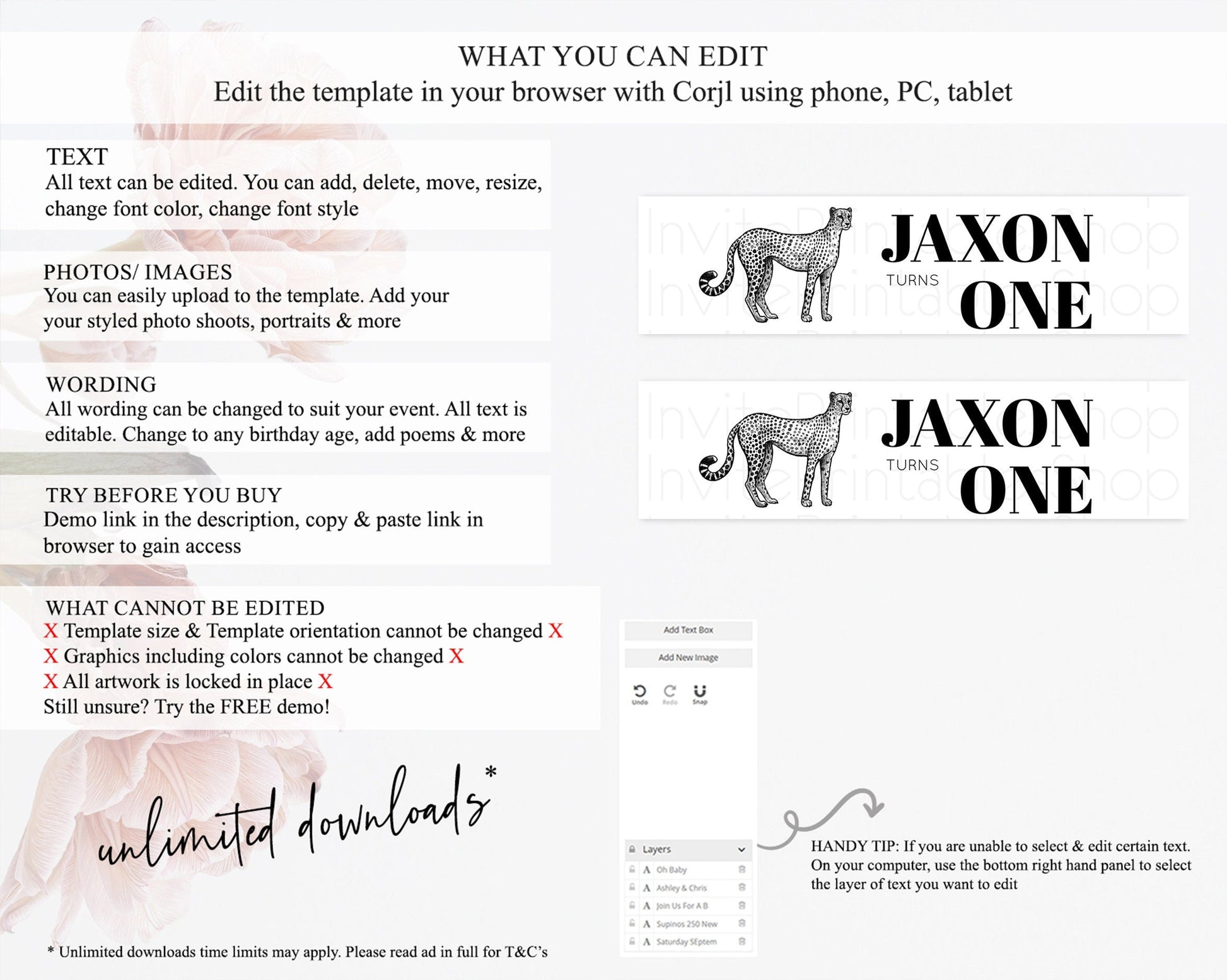 Cheetah Water Label Template Cheetah Party Decor Water Label Safari Adventure Cheetah Minimal Theme 1st Birthday Baptism Baby Shower D10290