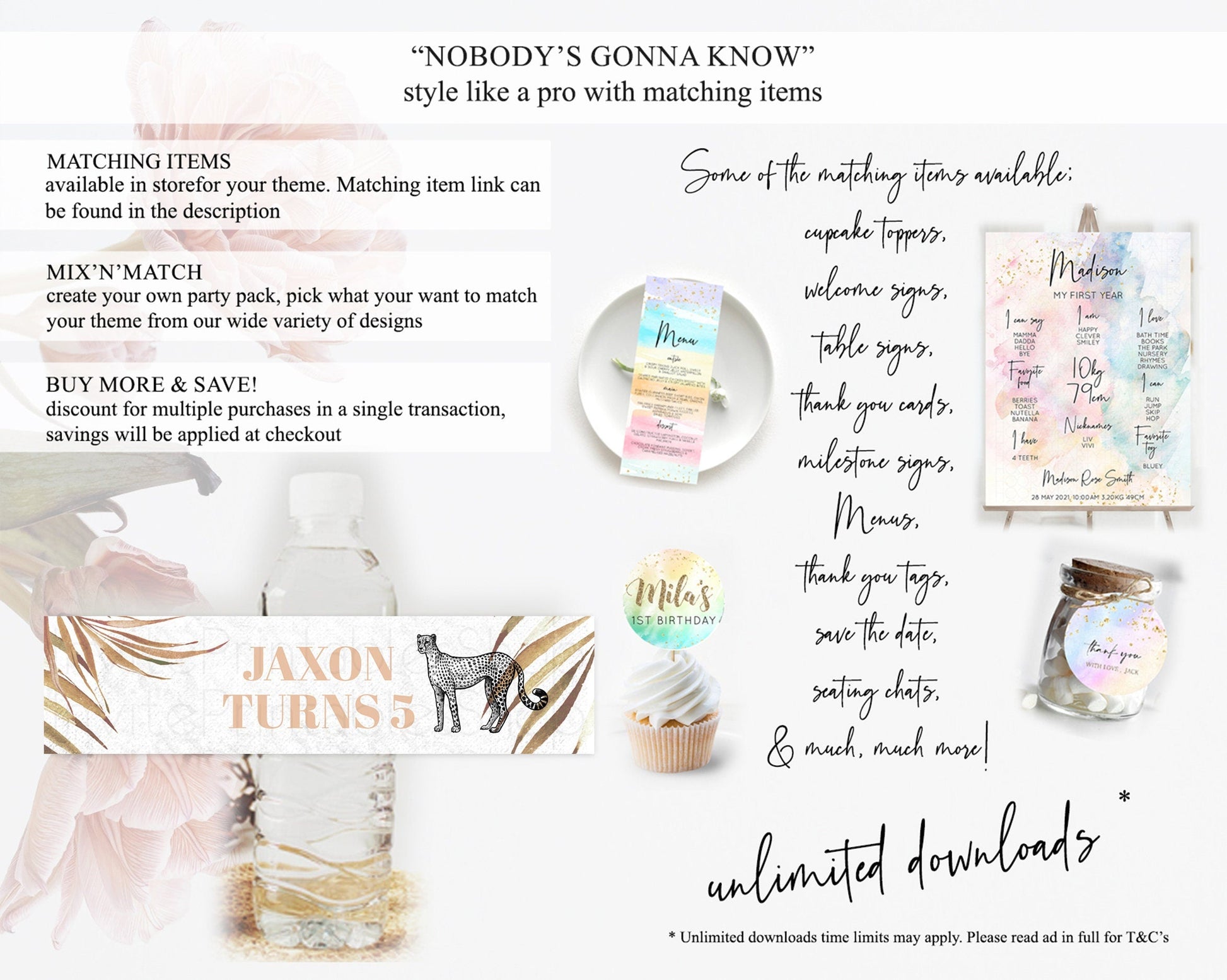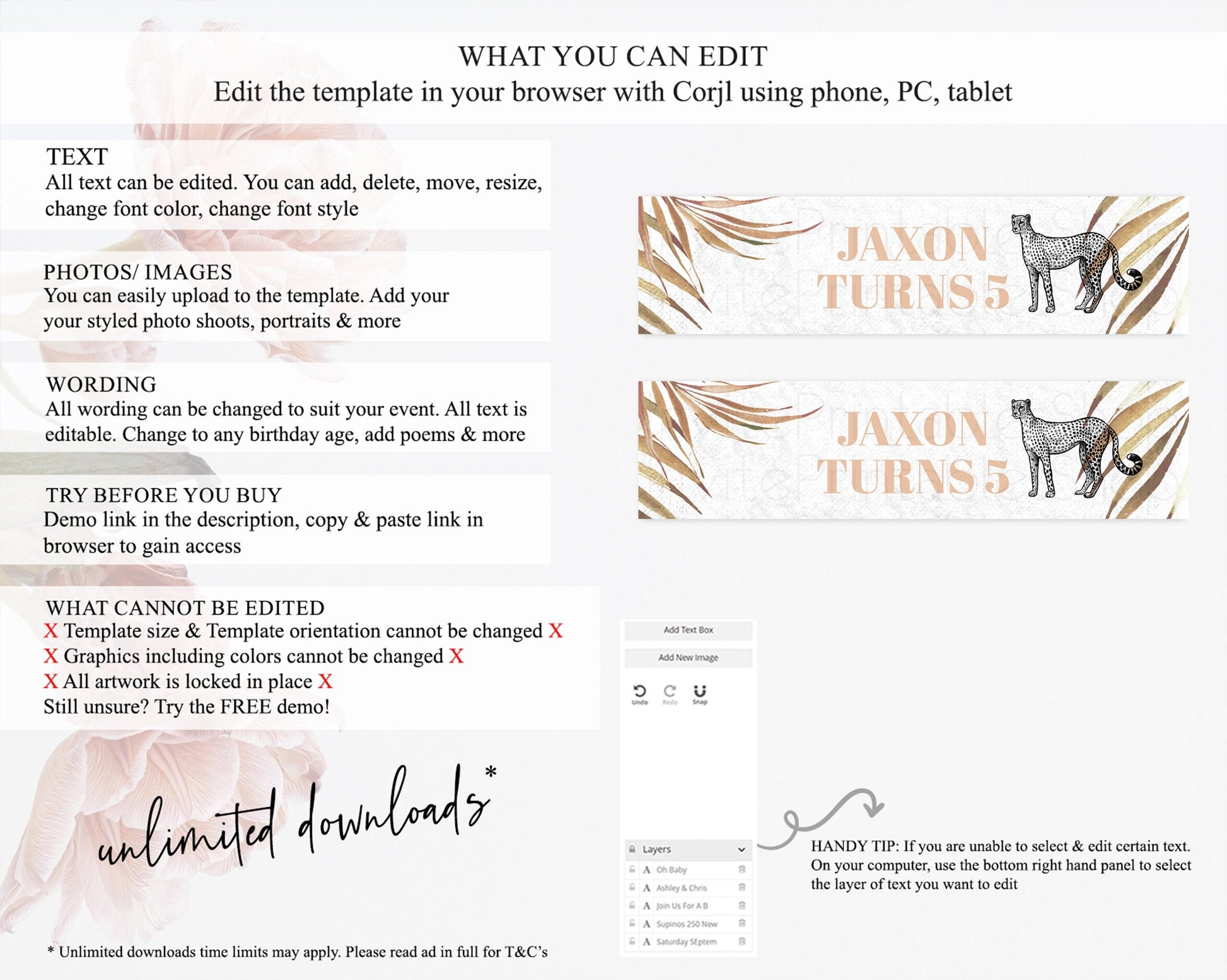 Cheetah Water Label Template Cheetah Party Decor Water Label Safari Adventure Cheetah Minimal Theme 1st Birthday Baptism Baby Shower D10291
