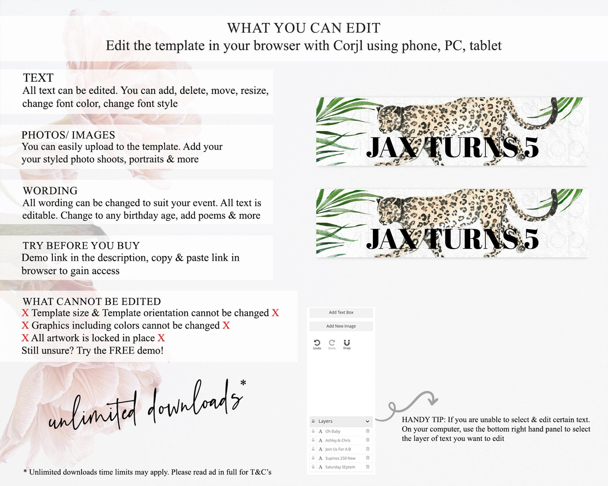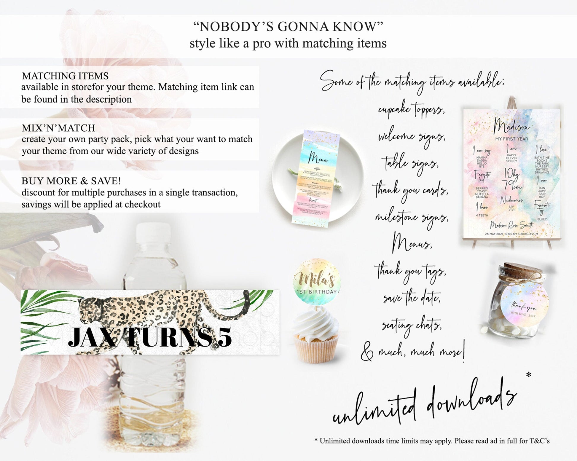 Cheetah Water Label Template Cheetah Party Decor Water Label Safari Adventure Cheetah Minimal Theme 1st Birthday Baptism Baby Shower D10382