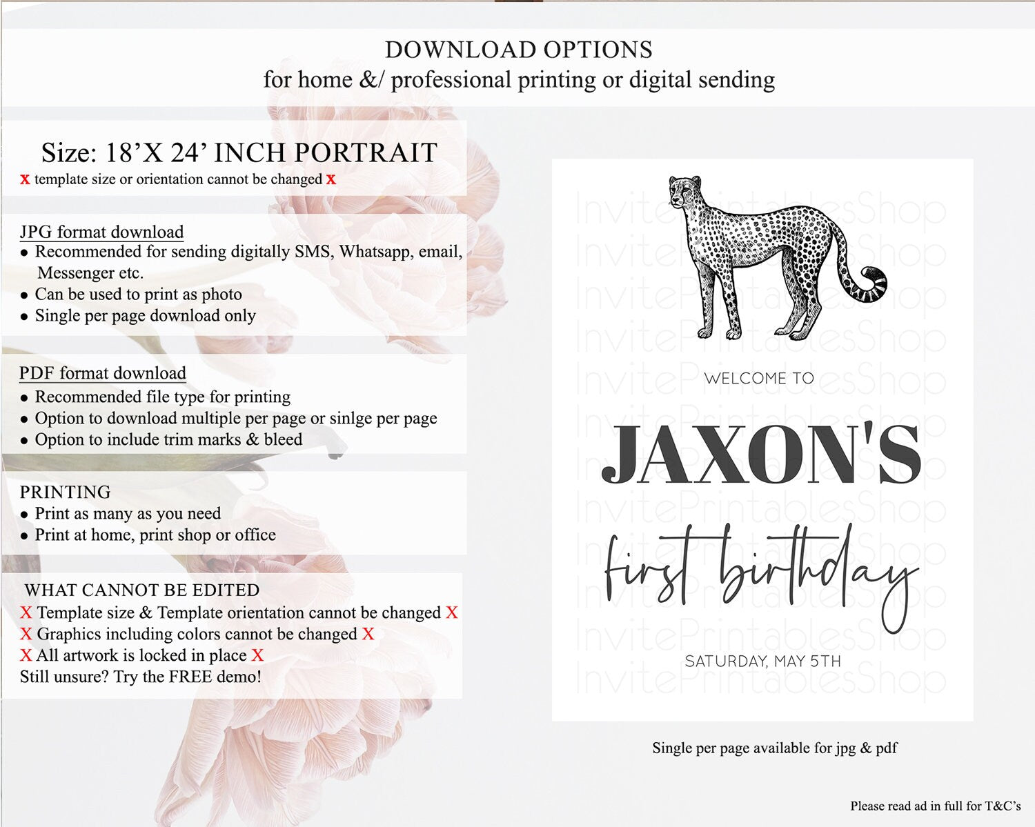 Cheetah Welcome Sign Cheetah Welcome Board Cheetah Party Welcome Poster Safari Adventure Decor Cheetah First Birthday Welcome Sign D10290