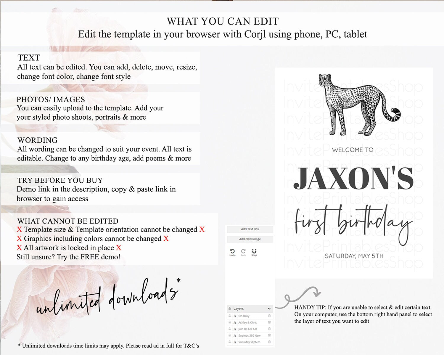 • After purchase, Corjl emails your editing link. Allow up to 15 minutes for delivery.