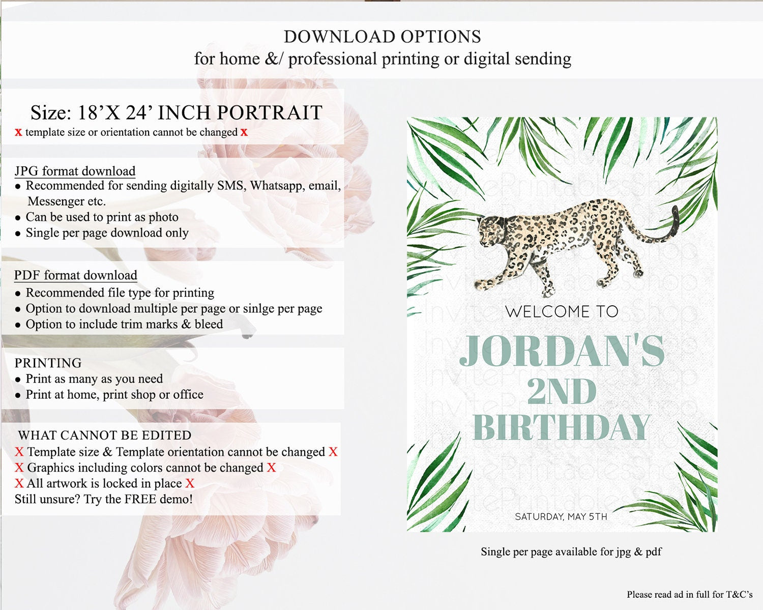Cheetah Welcome Sign Cheetah Welcome Board Cheetah Party Welcome Poster Safari Adventure Decor Cheetah First Birthday Welcome Sign D10382