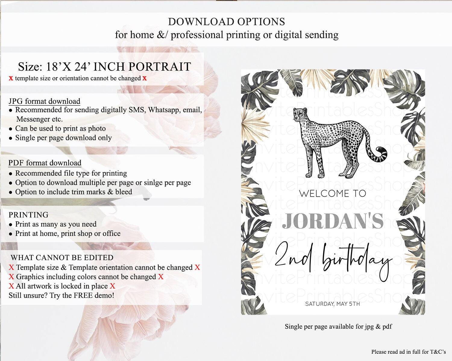 Cheetah Welcome Sign Cheetah Welcome Board Cheetah Party Welcome Poster Safari Adventure Decor Cheetah First Birthday Welcome Sign D10823
