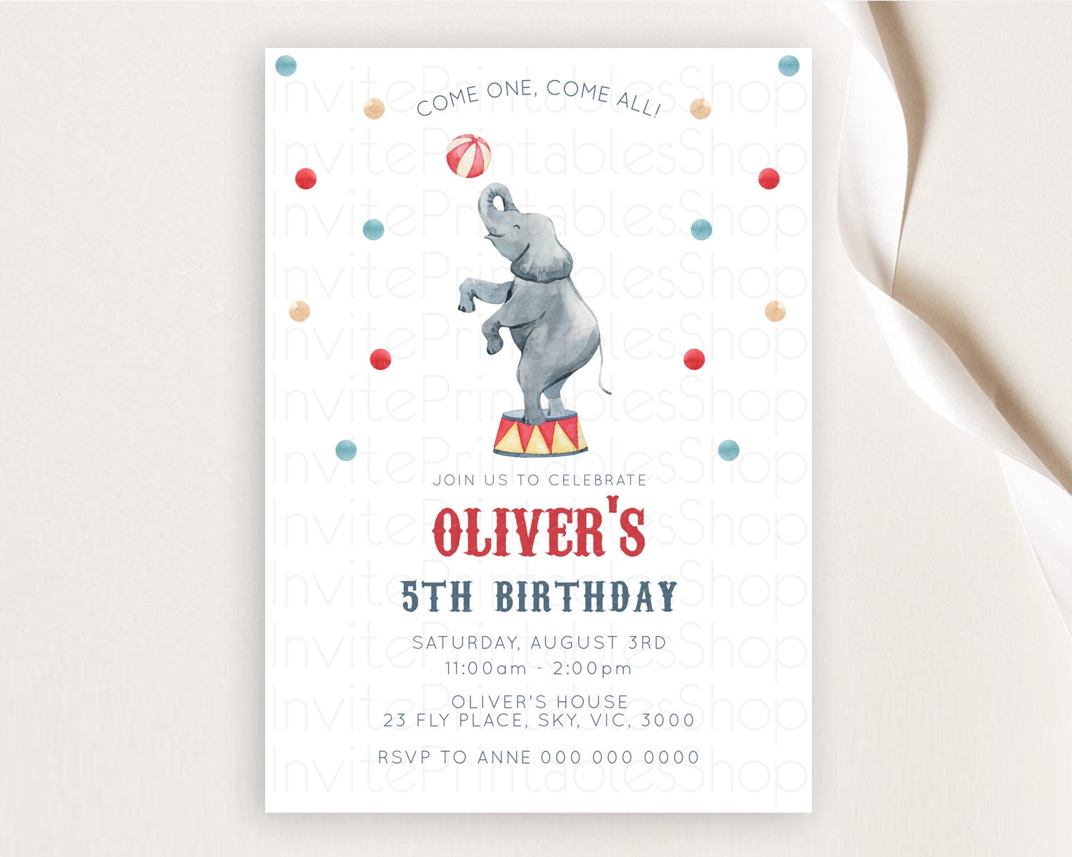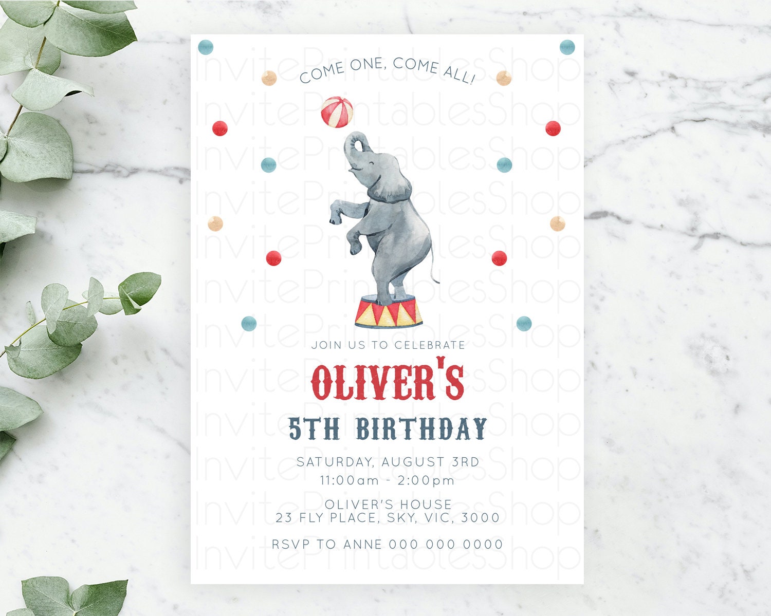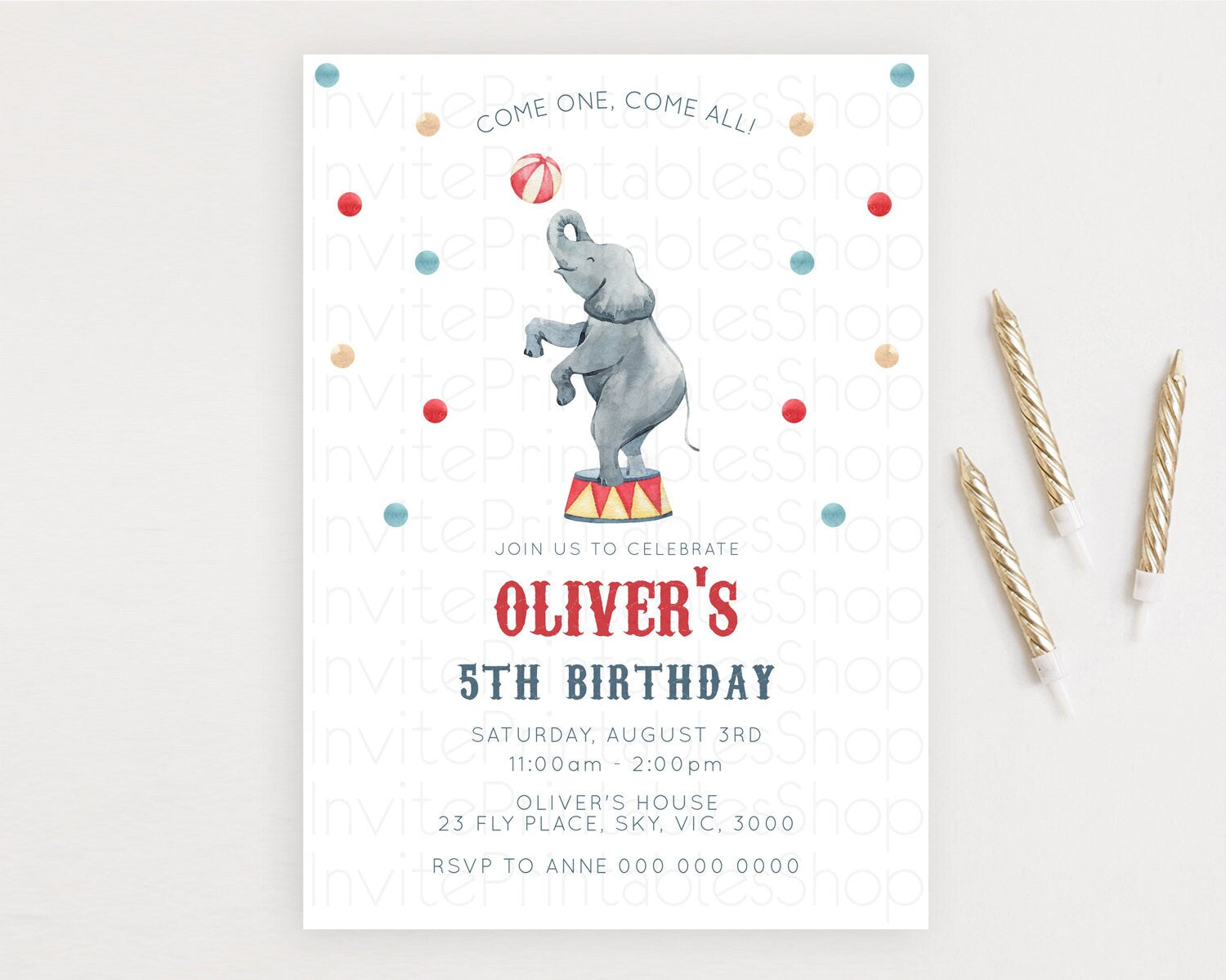Circus Birthday Invitation Carnival Birthday Invitation Clown Invite Circus Lion Invite Circus Tent Invite Circus Elephant Invite D10461