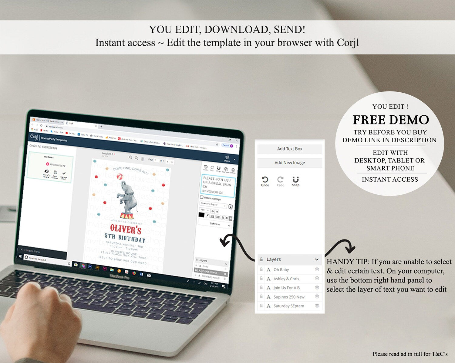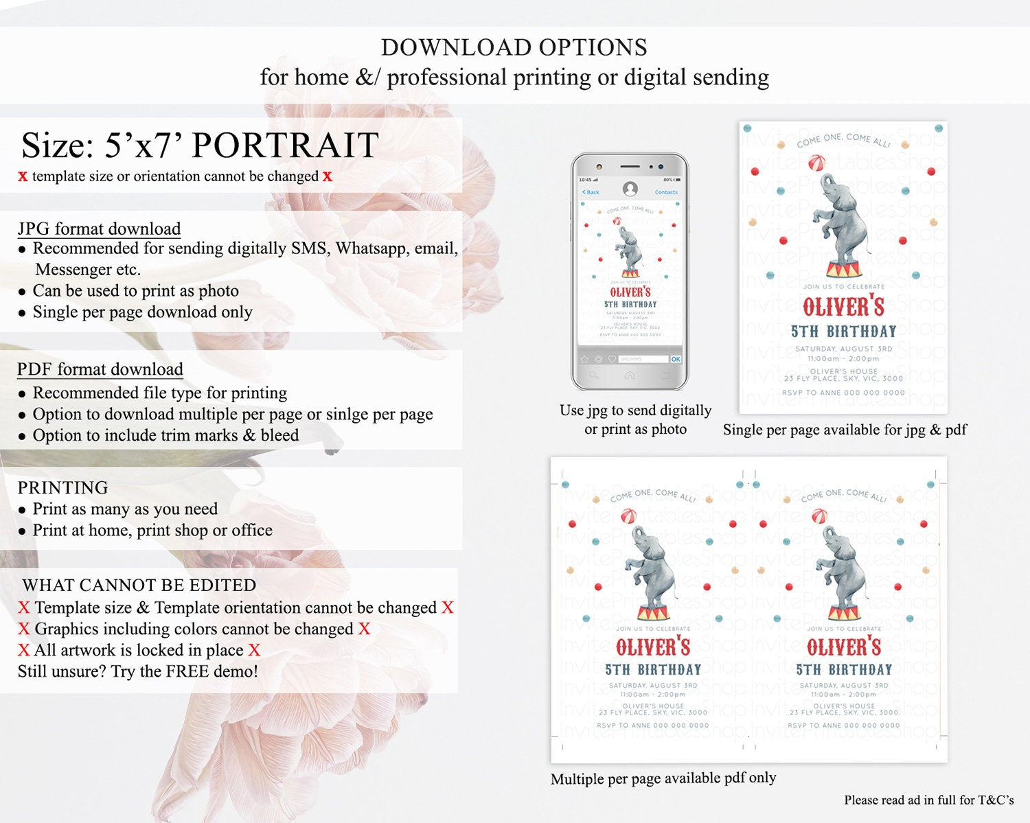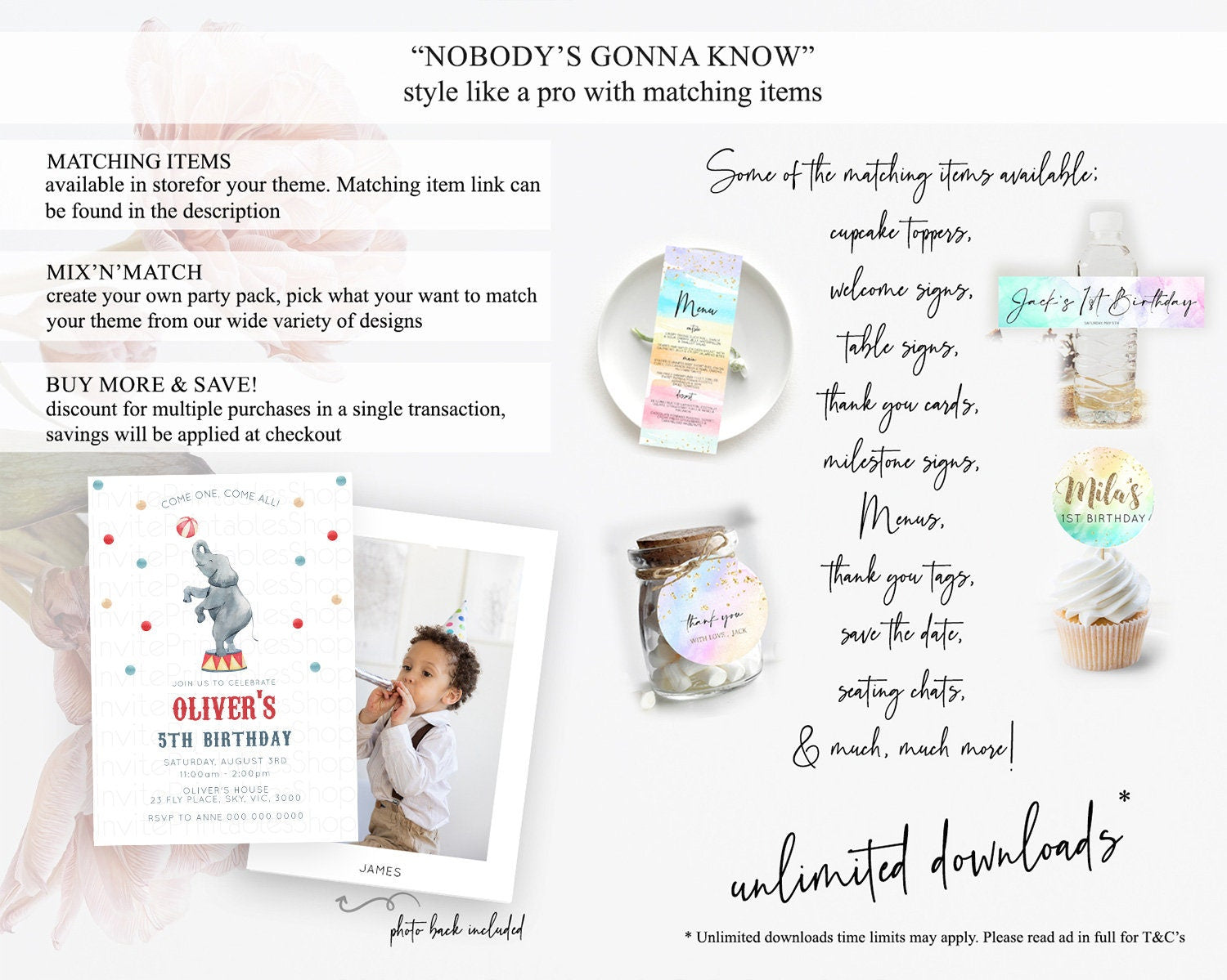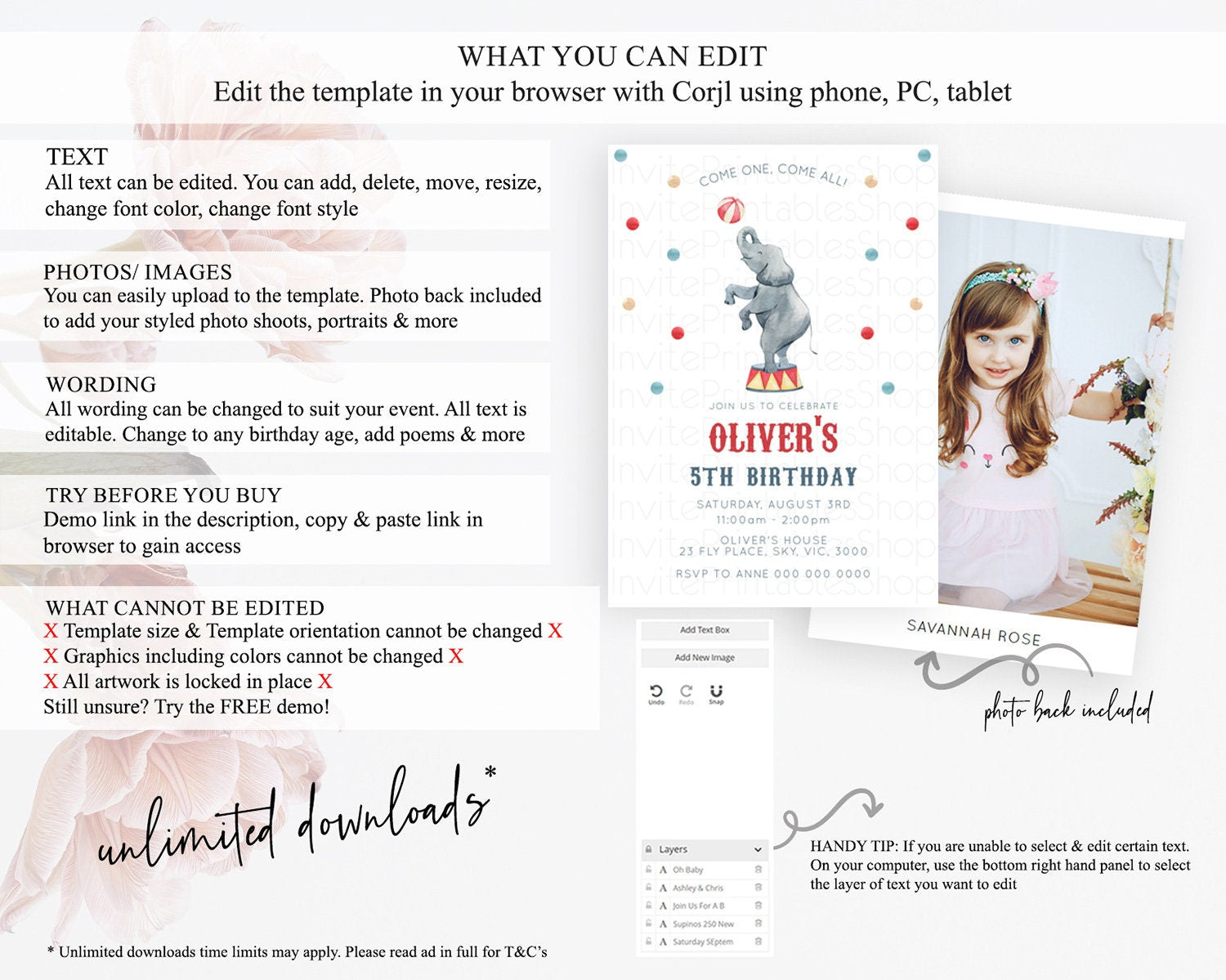 Circus Birthday Invitation Carnival Birthday Invitation Clown Invite Circus Lion Invite Circus Tent Invite Circus Elephant Invite D10461