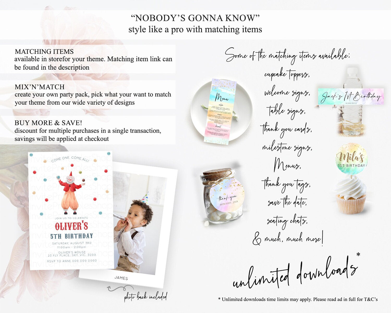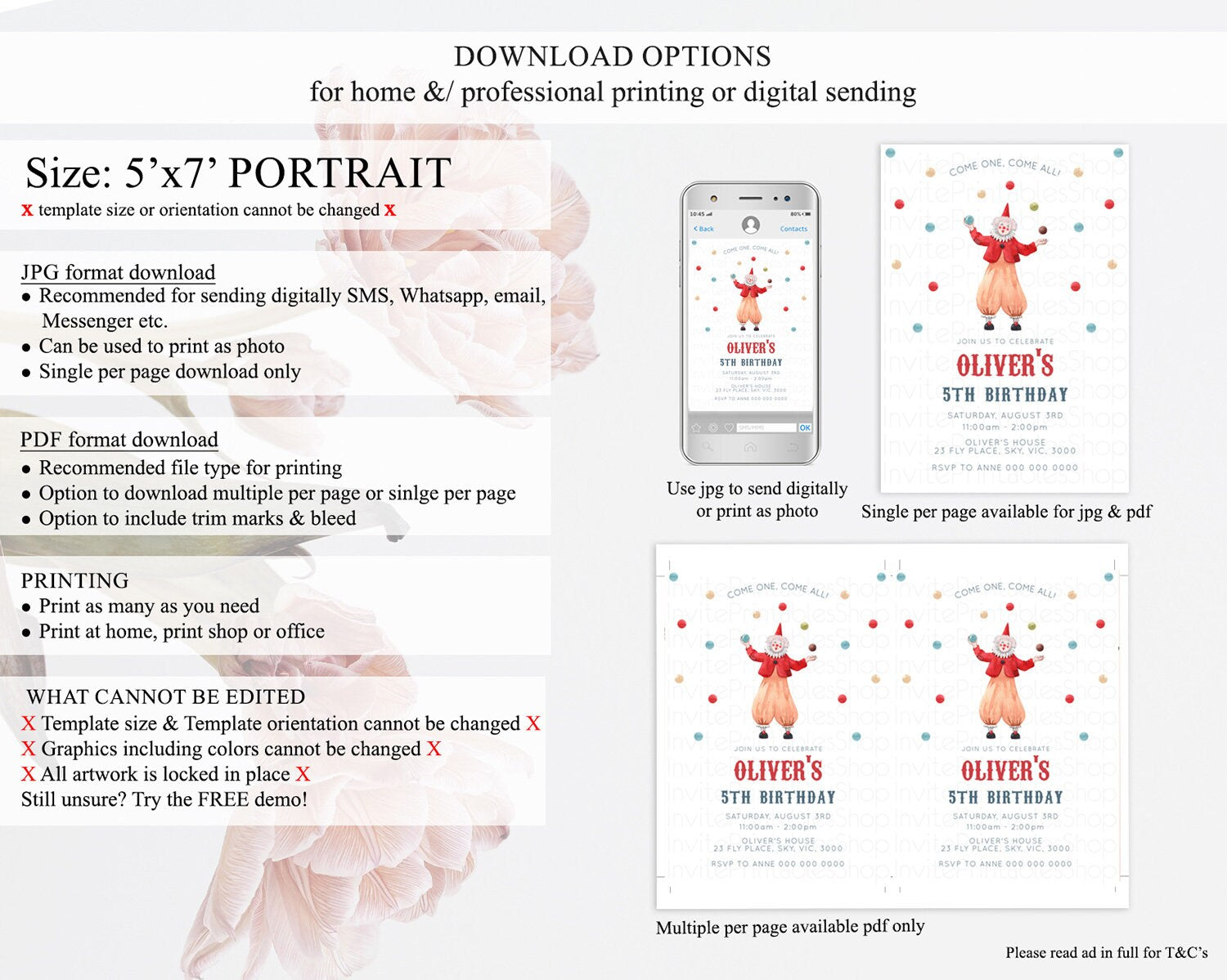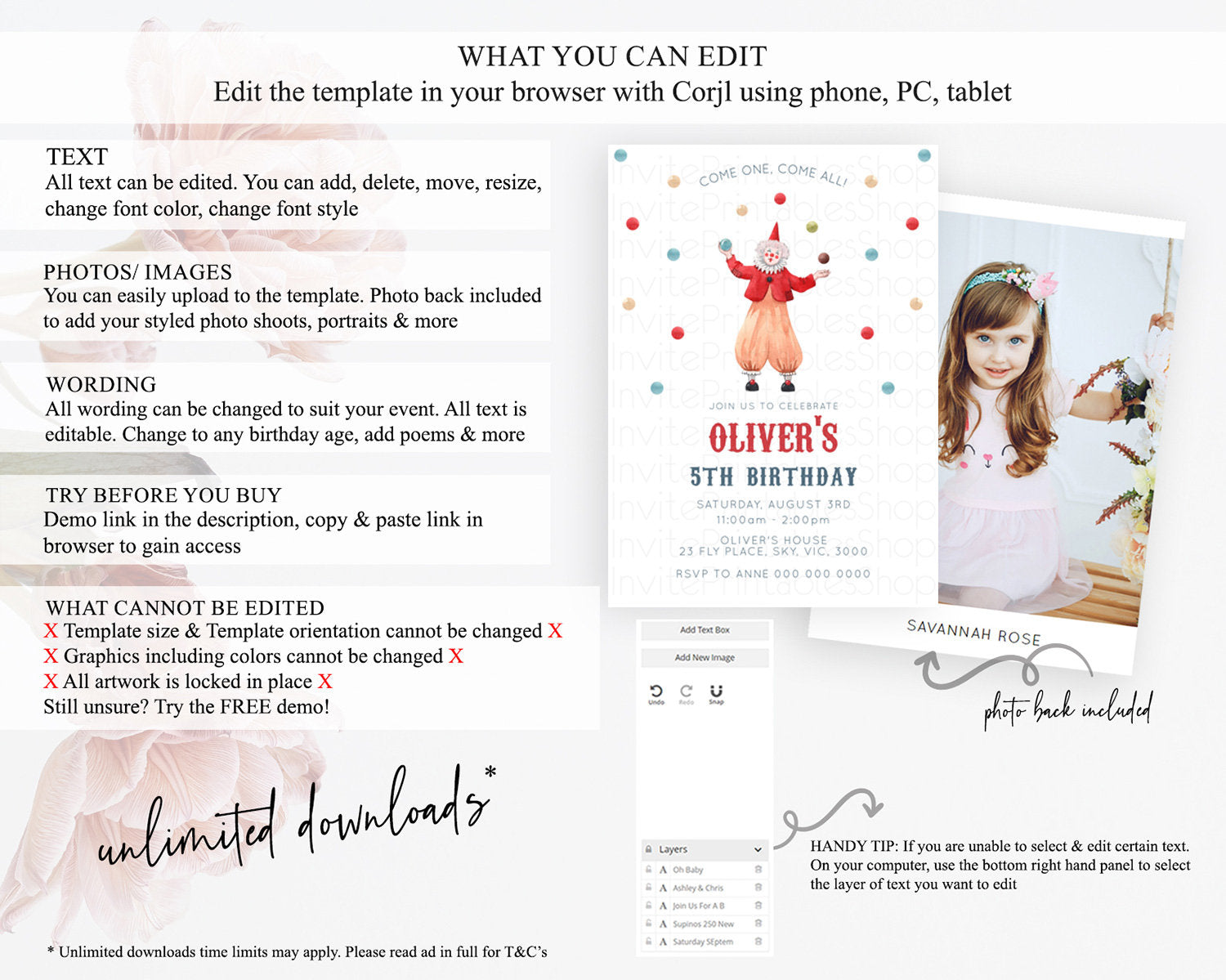 Circus Birthday Invitation Carnival Birthday Invitation Clown Invite Circus Lion Invite Circus Tent Invite Circus Elephant Invite D10502