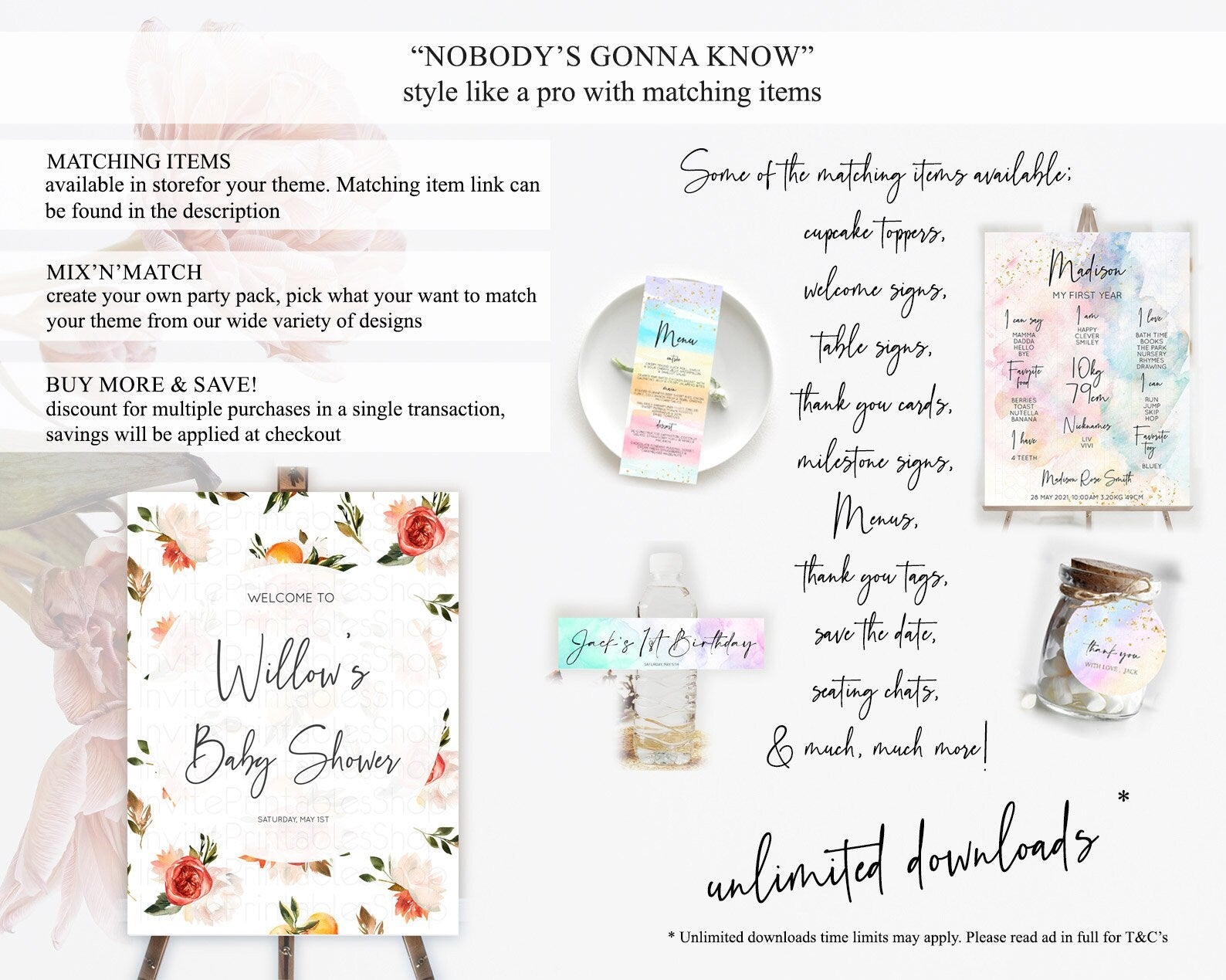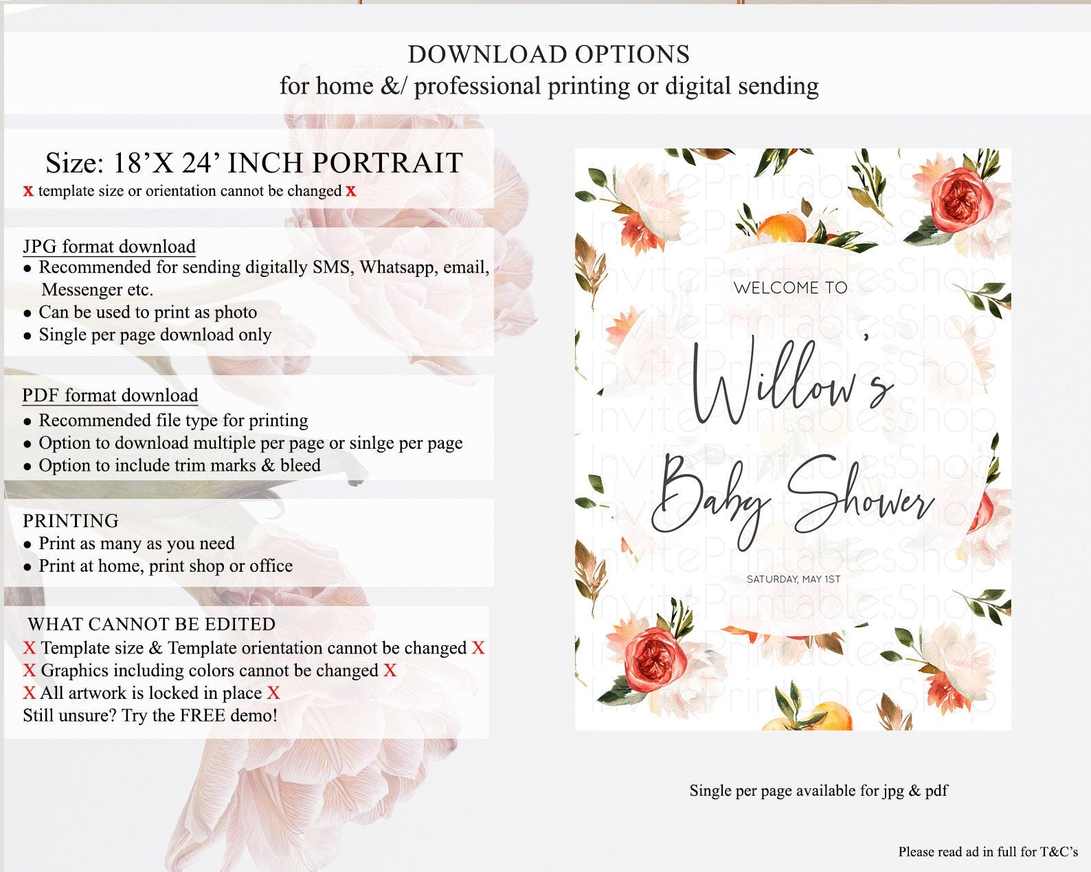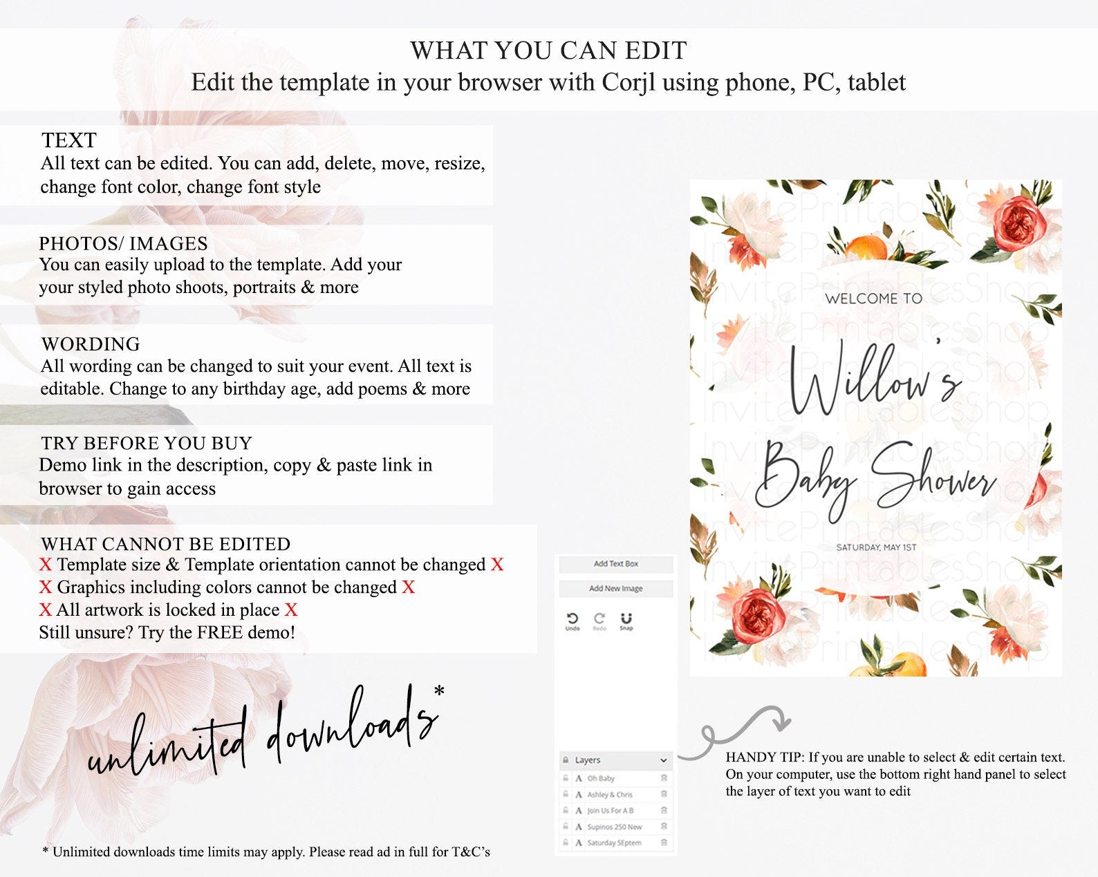 Citrus Baby Shower Welcome Sign Lemon Welcome Sign Orange Welcome Sign Citrus Welcome Poster Citrus Floral Decor Baby Welcome Board D10540