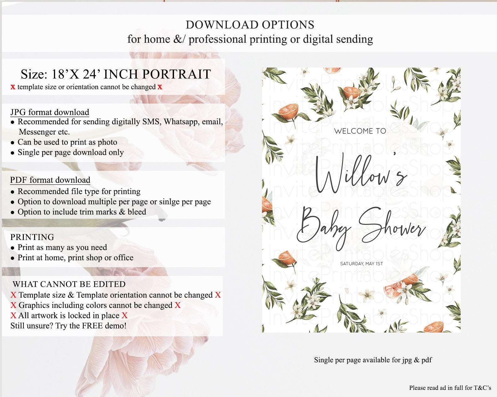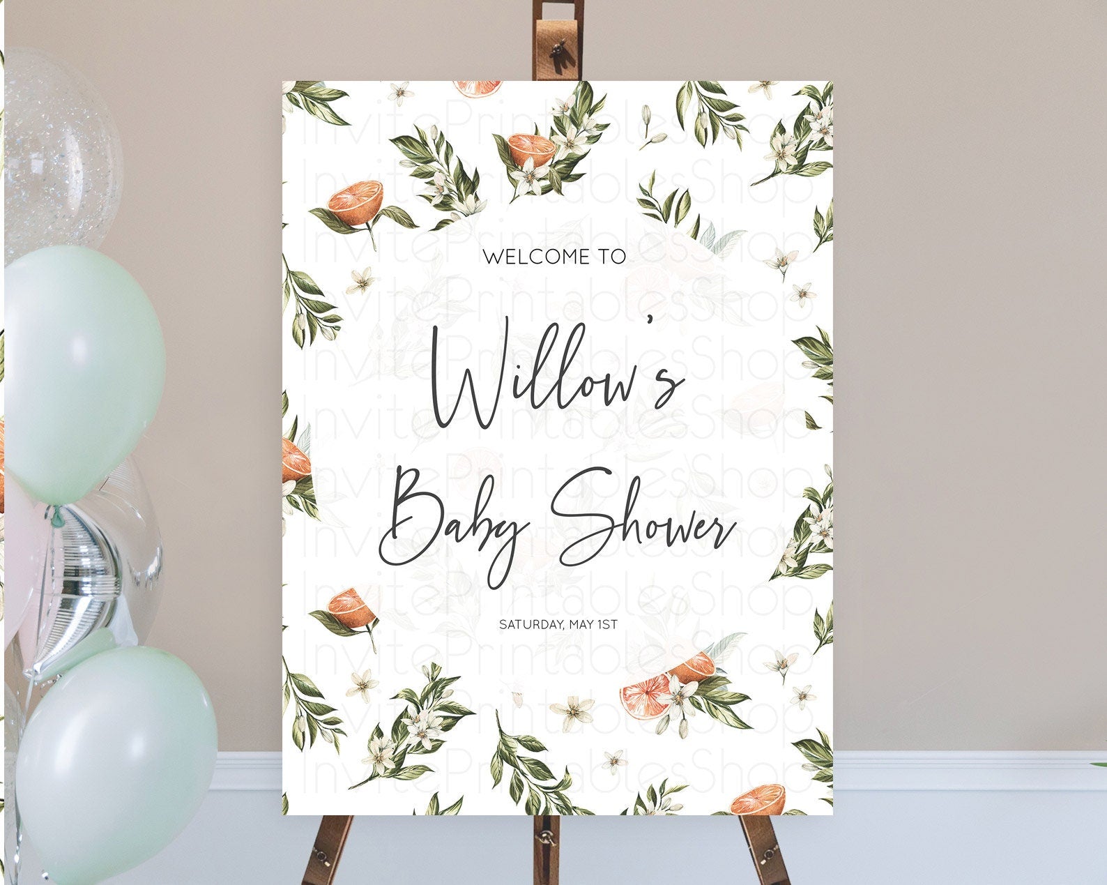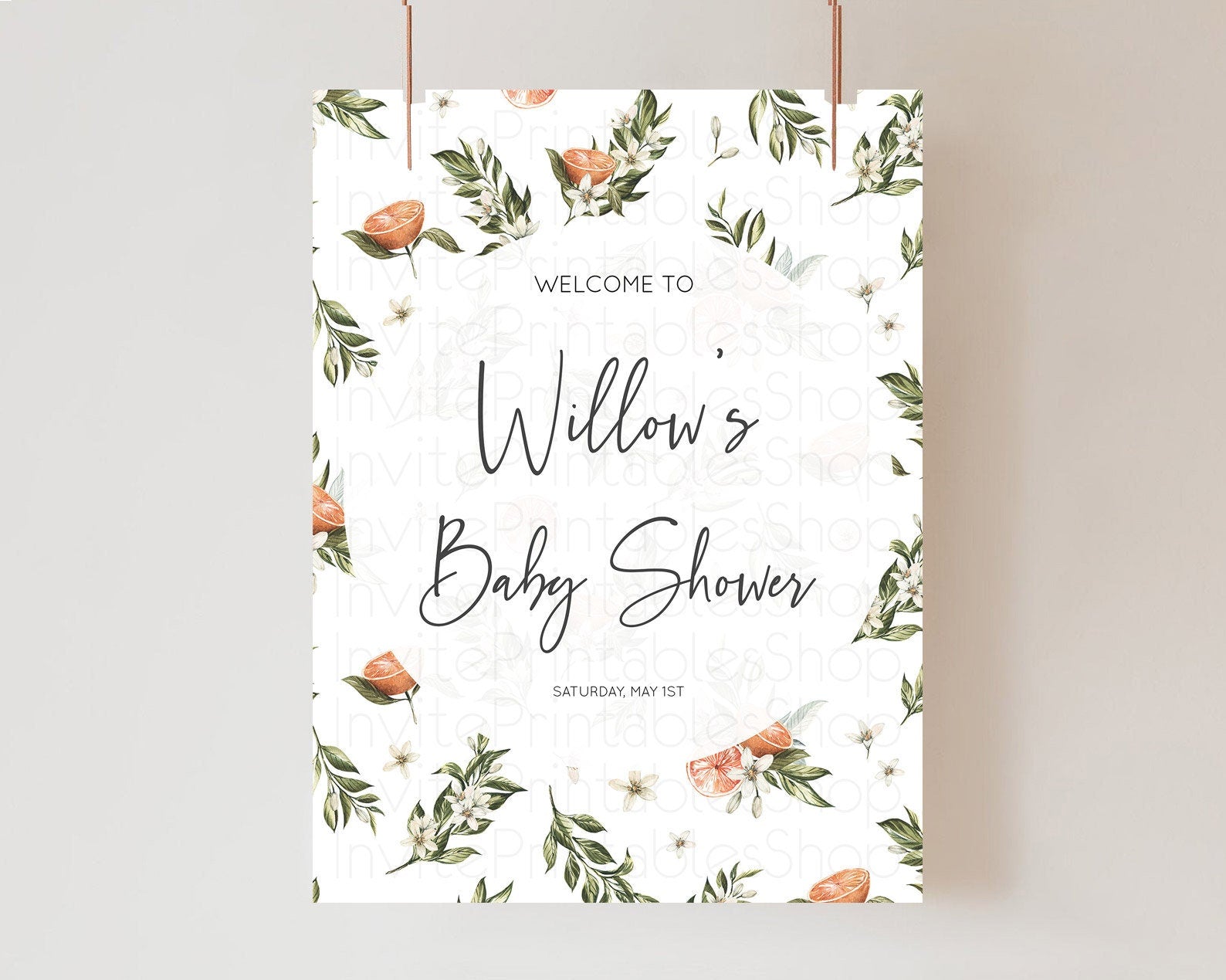 Citrus Baby Shower Welcome Sign Lemon Welcome Sign Orange Welcome Sign Citrus Welcome Poster Citrus Floral Decor Baby Welcome Board D10545
