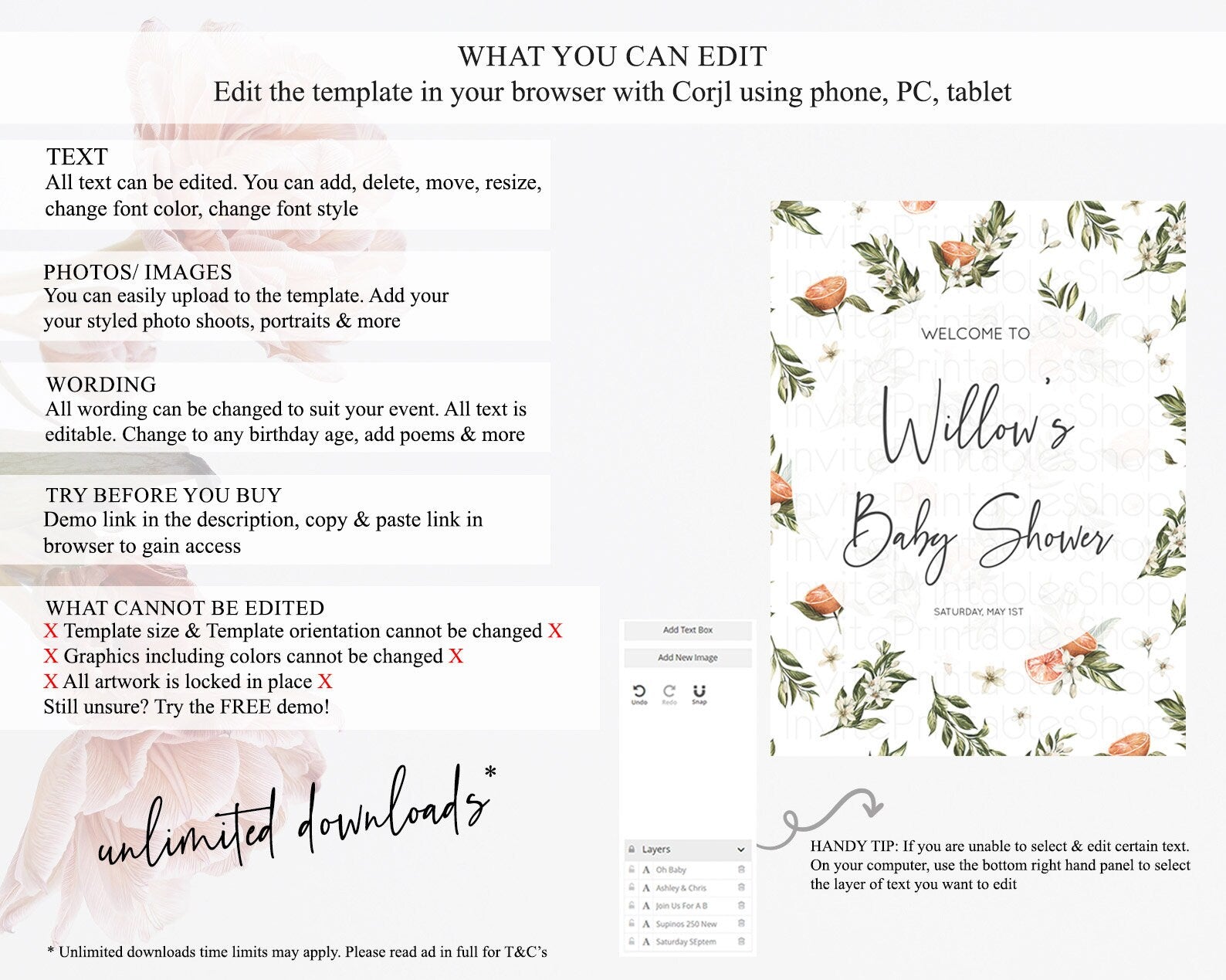 • After purchase, Corjl emails your editing link. Allow up to 15 minutes for delivery.