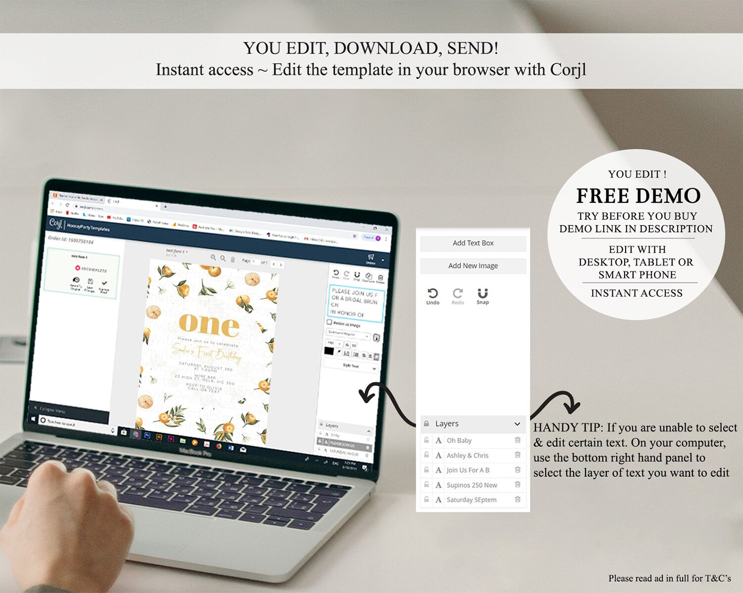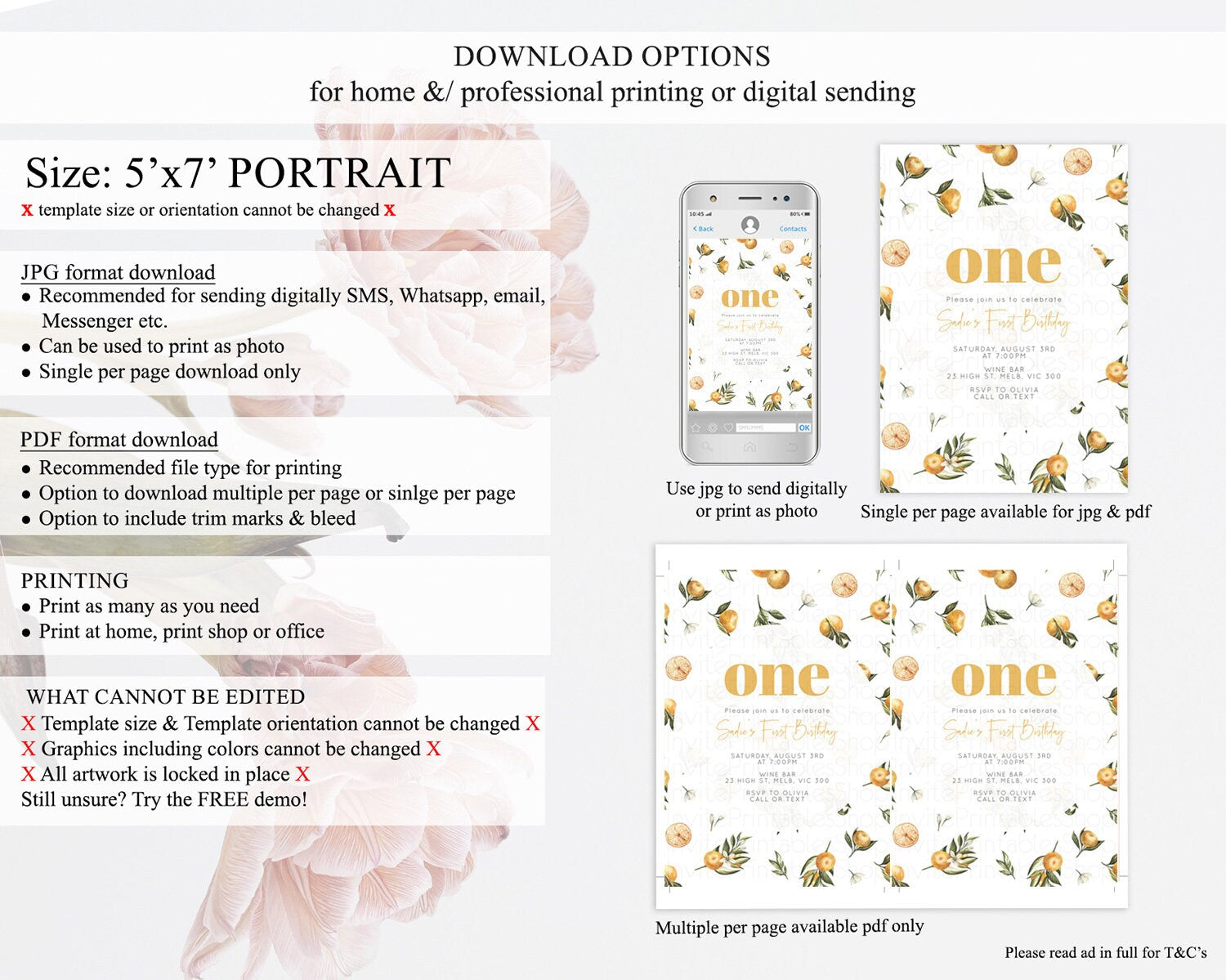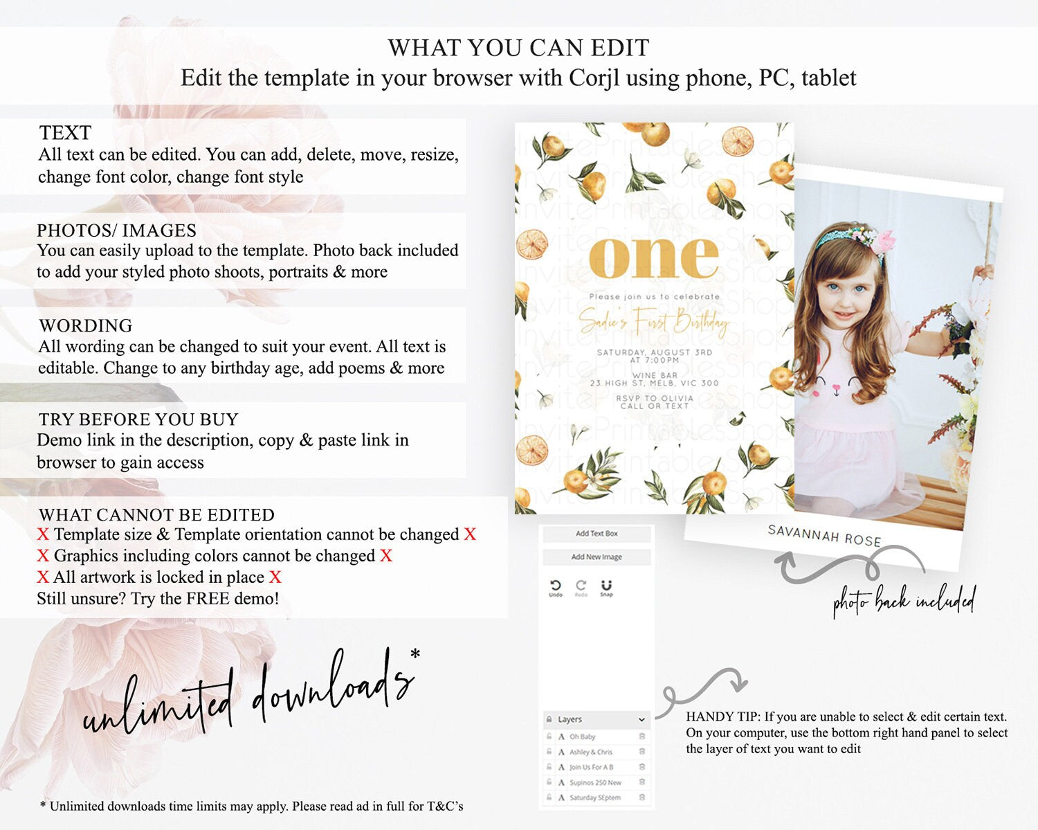 Citrus Birthday Invitation Lemon Invitation Orange Invitation Citrus Garden Birthday Citrus Floral Invitation 2nd 1st First Birthday D10545