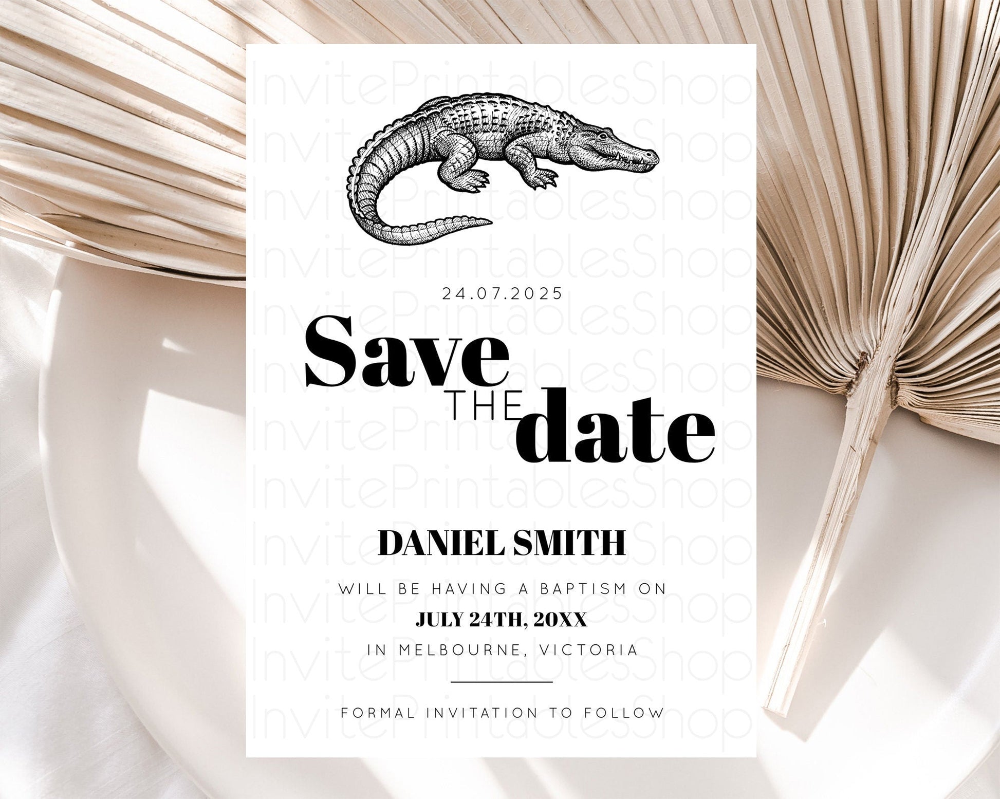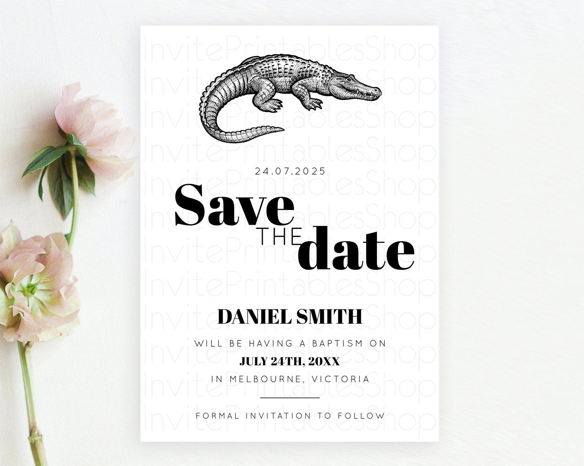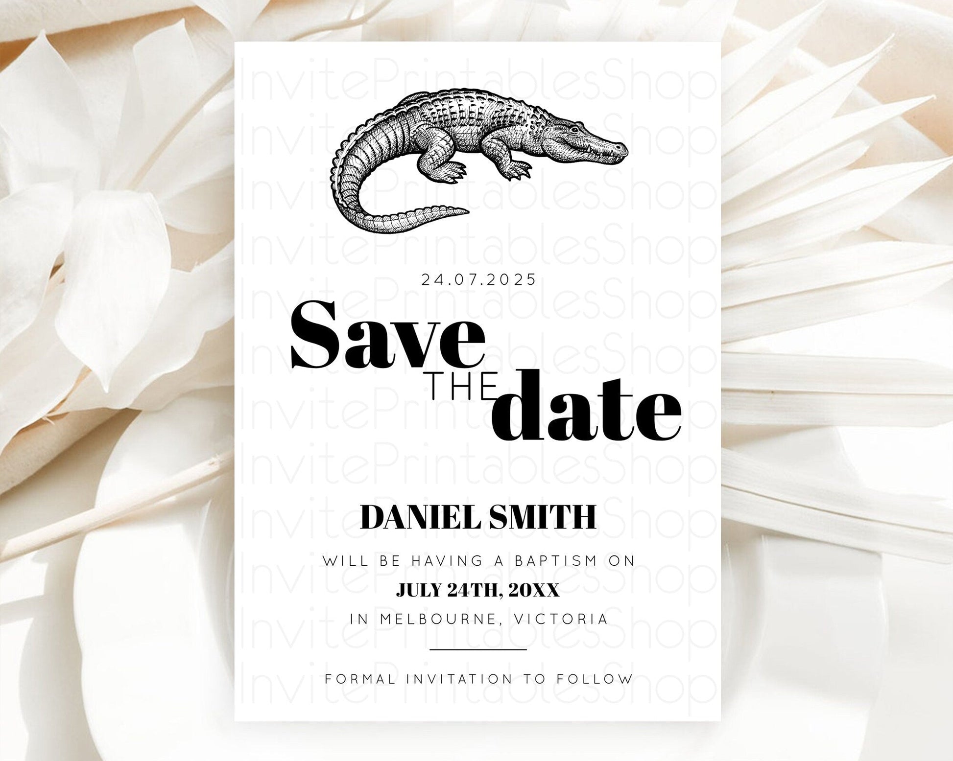 Croc Gator Save The Date Template Croc Gator Party Save The Date Safari Adventure Croc Gator Minimal Theme 1st Birthday Baptism D10286
