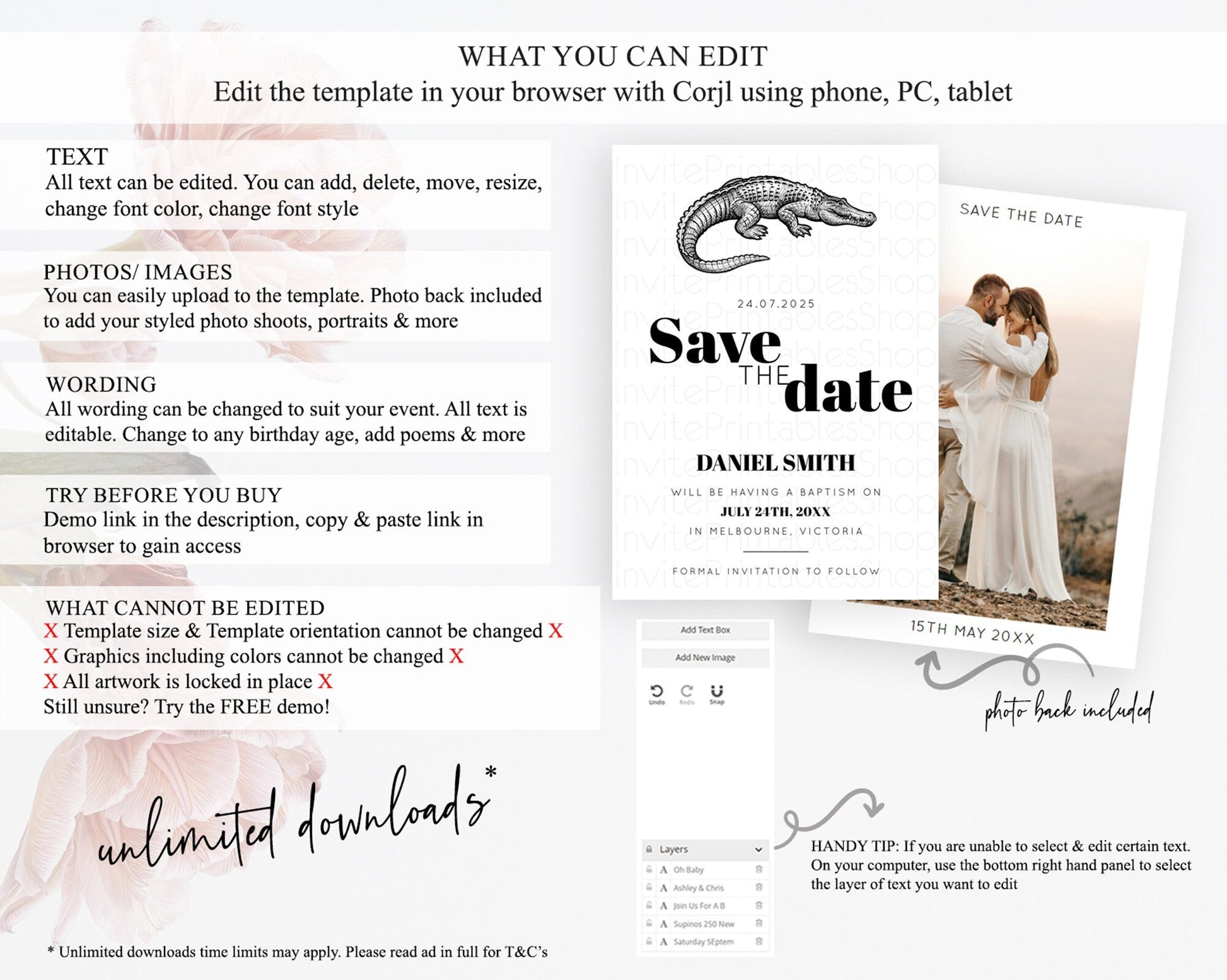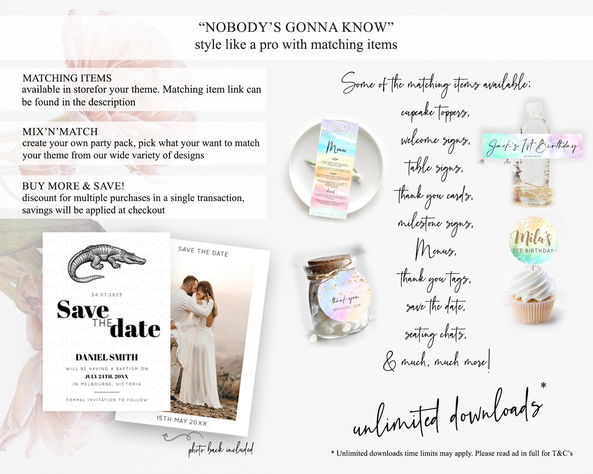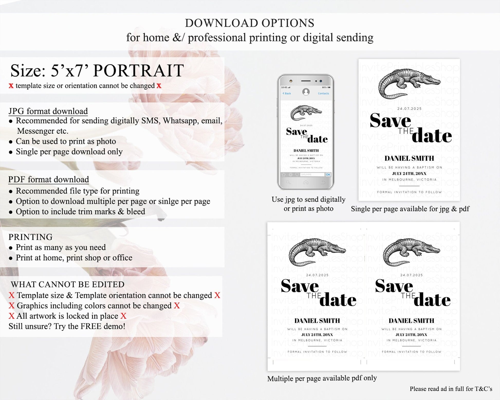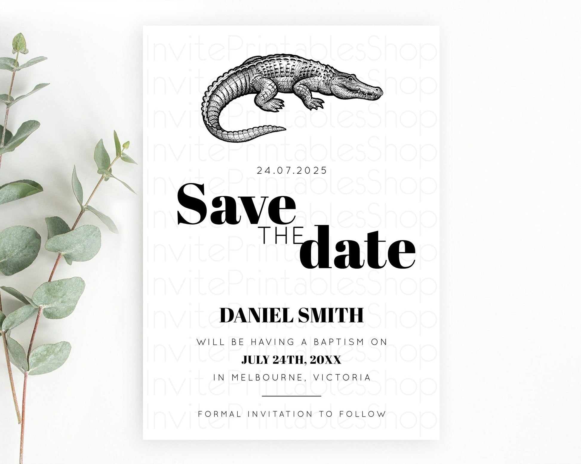 Croc Gator Save The Date Template Croc Gator Party Save The Date Safari Adventure Croc Gator Minimal Theme 1st Birthday Baptism D10286