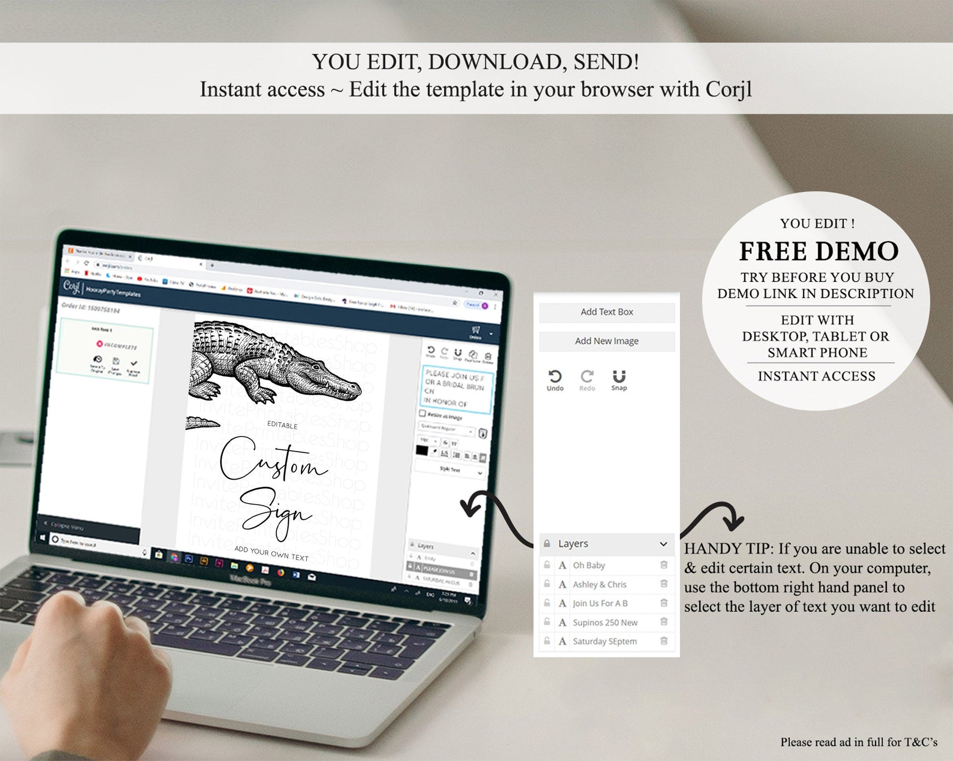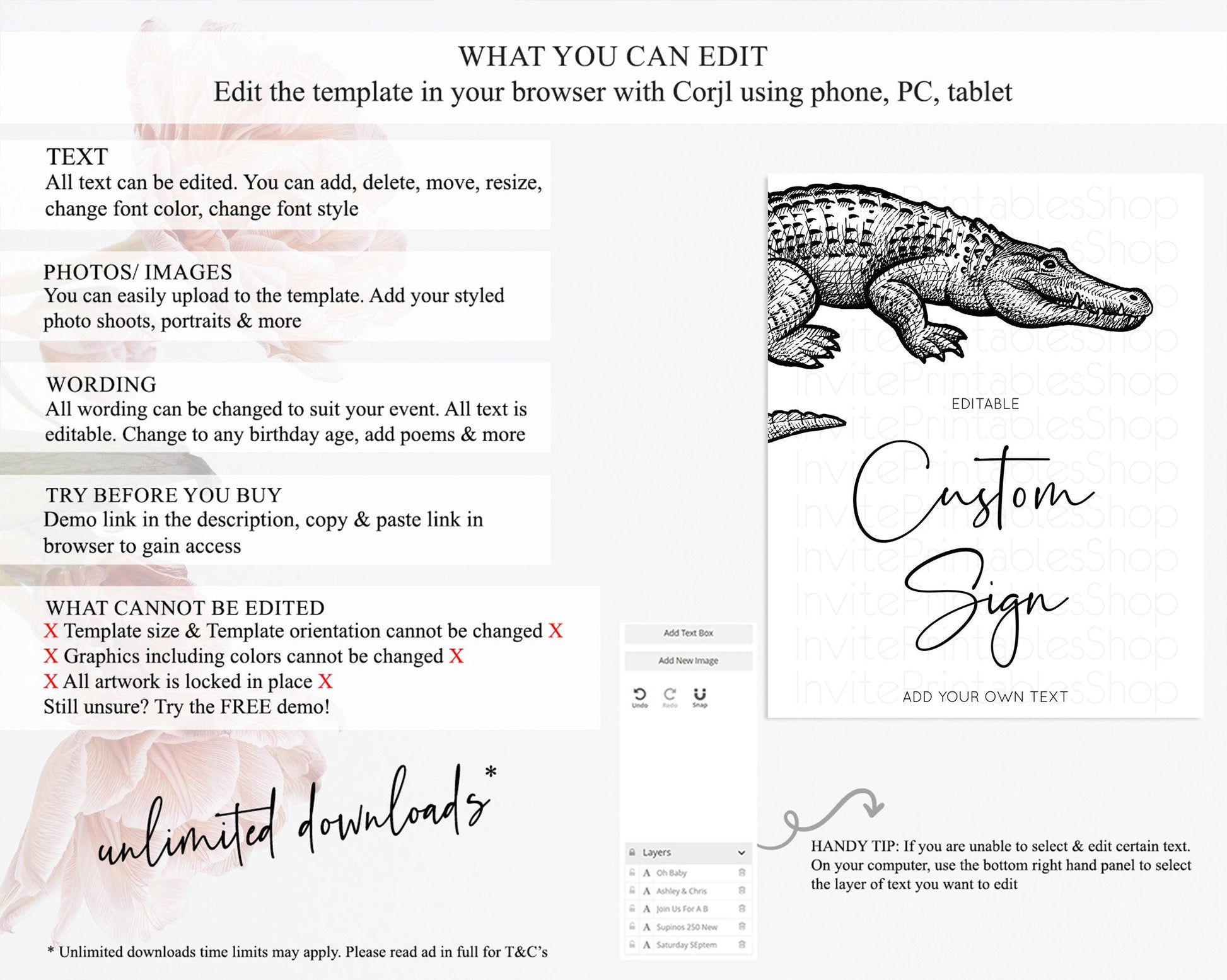 • After purchase, Corjl emails your editing link. Allow up to 15 minutes for delivery.