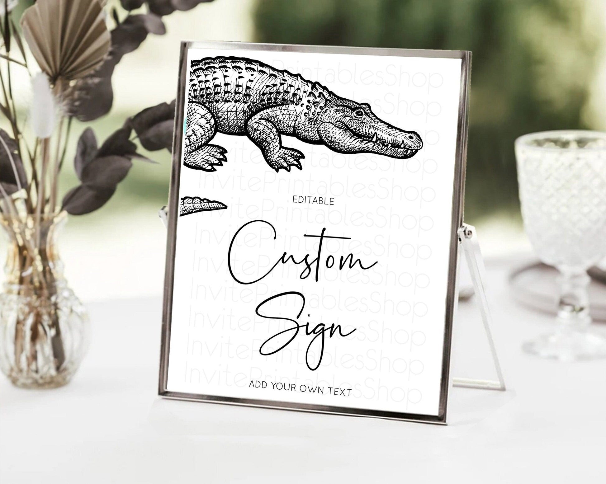 Croc Gator Sign Swamp Table Sign Decor Croc Gator Party Sign Template Safari Adventure Croc Gator Minimal Theme 1st Birthday Baptism D10286