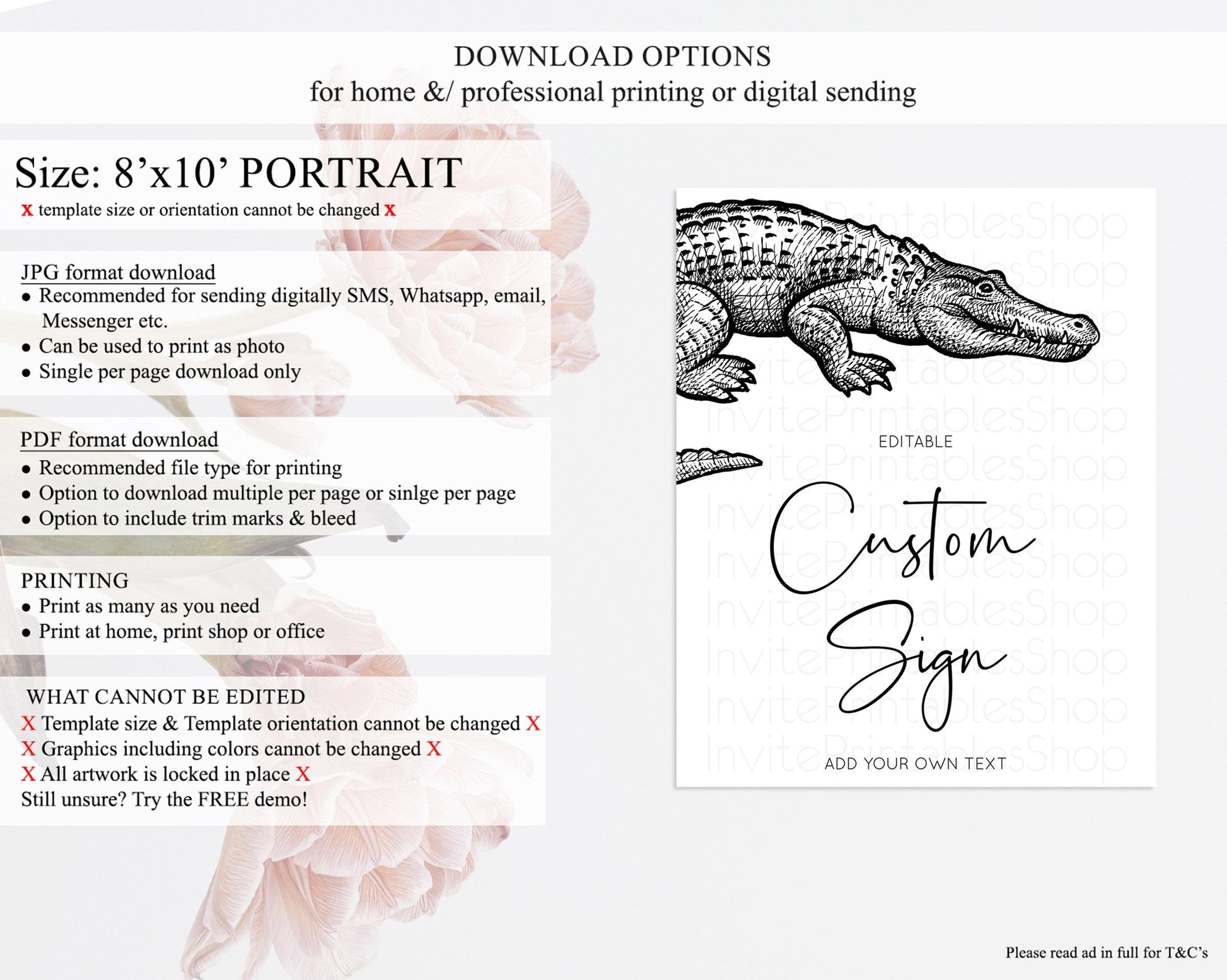 • Template size & orientation cannot be changed. Please use the demo link to confirm this product suits your needs.
