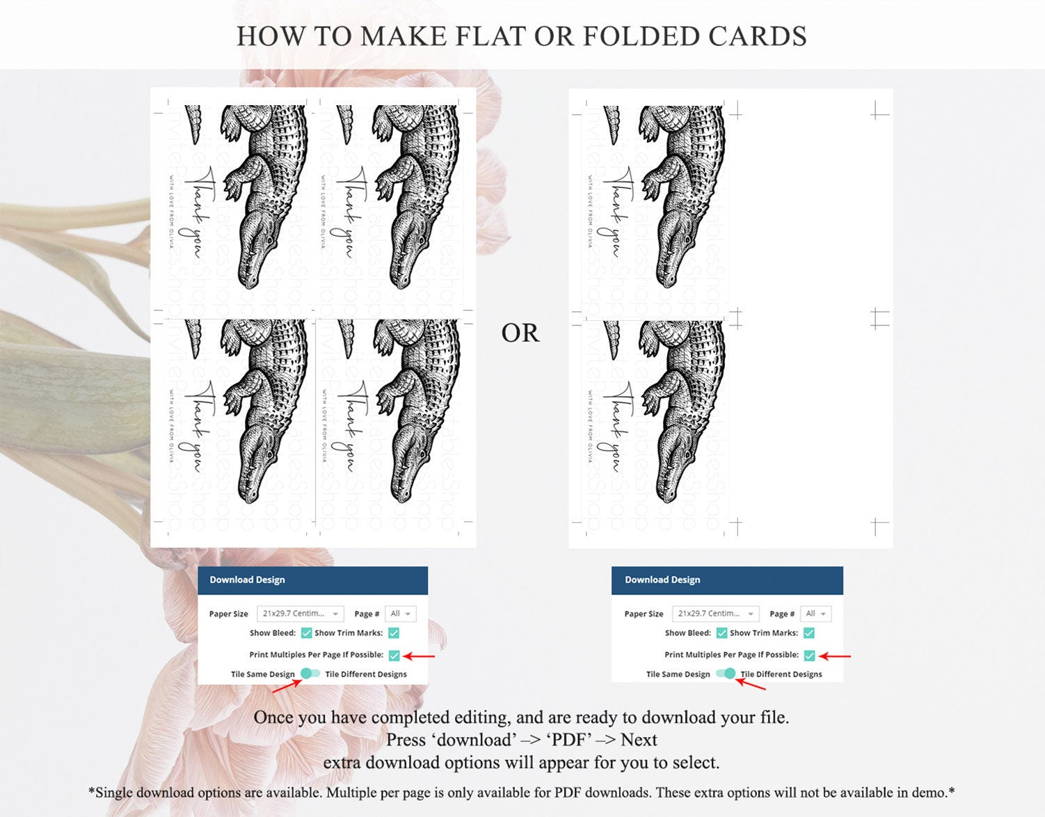 • Custom changes to artwork are not provided on existing templates.