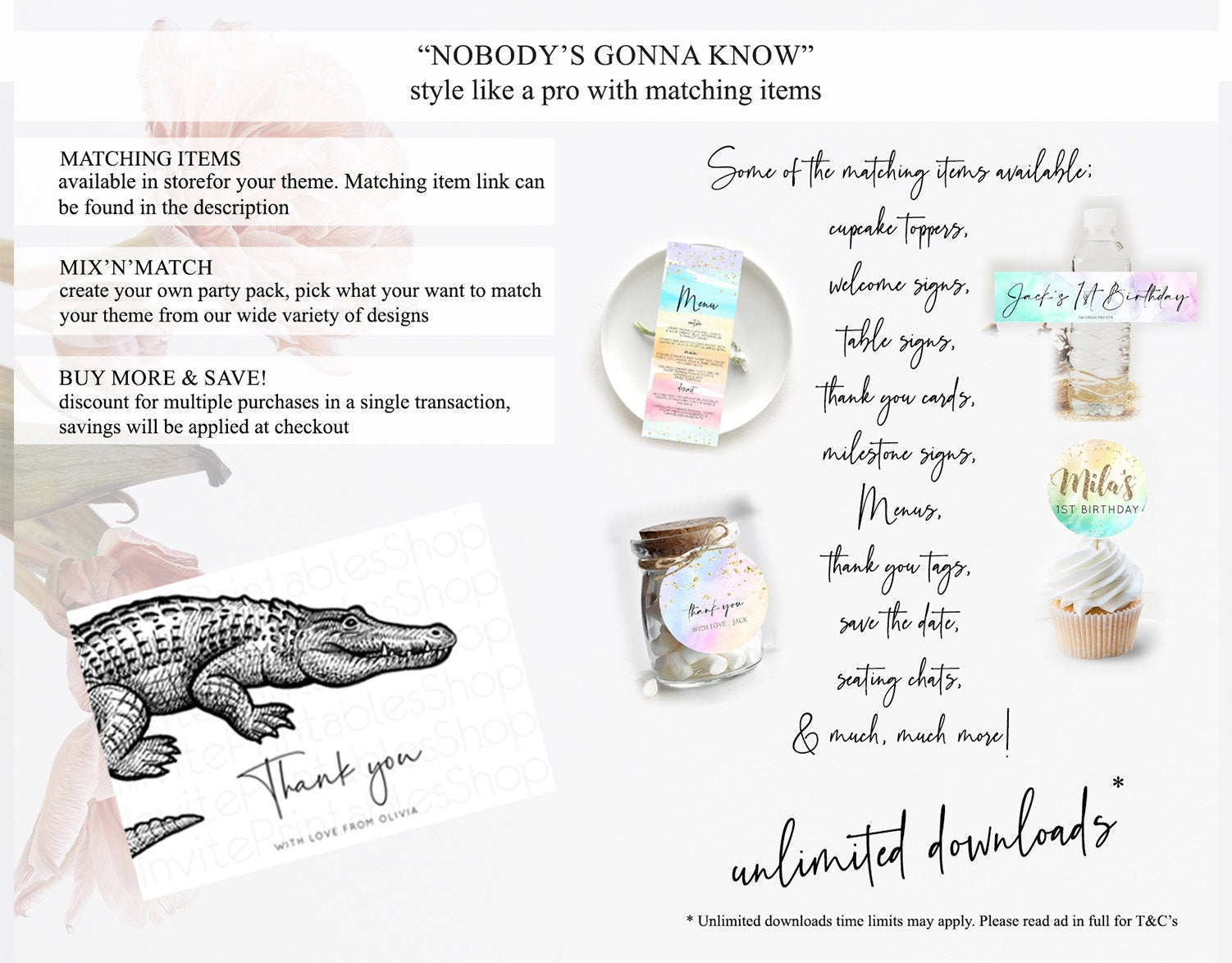 • Content shown in your gallery images is the source of truth for what’s included.