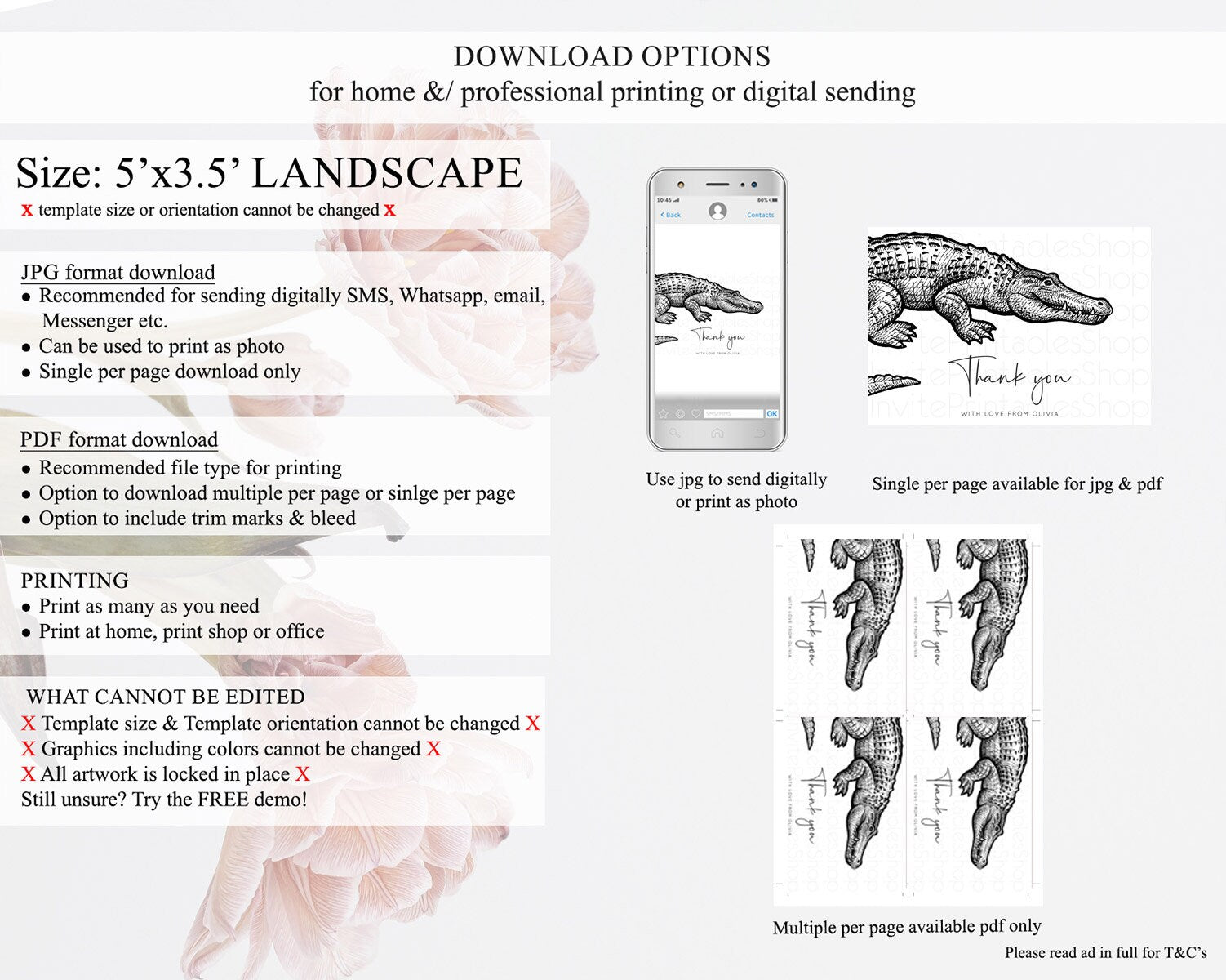• Template size & orientation cannot be changed. Please use the demo link to confirm this product suits your needs.