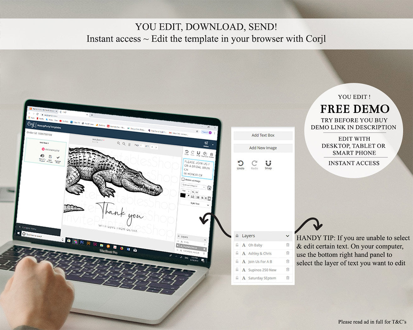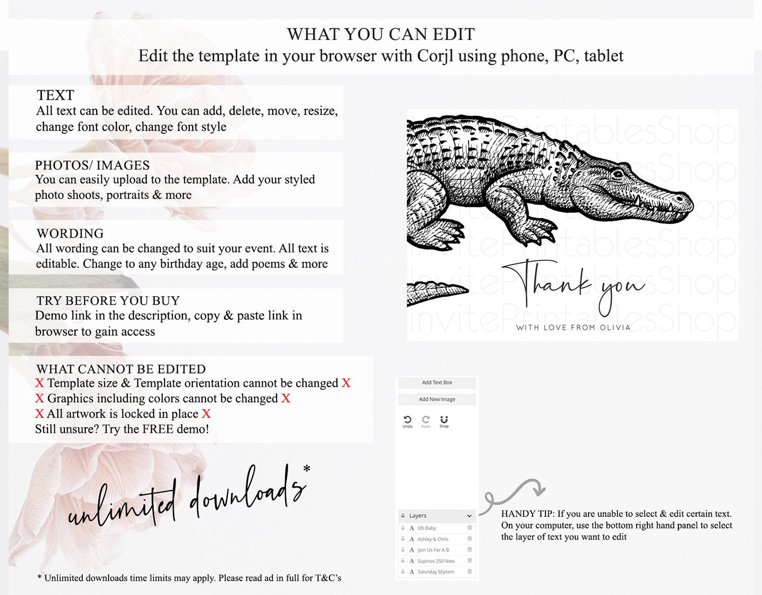 • After purchase, Corjl emails your editing link. Allow up to 15 minutes for delivery.