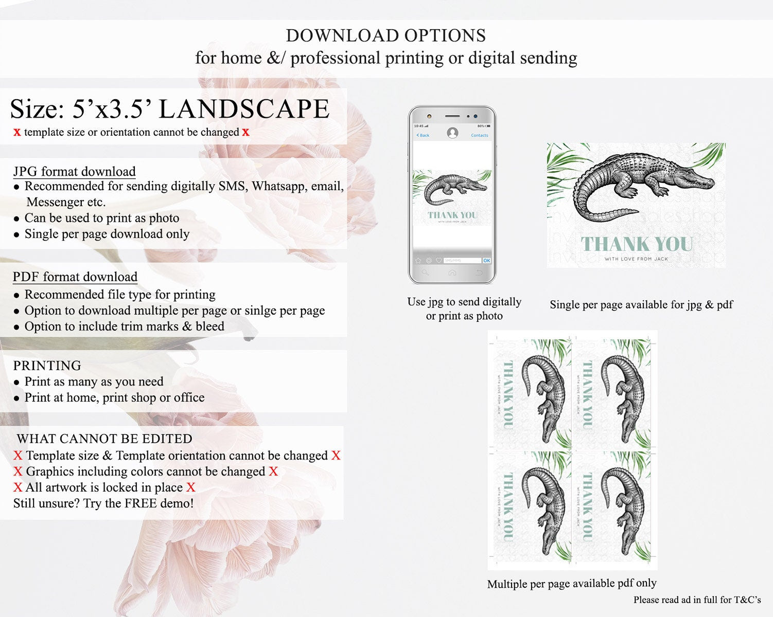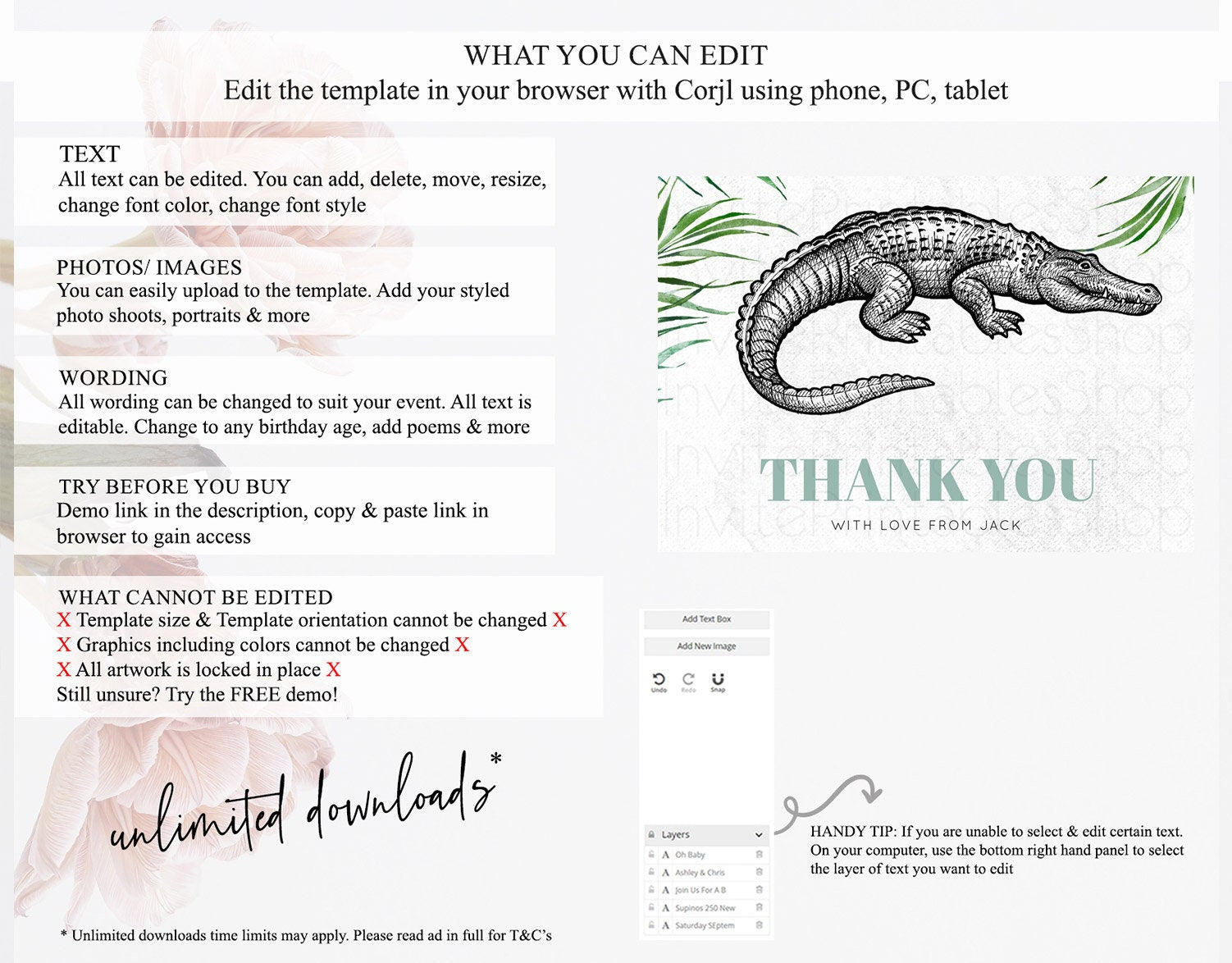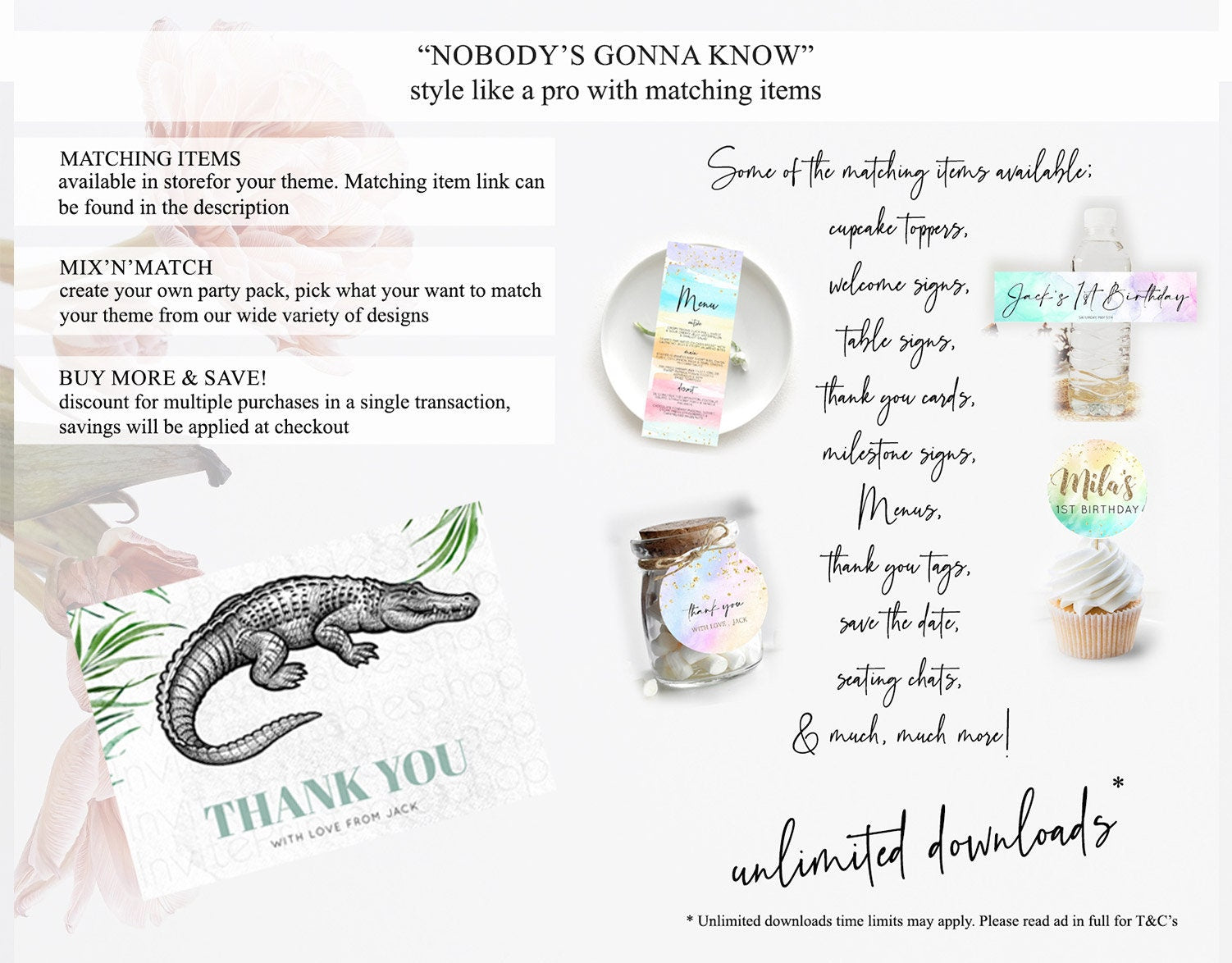 Croc Thank You Gator Thank You Card Croc Gator Party Crocodile Birthday Thank You Card Alligator Cards Teacher Thank You Cards D10847