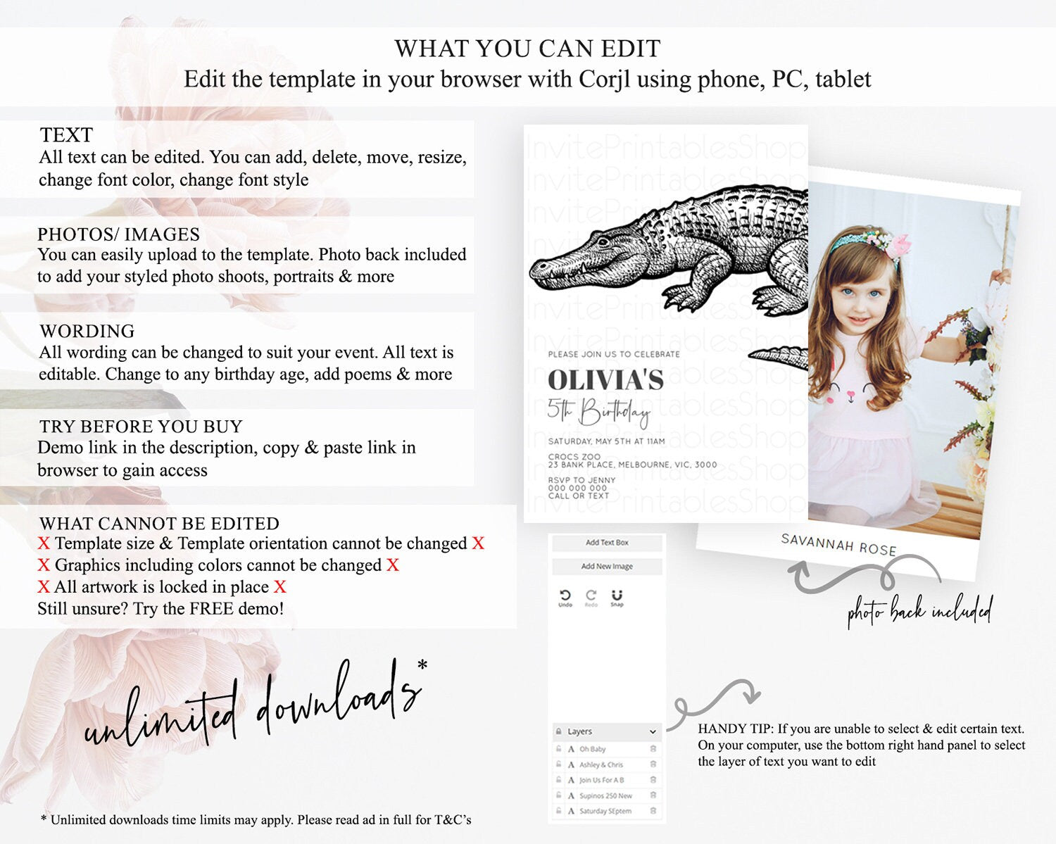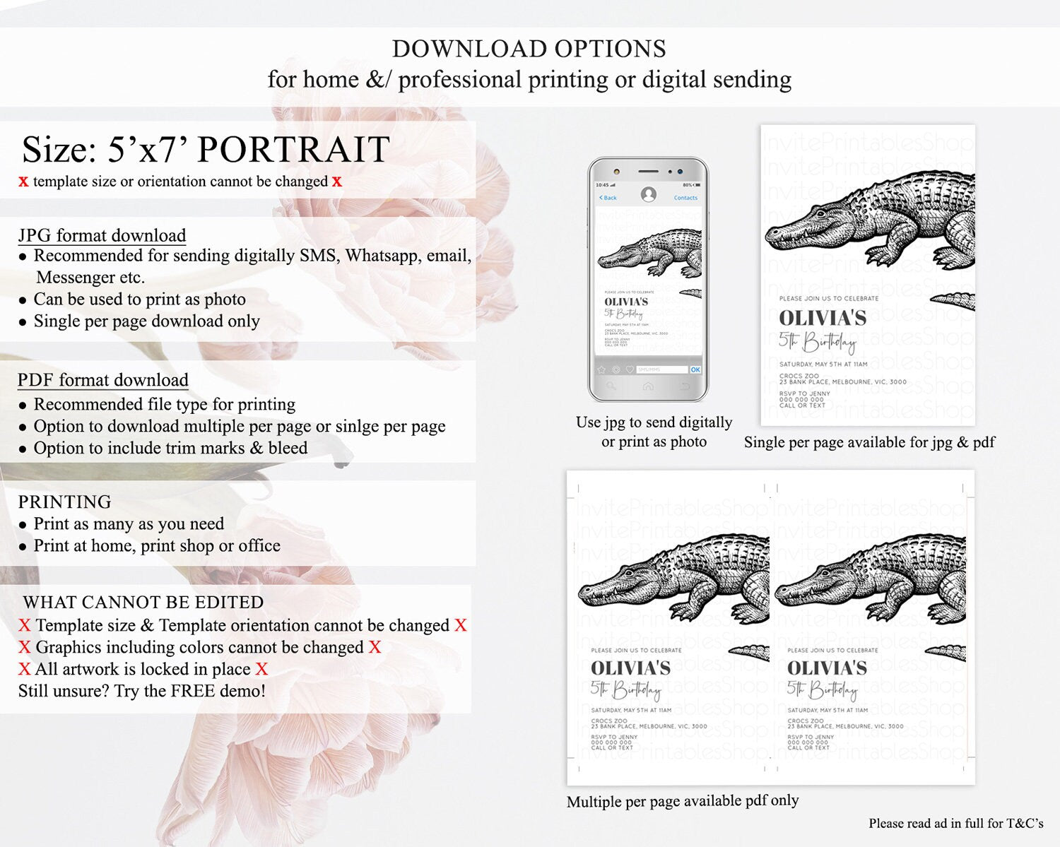 Crocodile Birthday Invitation Alligator Birthday Invitation Later Alligator Birthday Gator Swamp Birthday Invite Safari Crocodile D10286