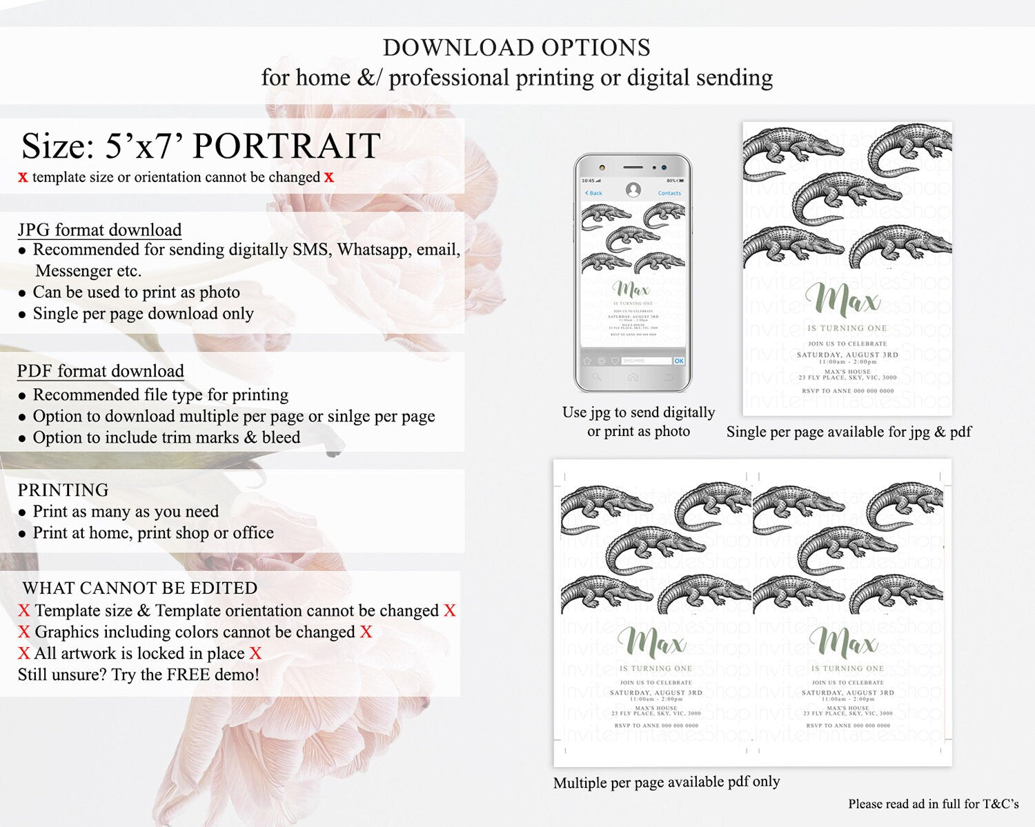 Crocodile Birthday Invitation Alligator Birthday Invitation Later Alligator Birthday Gator Swamp Birthday Invite Safari Crocodile D10286