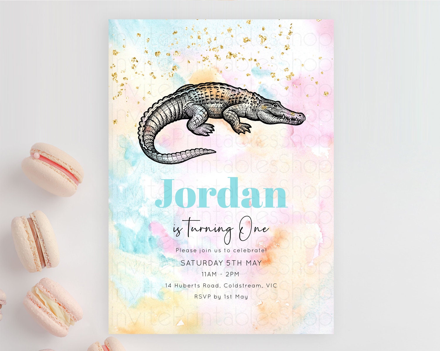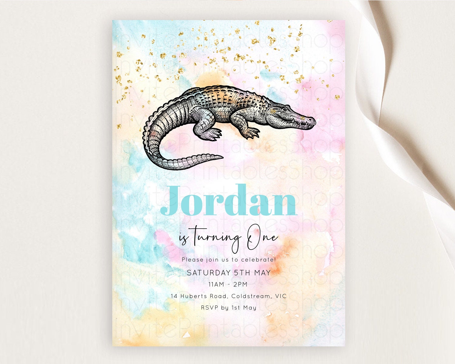 Crocodile Birthday Invitation Alligator Invitation Pastel Swamp Watercolor Alligator Crocodile Invitation Rainbow Gator Invite D10285