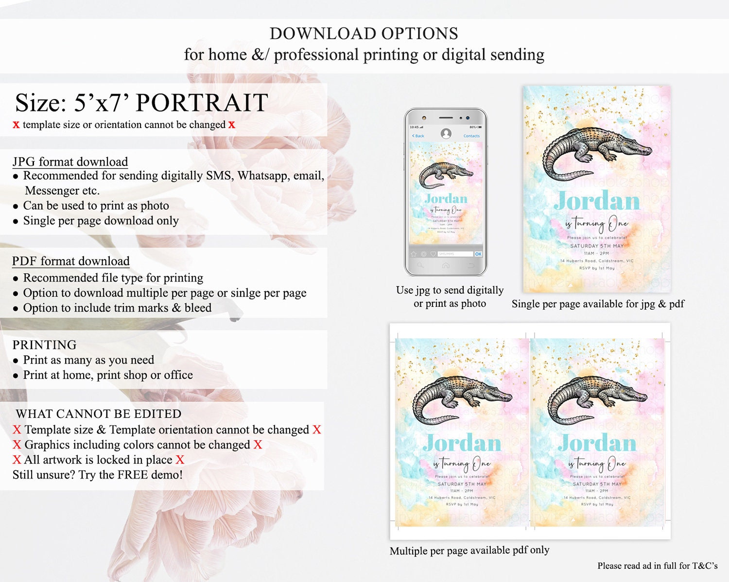 • Template size & orientation cannot be changed. Please use the demo link to confirm this product suits your needs.
