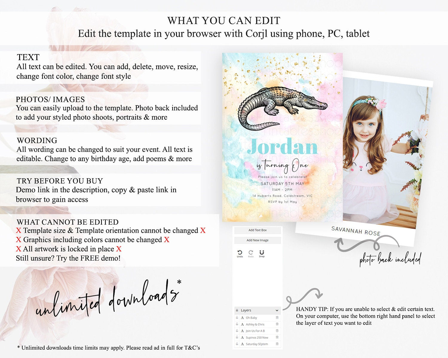• After purchase, Corjl emails your editing link. Allow up to 15 minutes for delivery.