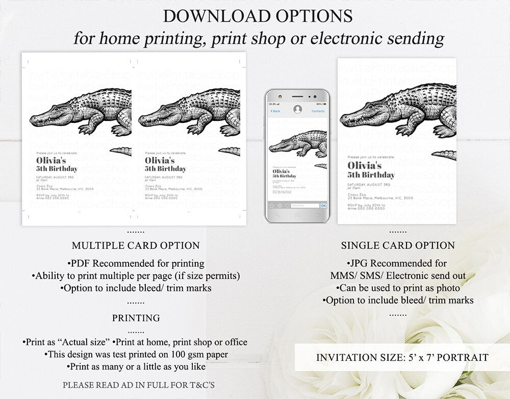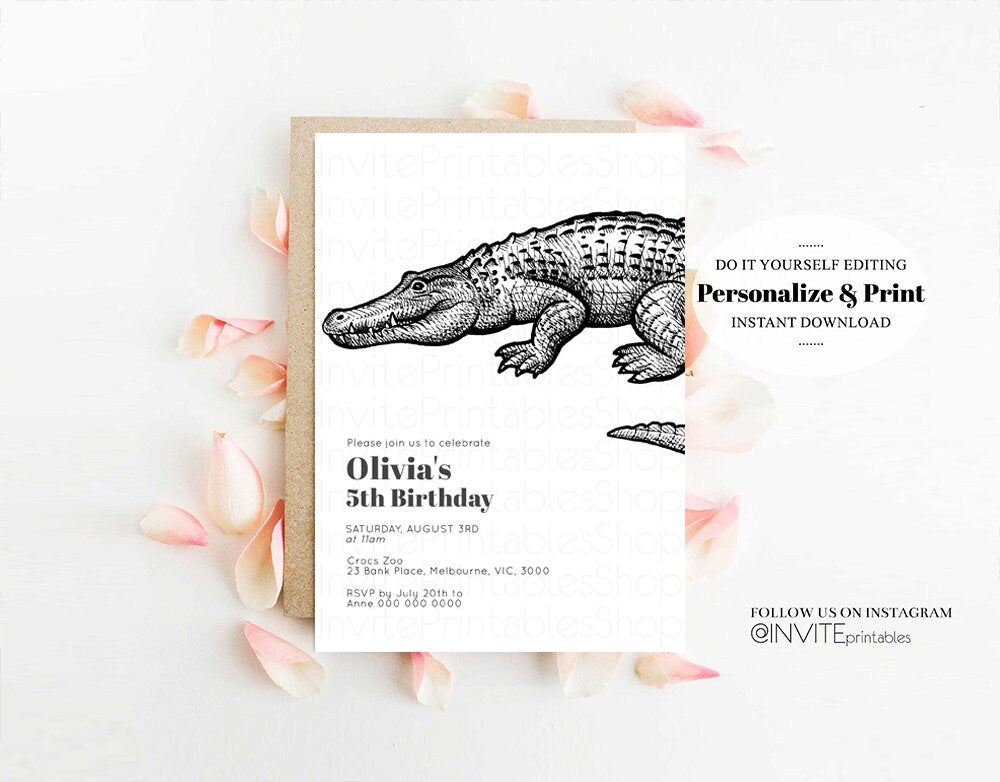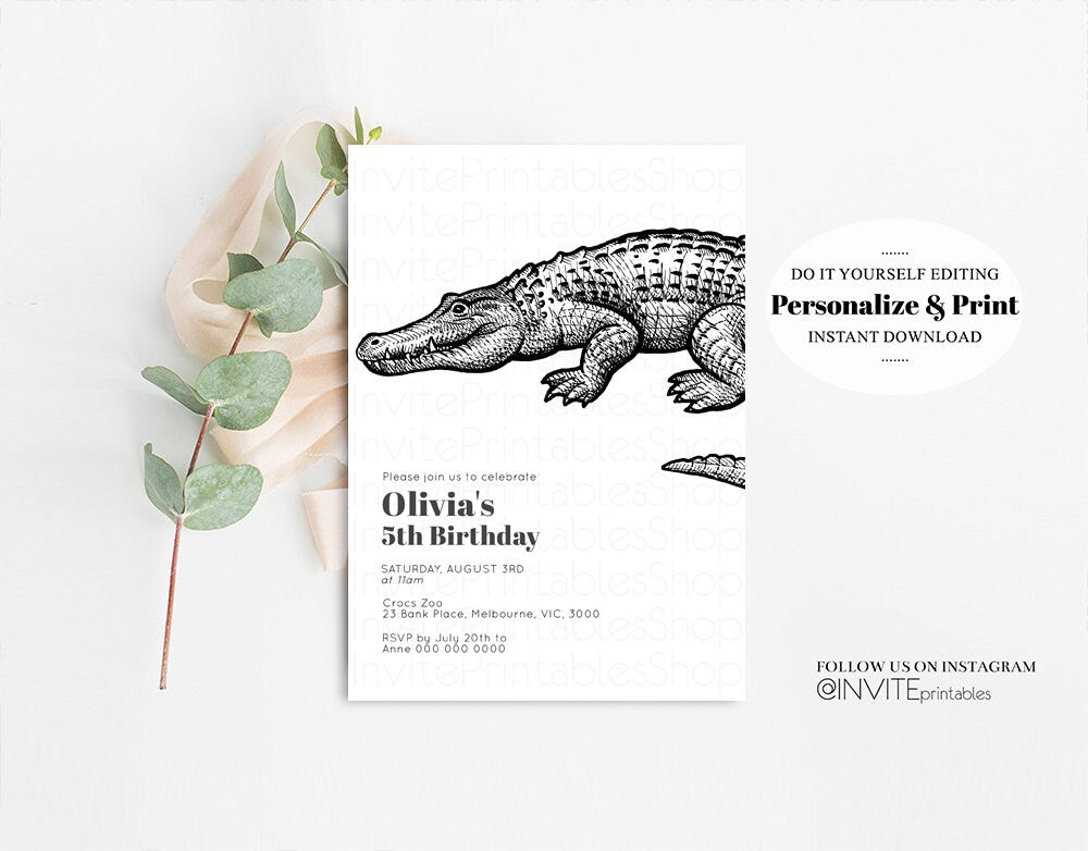 Crocodile Birthday Invitation Crocodile Invite Jungle Safari invite Watercolor Tropical Palm Invite Adventure Zoo Party Wild Croc Party t270