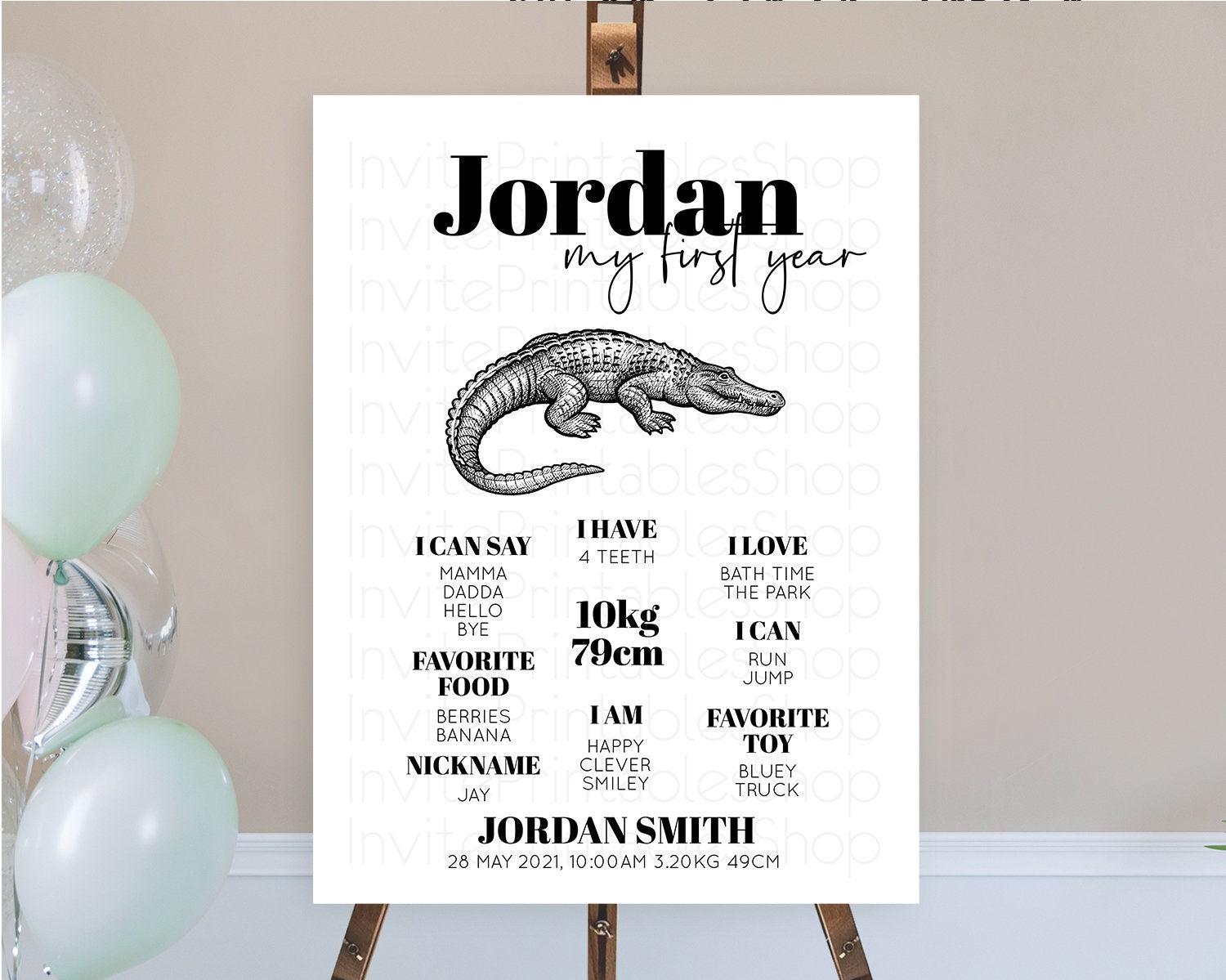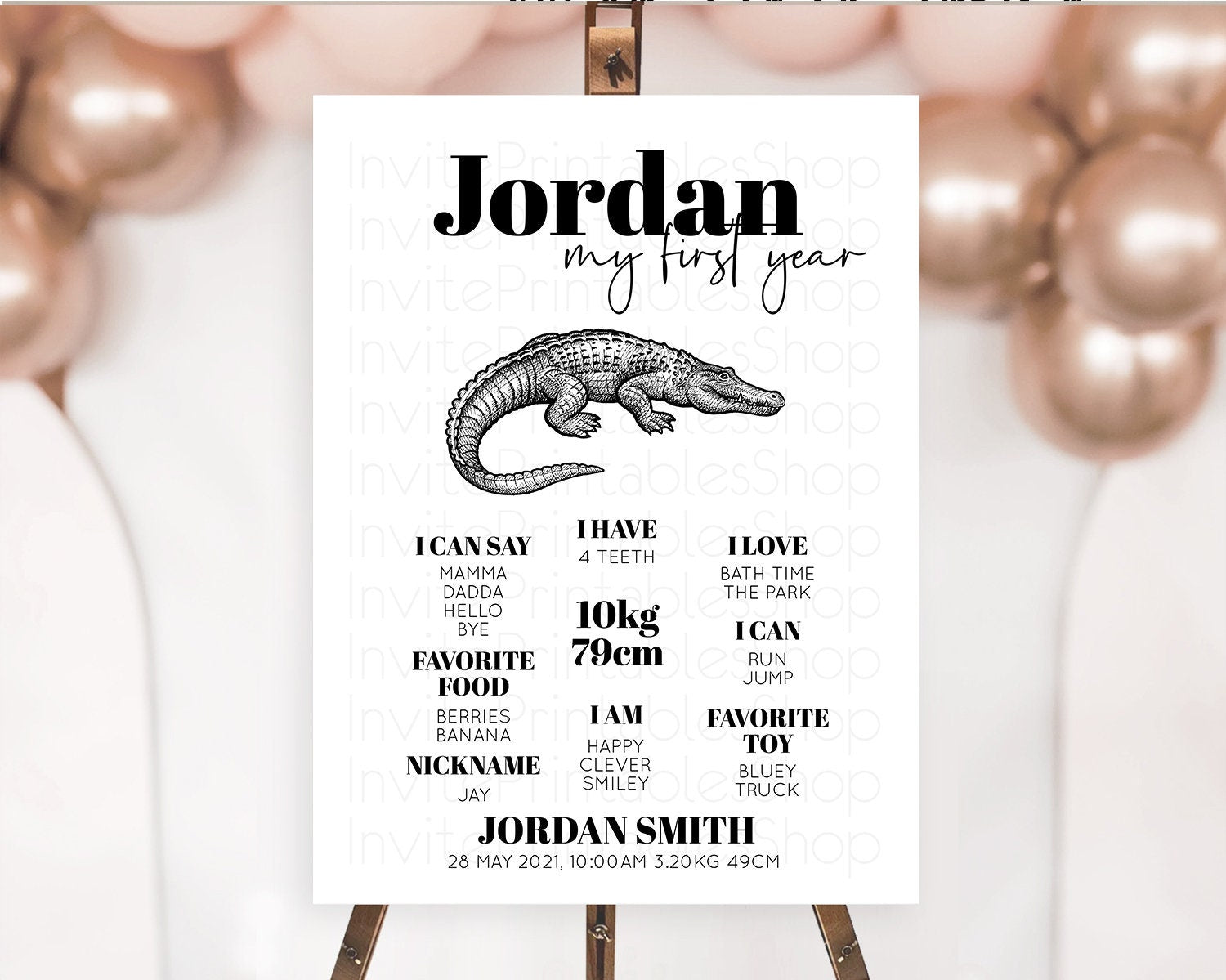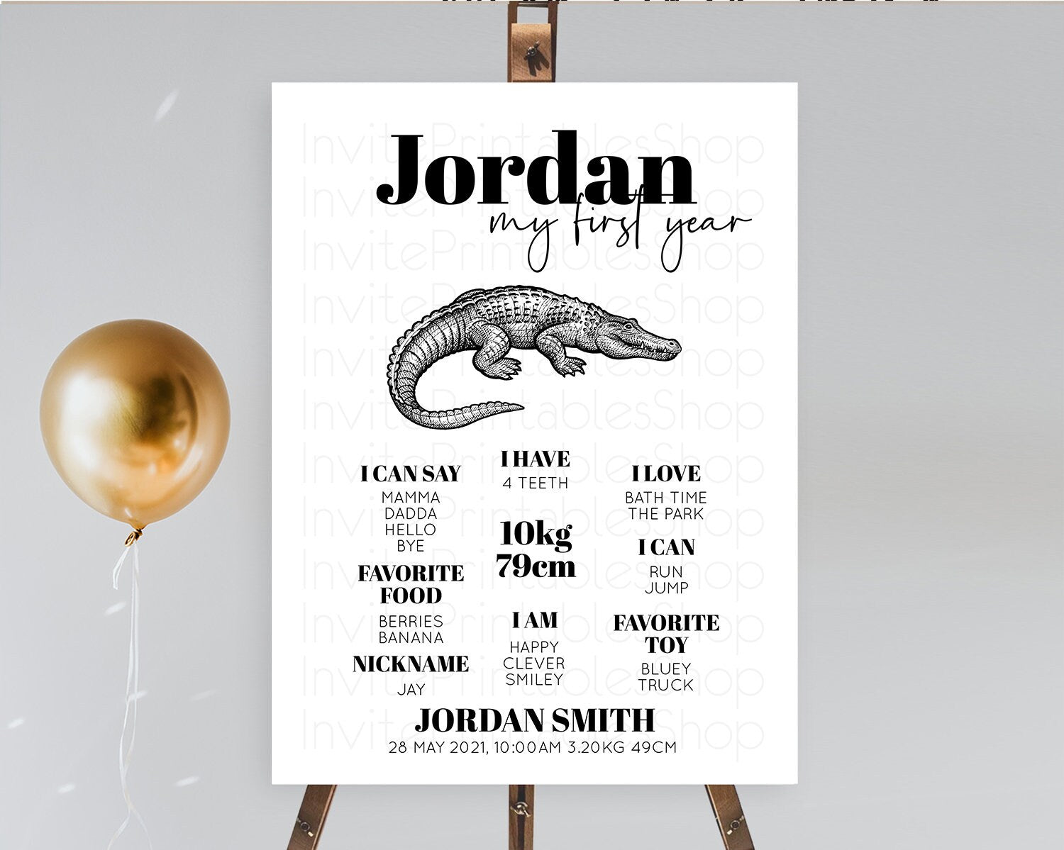 Crocodile First Birthday Milestone Board Alligator Milestone Poster Crocodile Alligator Decor Croc Gator First Birthday Welcome Sign D10286
